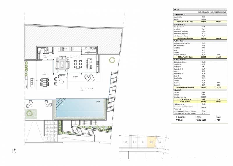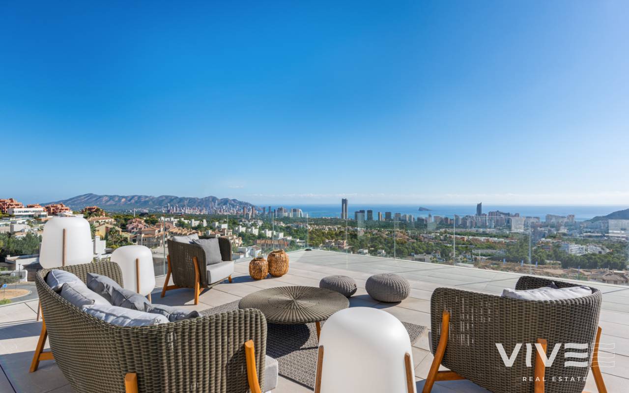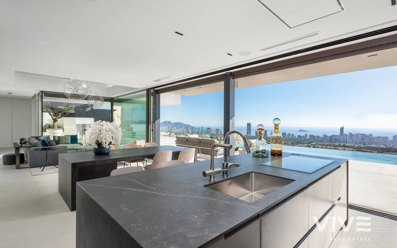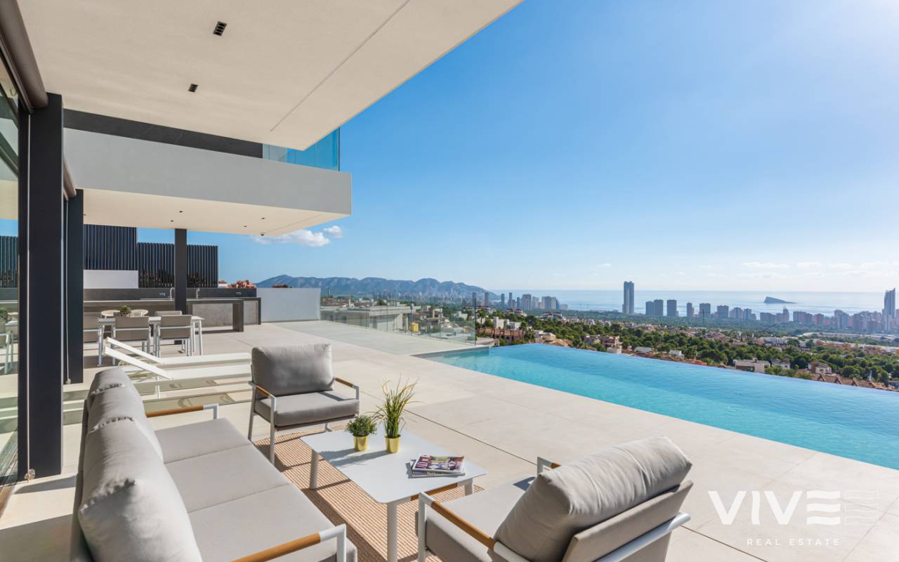 Neubau von 5 exklusiven und unabhängigen Luxusvillen in der besten Gegend von Sierra Cortina. Aufgrund seiner Lage auf dem Gipfel des Berges haben Sie von hier aus den besten Blick auf die gesamte Bucht von Benidorm. Das voll verglaste Erdgeschoss verfügt über ein großes Wohn-Esszimmer, eine Küche, eine Waschküche, eine Gästetoilette und durch seine riesigen Fenster eine perfekte Integration mit dem Außenbereich, wo eine große Terrasse, eine Veranda, ein Garten, ein Grill und ein wunderschöner Infinity-Pool Ihnen erlauben, sich zu entspannen und eine Traumlandschaft zu betrachten. Im ersten Stock gibt es 3 Schlafzimmer, alle mit eigenem Bad und Einbauschränken. Alle drei Schlafzimmer haben Zugang zu Terrassen mit schönem Meerblick. Im Obergeschoss befindet sich eine wunderbare 160 m2 große Terrasse mit der Möglichkeit, einen herrlichen Whirlpool einzurichten, ein Entspannungsbereich, in dem Sie unvergessliche Momente genießen können. Außerdem gibt es 2 Stockwerke unter dem Erdgeschoss. Eine davon kann als Gästehaus genutzt werden. Diese Etage verfügt auch über eine Terrasse mit spektakulärer Aussicht. Und schließlich gibt es eine Etage auf Straßenniveau, von der aus Sie das Haus betreten können, mit genügend Platz für bis zu 4 Fahrzeuge. Für maximalen Komfort sind alle Etagen durch einen Aufzug verbunden. Diese Villen sind exklusiv wegen ihrer Aussicht, Lage, Süd-Ost-Ausrichtung, mit den besten Qualitäten auf dem Markt, und ausgestattet mit Designermöbeln in der Küche und Bädern, Elektrogeräten und LED-Beleuchtung außen. Gelegen in der Gemeinde Finestrat, 10 Minuten von Benidorm entfernt, im Herzen der Costa Blanca und umgeben von wichtigen Städten wie Alicante, Benidorm, Elche, Altea und Calpe. Der internationale Flughafen Elche-Alicante ist über die Autobahn leicht zu erreichen, so dass Sie in 30 Minuten alle wichtigen europäischen Hauptstädte erreichen können. Finestrat ist eine malerische Küsten- und gleichzeitig Berggemeinde, die die Stille der felsigen und grünen Natur der hohen Gipfel des Puig Campana mit der kosmopolitischen Anziehungskraft ihrer Cala verbindet, deren Strand mit goldenem Sand und kristallklarem Wasser ein Schatz ist, der von Wohngebieten umgeben ist.