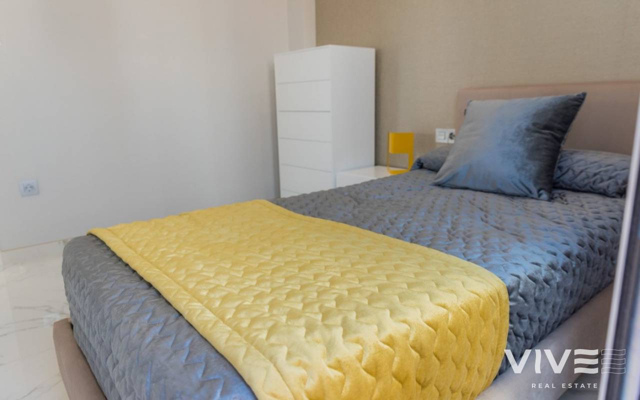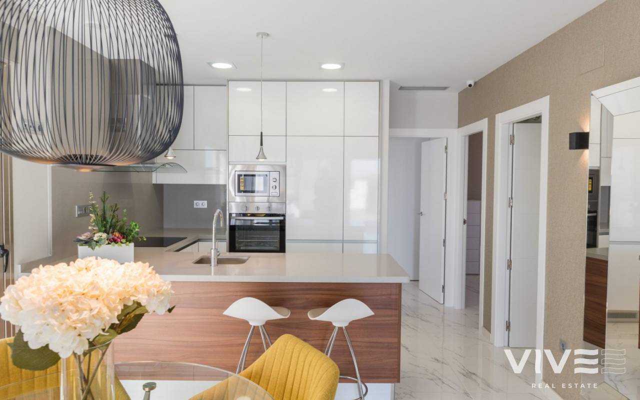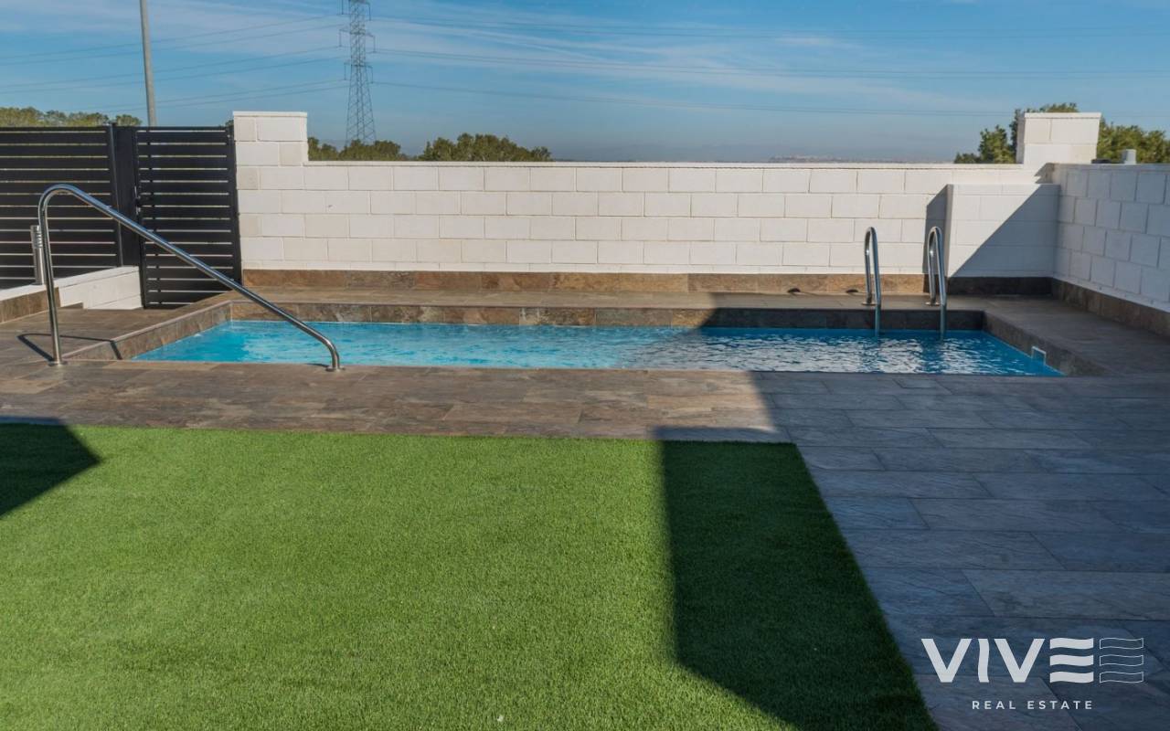 VILLA CONTEMPORANEA JUNTO A CAMPO DE GOLF Villa contemporáneas ubicada junto al exclusivo campo de golf de Villamartín, orientada al Sureste. Consta de 3 dormitorios dobles (todos con armarios empotrados), 3 baños (uno en suite) , cocina integrada moderna totalmente equipada (con barra de desayuno), amplio salón / comedor abierto que conduce a un jardín cerrado con piscina privada y zona de parking, y un amplio solarium en la azotea. Cerca de las encantadoras playas, calas y puertos deportivos de Cabo Roig y Campoamor, cerca de 3 diferentes campos de golf. También los servicios de una gran variedad de bares y restaurantes, entretenimiento en vivo y centros comerciales como La Zenia Boulevard y Los Dolces. Y los beneficios de las buenas conexiones por carretera y Aeropuertos Alicante y Aeropuertos Internacionales de Murcia.