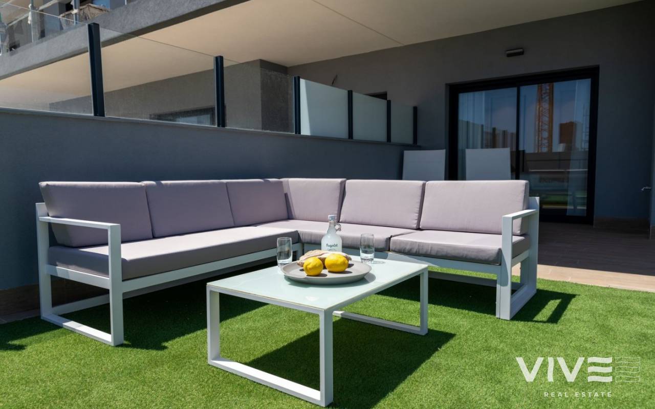 NUEVOS APARTAMENTOS EN VENTA, A 20 MINUTOS DE ALICANTE y ELCHE, COSTA BLANCA Nuevo residencial de 170 apartamentos en Gran Alacant, con vistas al mar Mediterráneo y acceso directo a la playa de bandera azul de El Carabassi. Los apartamentos de 2 y 3 dormitorios y 2 baños, tienen una cuidada distribución y gozan de bonitas vistas al mar, la playa y a la piscina y jardines privados de la urbanización. Los nuevos apartamentos construidos con excelentes calidades forman un bonito residencial con piscina, parking privado subterráneo, trastero, zonas ajardinadas, circuito bio saludable, parking para bicicletas y zona de juegos infantil. El residencial está¡ situado a 15 minutos paseando de la playa del El Carabassi. El entorno natural, su magnífica ubicación entre las poblaciones de El Altet y Santa Pola, y sus playas de dunas hacen que los nuevos apartamentos de Iconic, sean una de las mejores opciones a la hora de comprar una vivienda en la Costa Blanca.