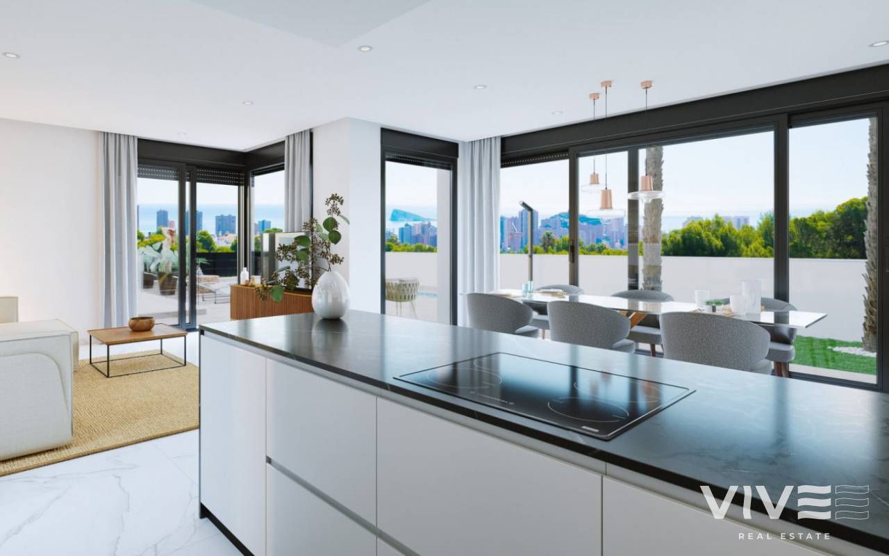 Villas de lujo de obra nueva compuestas por 11 villas independientes en Finestrat, Costa Blanca. Situado en Sierra Cortina, una zona tranquila rodeada de campo abierto, con vistas lejanas a las montañas y al mar Mediterráneo. El complejo está cerca de campos de golf, puertos deportivos, hoteles de lujo, spa y servicios. Benidorm y sus maravillosas playas están a solo 5 minutos en coche. Cada propiedad tiene 3 dormitorios y 3 baños completos. Diseñado con un concepto de plan abierto, que comprende una cocina completamente equipada, salón y comedor. Las casas están construidas en parcelas que van desde los 385 M2 hasta los 540 M2. Las amplias terrazas y jardines privados que rodean cada propiedad permiten que entre el sol todos los días del año. Cada villa tiene su propia piscina privada, garaje cerrado y sótano. Incluido en el precio: Cocina totalmente equipada, con frigorífico y congelador, lavavajillas integrado, placas de inducción en isla, campana extractora empotrada, horno elevado y microondas. Armarios forrados con cajones, Baños completos: mueble tocador, espejo, mamparas de ducha y calefacción radiante en los suelos. Lavadero con lavadora en sótano. Plaza de aparcamiento en sótano. Extras: Cascada y jacuzzi en piscina. Focos en el interior de la villa y luces en zonas exteriores. Aire acondicionado. Persianas eléctricas y domótica (Smart House).