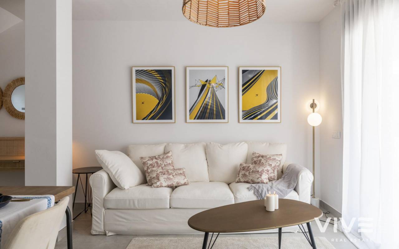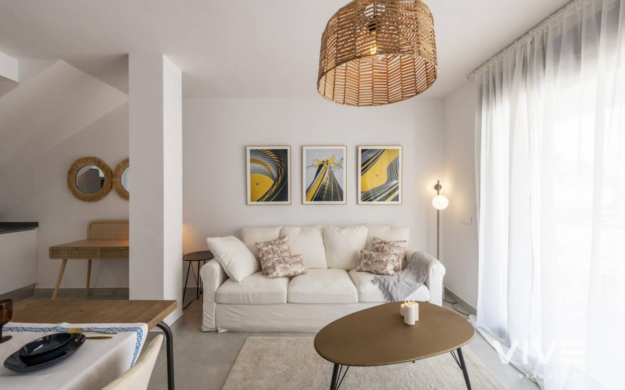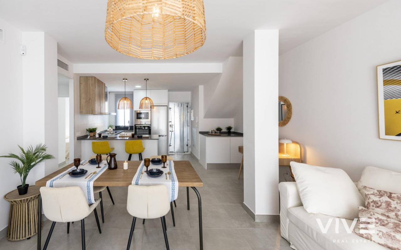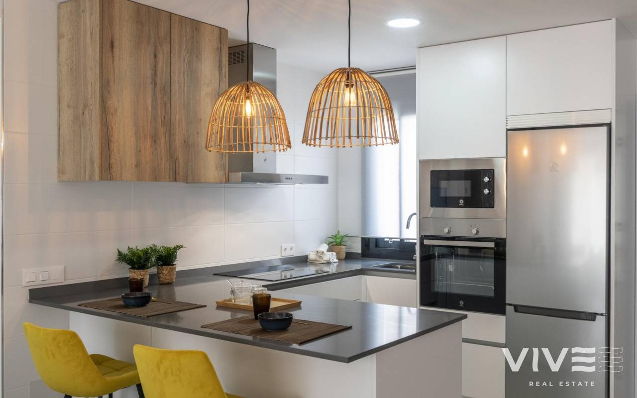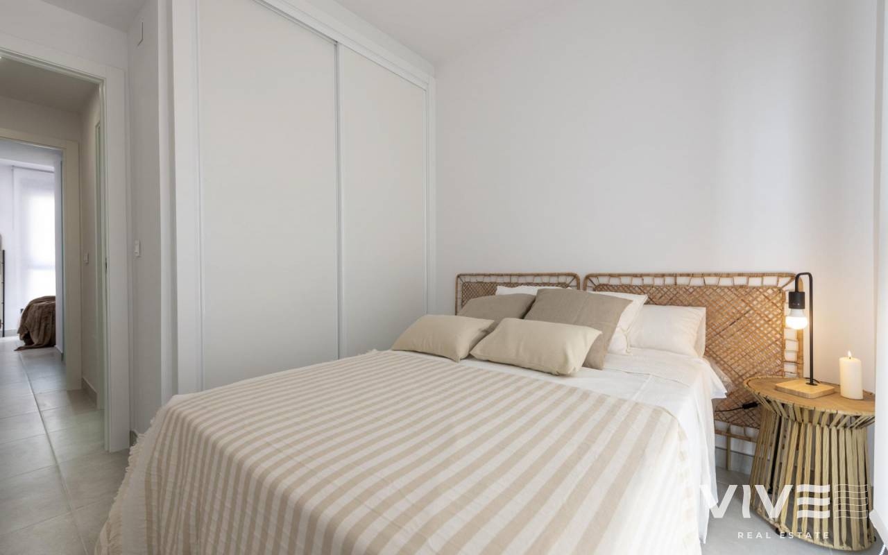 COMPLEJO RESIDENCIAL DE OBRA NUEVA EN ORIHUELA COSTA Urbanización vallada de 40 apartamentos de 2 y 3 dormitorios, planta baja con jardín privado, planta alta con solárium privado, todos con acceso directo a la gran piscina y jardines comunitarios para que usted y su familia disfruten. Todos los apartamentos cuentan con parking y trastero. Diseño moderno y calidades de primera. Complejo situado junto a la playa de Punta Prima para que pueda disfrutar del sol español todo el año en la Costa Blanca. A sólo 5 minutos del campo de golf Villa Martín y del centro comercial La Zenia Boulevard. Complejo situado a 40 minutos del aeropuerto de Alicante y a 1 hora del aeropuerto de Murcia - Corvera.