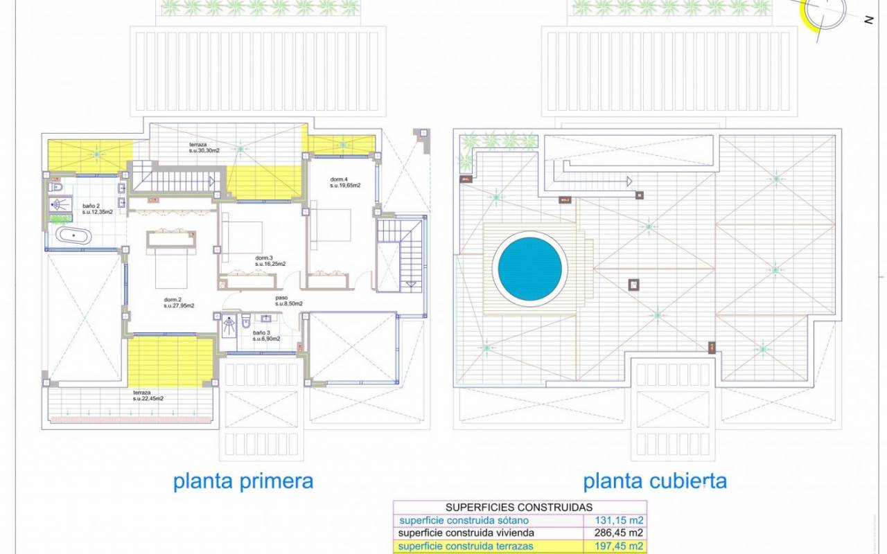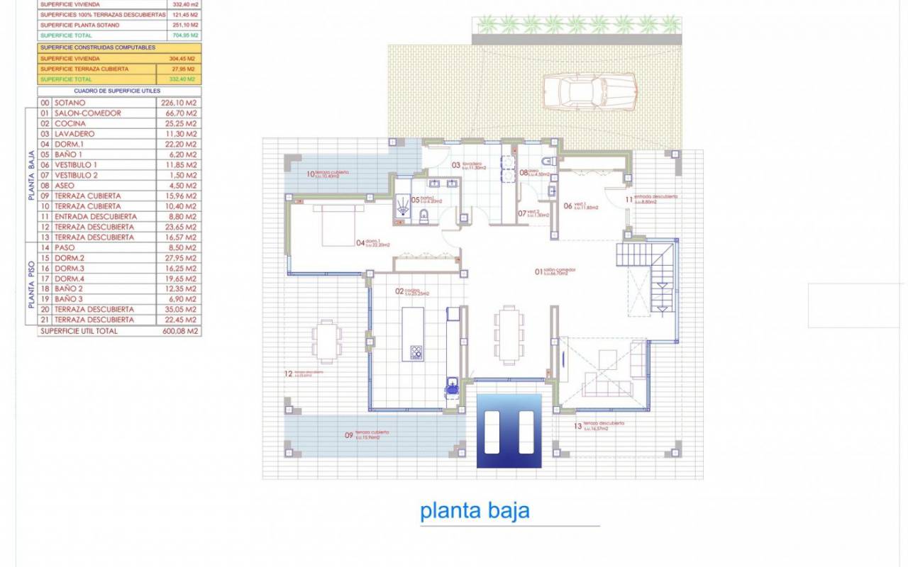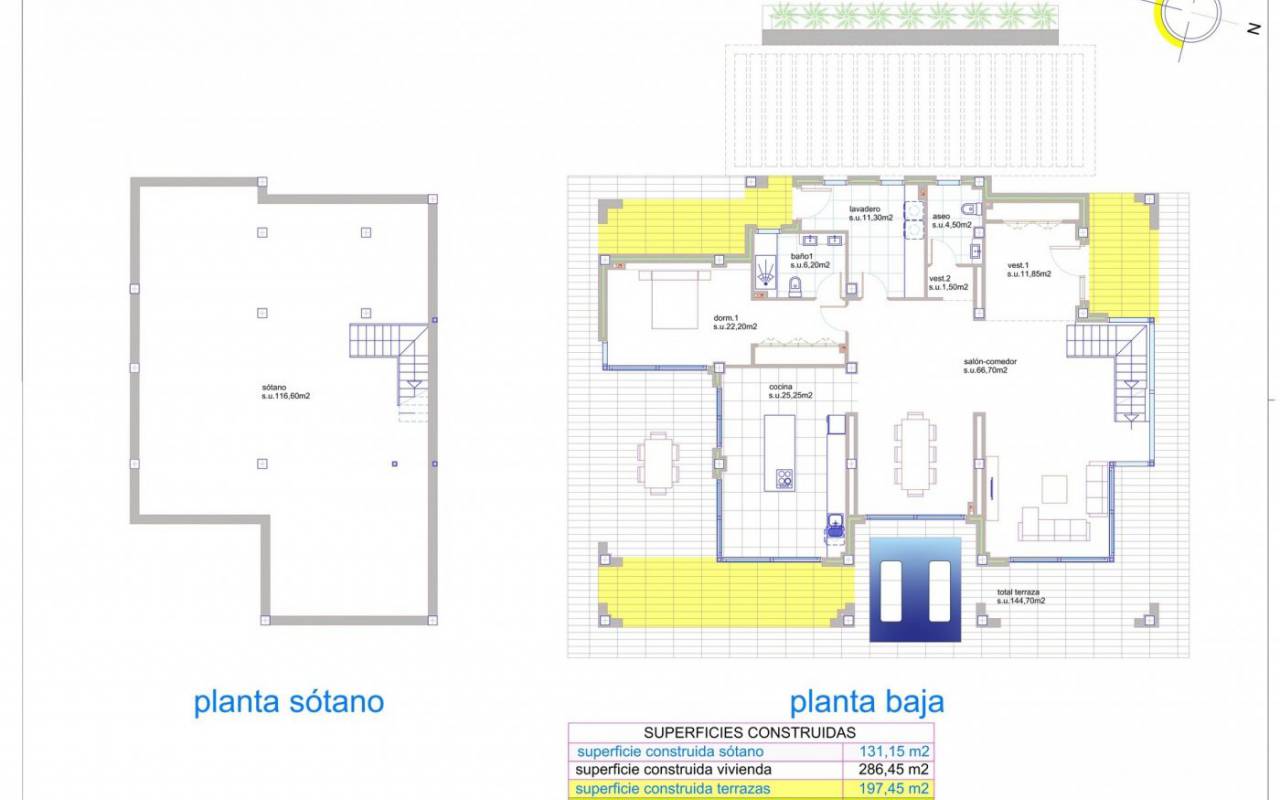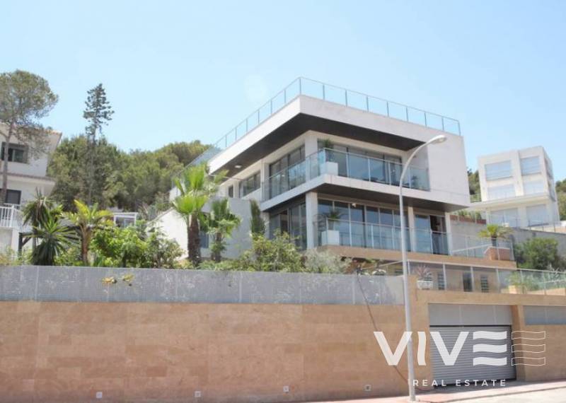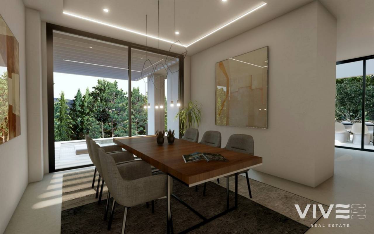 VILLA DE NUEVA CONSTRUCCIÓN EN BENNISA Villa de lujo de nueva construcción en venta en Benissa, Costa Blanca. Villa de lujo en Benissa, arquitectura moderna con piscina infinita 13x4,5m. Esta villa está construida en una gran parcela plana con vistas al mar. Tiene 4 dormitorios y 4 baños, solarium de 197m2, sótano de 205m2. También dispone de parking exterior para 2 vehículos, con pavimento de hormigón impreso, cubierto con un toldo de vela de diseño. Desde el parking se accede a la planta baja a través de una puerta de entrada a la vivienda con cristal lateral fijo de seguridad. De ahí pasamos al gran salón con doble altura en el que se encuentra la escalera de diseño de viga de acero, con peldaños de madera flotantes y barandilla de cristal que da acceso a la primera planta. En la planta baja hay un aseo de invitados, un gran lavadero con acceso a la terraza exterior, un dormitorio con armarios empotrados y baño en suite y una gran cocina cerrada. Toda la planta baja tiene ventanas de suelo a techo que dan mucha luz y acceso a grandes terrazas y a la piscina. En la primera planta hay 3 dormitorios y 2 baños, todos con acceso a terrazas, una de ellas con escalera exterior que lleva al solarium de 197m2. Todos los dormitorios tienen armarios empotrados. Desde todas las habitaciones de la primera planta se accede a una gran terraza y jardín con espectaculares vistas y piscina infinita, así como a una zona chill out con chimenea exterior en el jardín. El sótano tiene una gran zona diáfana donde se puede construir una sala de cine, gimnasio, etc. En el equipamiento de esta villa destacamos las últimas tecnologías instaladas en toda la casa. Como el sistema de domótica controlado por voz y desde la APP del móvil para el sistema de alarma. Instalación completa de conductos de aire acondicionado. Todos los mecanismos necesarios para la instalación de la climatización por zonas, generada por la tecnología del aire, en la planta baja y en la planta piso. Posibilidad de conectar Airzone con el sistema inteligente de la vivienda y con Alexa. Instalación de suelo radiante eléctrico en planta baja y primera. Sistema de ventilación mecánica en baños y cocina, renovación de aire y extracción de humos. Generación de agua caliente sanitaria mediante sistema de Aerotermia, en unidades compactas. Pavimento de gres porcelánico en todo el interior de la vivienda. En las zonas húmedas, como los suelos de las duchas, los mismos serán del tipo antideslizante. Asimismo, se colocarán baldosas antideslizantes en exteriores y solarium. En la cocina, isla y encimera acabadas en Silestone en tono gris, con panel de cristal en la zona frontal de la encimera en tonos a juego. Cocina totalmente equipada de primera marca Küchenhouse, Parcélanos o similar. Baños totalmente equipados con grifería de alta calidad. Video portero. Instalación de iluminación interior con halógenos LED integrados, iluminación indirecta con barras LED empotradas en techos y marcos, en pasillos y otras estancias. Conexiones preparadas para la instalación de lámparas colgantes en salón y cocina. Iluminación exterior perimetral consistente en apliques LED de diseño en fachada exterior y aparcamiento, e iluminación de suelo en zonas de terraza y piscina. Paisajismo compuesto por zonas de césped natural y plantas autóctonas de la zona (olivos, palmeras, naranjos, limoneros...). Vallado de la parcela con muro de bloque revestido de mampostería de piedra seca. La villa se encuentra en una de las zonas residenciales más bonitas de la Costa Blanca. Las localidades de Calpe, Benissa y Moraira ofrecen un litoral extraordinariamente atractivo y de gran interés paisajístico y ecológico, con una costa accidentada con numerosas playas y calas escondidas. Benissa se encuentra entre Valencia y la ciudad de Alicante. El aeropuerto de Manises en Valencia está a una hora y el de L'Altet en Alicante a 50 minutos en coche. Ambos aeropuertos son importantes aeropuertos internacionales a los que llegan un gran número de compañías aéreas de bajo coste.