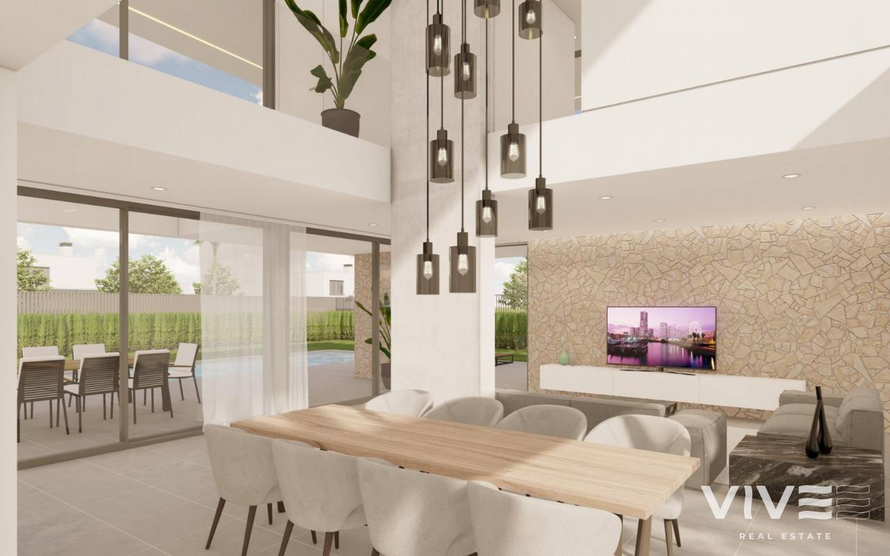 VILLA DE OBRA NUEVA EN CABO ROIG Villa de lujo de obra nueva en Cabo Roig, Orihuela Costa. Esta impresionante villa se erige como nuestra obra maestra, cuidadosamente seleccionada desde los materiales hasta los cautivadores patrones que crean una sensación de belleza atemporal en todos sus espacios. Con una planificación estética y funcional en mente, la villa cuenta con un diseño meticulosamente pensado que optimiza el espacio y mejora la vida cotidiana. Los generosos ventanales inundan los interiores de agradable luz natural, estableciendo una conexión perfecta con el entorno circundante. Vivir aquí significa disfrutar de la proximidad al mar, lo que permite a los residentes abrazar el efecto relajante de la vida costera. Además, las vigorizantes brisas marinas realzan aún más el encanto de esta excepcional propiedad. Cabo Roig es una preciosa urbanización a orillas del Mar Mediterráneo en el sur de la Costa Blanca, perteneciente a Orihuela Costa y es una de las zonas más exclusivas de la Costa Blanca. Como su nombre indica, Cabo Roig es un promontorio que se adentra en el mar y por lo tanto está rodeado de playas, todas ellas con bandera azul. Una de las principales características de Cabo Roig es su baja densidad de edificaciones, donde la mayoría de las propiedades son chalets en grandes parcelas muy próximas a la línea de costa. Esto unido a sus famosas playas de arena blanca y a la amplia oferta de actividades de todo tipo relacionadas con el mar, la proximidad al Centro Comercial La Zenia Boulevard y a los campos de golf de Campoamor y Villamartín, hacen de esta localidad un auténtico paraíso y un lugar privilegiado para pasar unas vacaciones, una larga estancia o incluso establecer su residencia permanente. Un hermoso y romántico paseo marítimo permite recorrer todo el litoral y conecta con las urbanizaciones colindantes. En el futuro está previsto llegar a las localidades de Torrevieja y Torre de la Horadada.