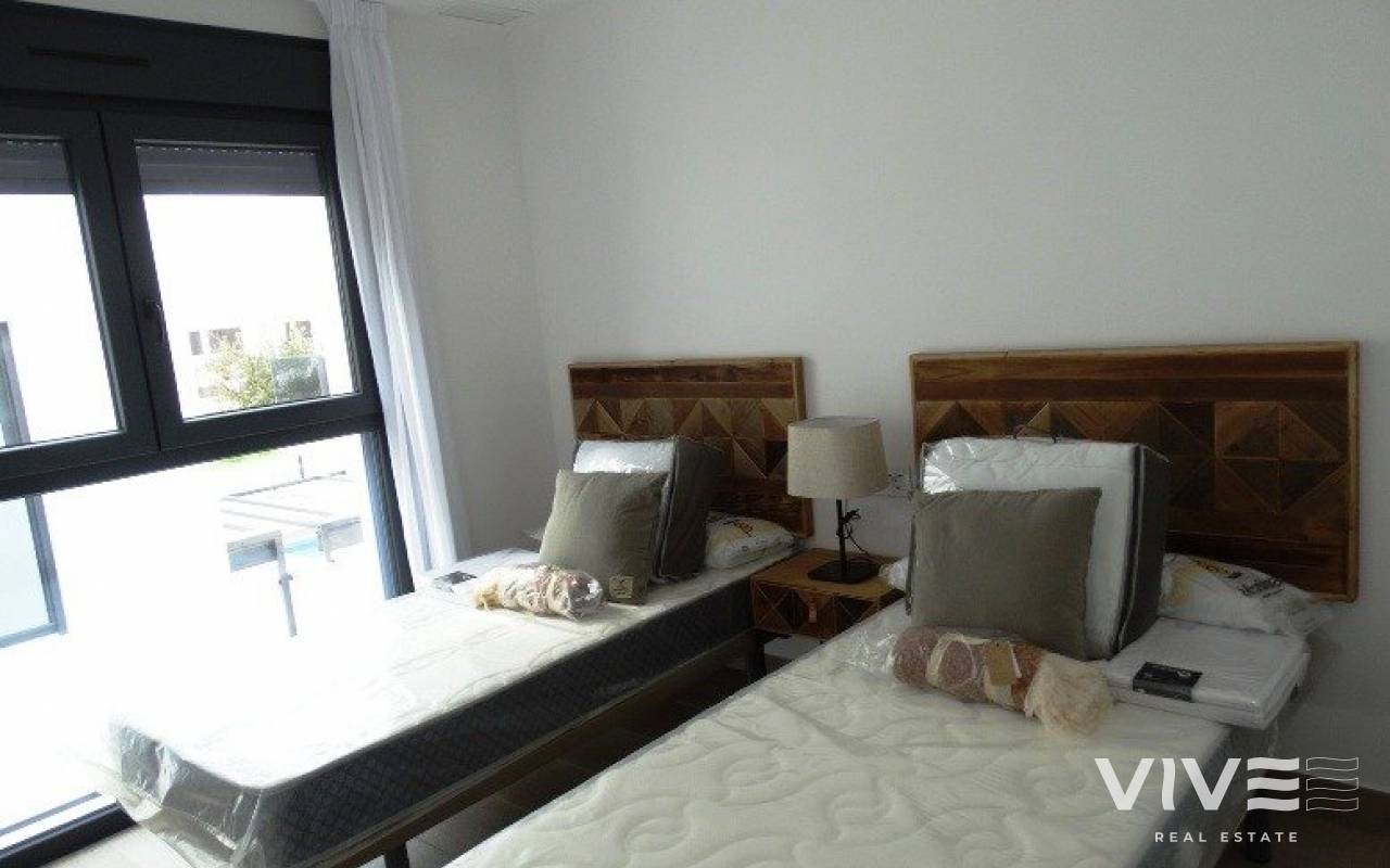 4 VILLAS PAREADAS DE OBRA NUEVA EN PILAR DE LA HORADADA Obra nueva de 4 villas pareadas situadas en Pilar de la Horadada. Villas construidas en 2 plantas y con solarium privado, dispone de 3 dormitorios, 3 baños, cocina americana con el salón, jardín con piscina privada y plaza de garaje. Villas situadas a pocos metros de todos los servicios y del centro. Pilar de la Horadada es un típico pueblo español en la parte más meridional de la Costa Blanca. La gran calle principal tiene supermercados, muchas tiendas, restaurantes y bares y algunas plazas encantadoras. Las hermosas playas de Torre de la Horadada y Mil Palmeras con paseo marítimo de arena fina está a sólo 5 minutos. En Pilar de la Horadada también hay una red bien desarrollada de carriles bici y senderos para caminar, y también hay una gran oferta de diversas actividades deportivas. El campo de golf Lo Romero, de 18 hoyos, se encuentra a un corto trayecto en coche. Los aeropuertos de Corvera (Murcia) y Alicante se encuentran a 40 y 55 minutos respectivamente.