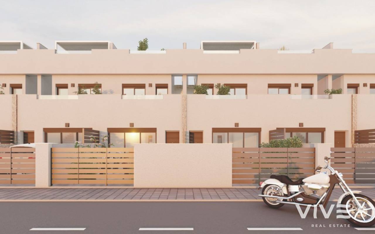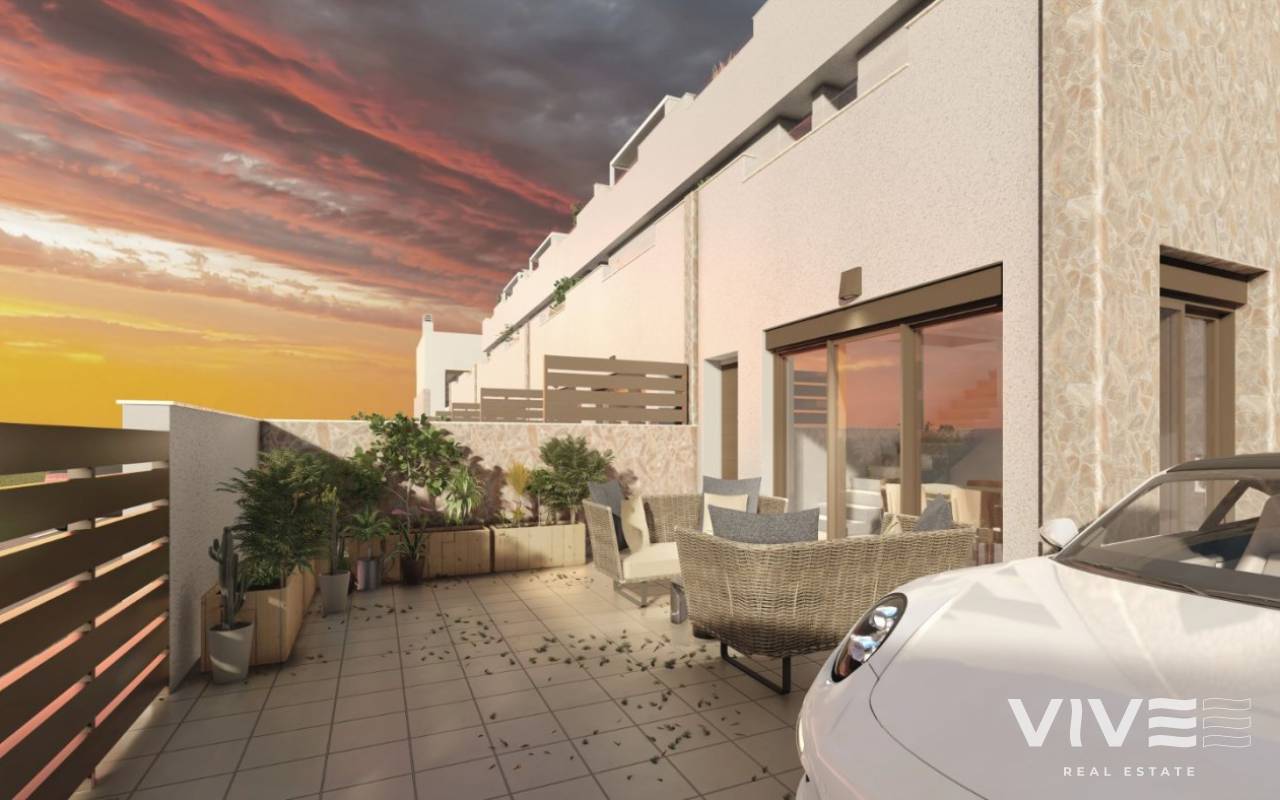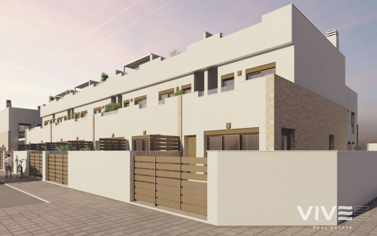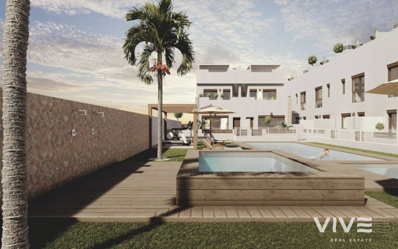 ADOSADOS DE OBRA NUEVA EN PILAR DE LA HORADADA Adosados modernos de nueva construcción en una zona tranquila de Pilar de la Horadada con proximidad a todo lo que necesitas. Los adosados tienen 4 dormitorios, 2 baños, cocina abierta, salón con acceso directo a la acogedora zona de la piscina, terraza en la parte trasera con plaza de aparcamiento, terraza y gran solarium en la azotea. Pilar de la Horadada es un típico pueblo español en la parte más meridional de la Costa Blanca. La gran calle principal tiene supermercados, muchas tiendas, restaurantes y bares y algunas plazas encantadoras. Las hermosas playas de Torre de la Horadada y Mil Palmeras con arena fina y paseo marítimo está a sólo 5 minutos. Los aeropuertos de Corvera (Murcia) y Alicante están a 40 y 55 minutos respectivamente.