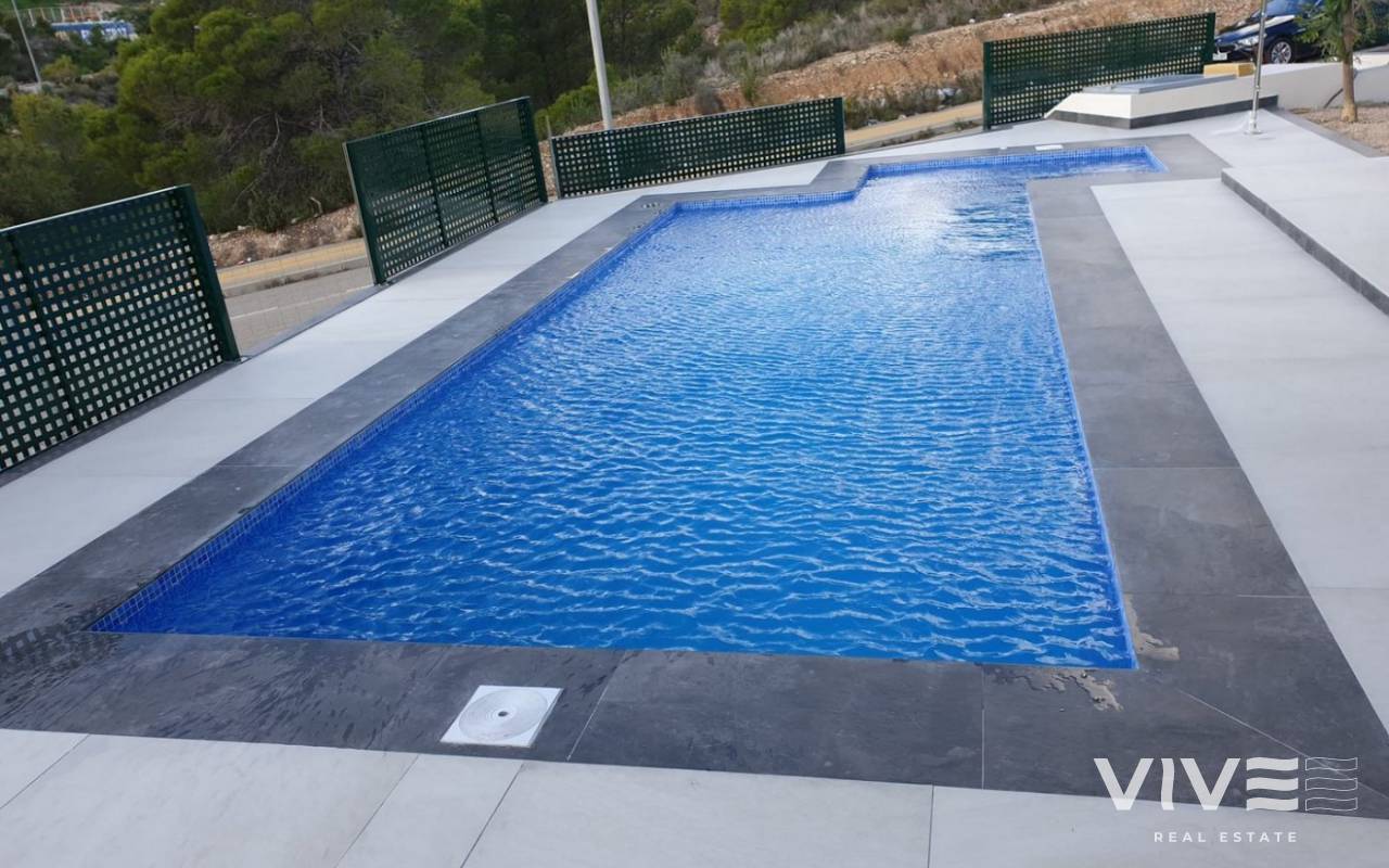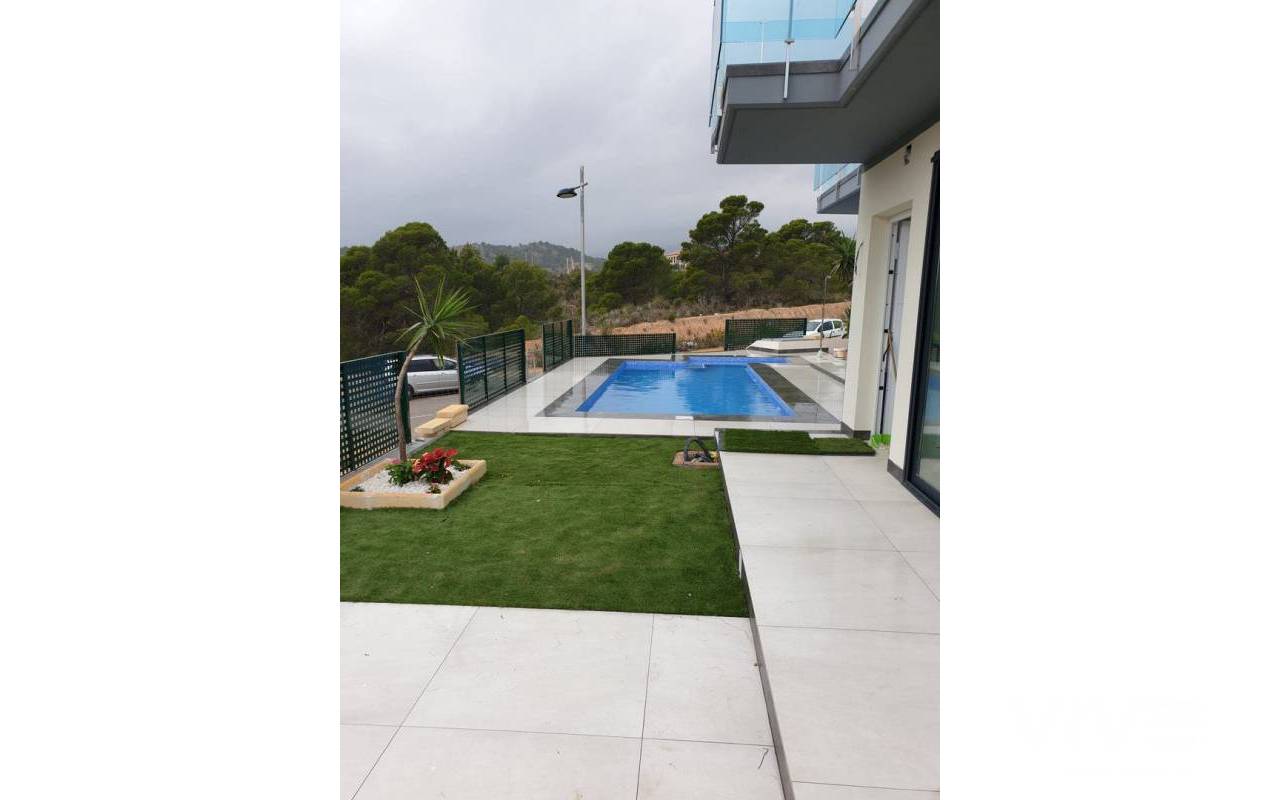 VILLAS DE OBRA NUEVA EN FINESTRAT Modernas villas de obra nueva en Finestrat con 3 dormitorios, 3 baños, salón y cocina diáfanos, terraza descubierta, solárium y plaza de aparcamiento para 2 coches. La villa se entrega totalmente terminada incluyendo muebles de cocina, zona de aparcamiento, piscinas y jardinería con vallado. Estas villas se realizarán con materiales de primera calidad y con un sistema de eficiencia energética mediante software con ventilación de doble flujo. Residencial situado a 5 min en coche de todos los servicios que ofrece Benidorm y en un entorno con una temperatura media anual de 20ºC y 300 días de sol al año, a 44 km del aeropuerto de Alicante, a 3 km del mar y a 200 metros del golf.