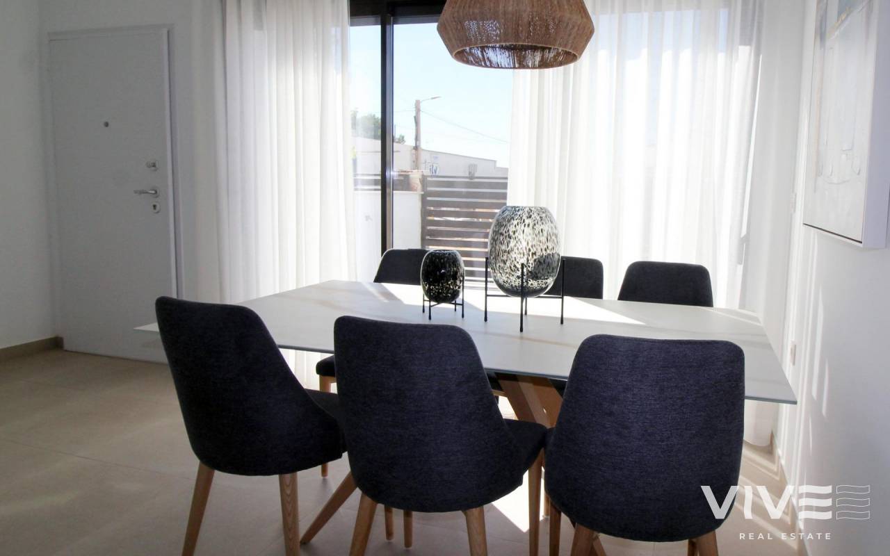 PAREADO DE OBRA NUEVA EN PILAR DE LA HORADADA Adosados y pareados modernos de nueva construcción en una zona tranquila de Pilar de la Horadada con proximidad a todo lo que necesitas. Viviendas tienen 3 dormitorios, 2 baños, cocina abierta, salón con acceso directo a la acogedora zona de la piscina, terraza en la parte trasera con plaza de aparcamiento, terraza y gran solarium en la azotea. Pilar de la Horadada es un típico pueblo español en la parte más meridional de la Costa Blanca. La gran calle principal tiene supermercados, muchas tiendas, restaurantes y bares y algunas plazas encantadoras. Las hermosas playas de Torre de la Horadada y Mil Palmeras con arena fina y paseo marítimo está a sólo 5 minutos. Los aeropuertos de Corvera (Murcia) y Alicante están a 40 y 55 minutos respectivamente.