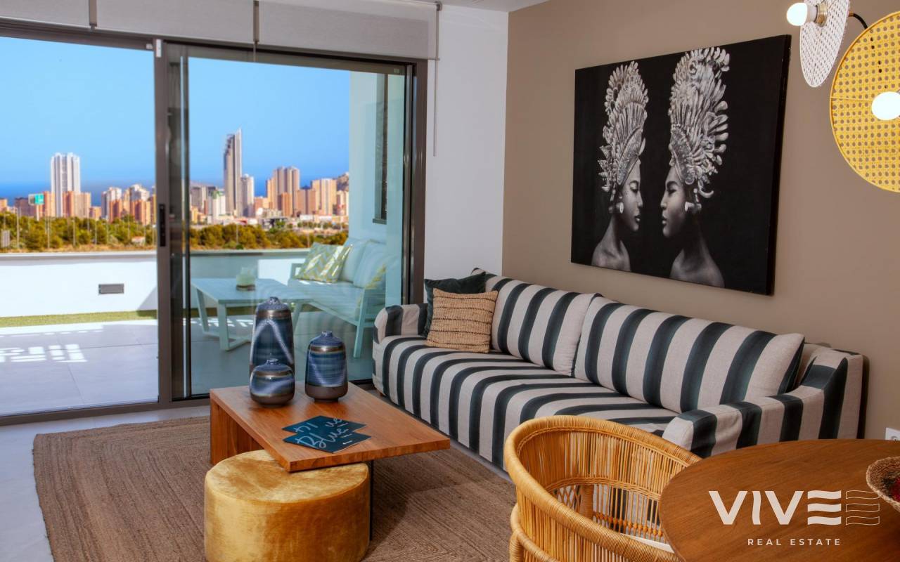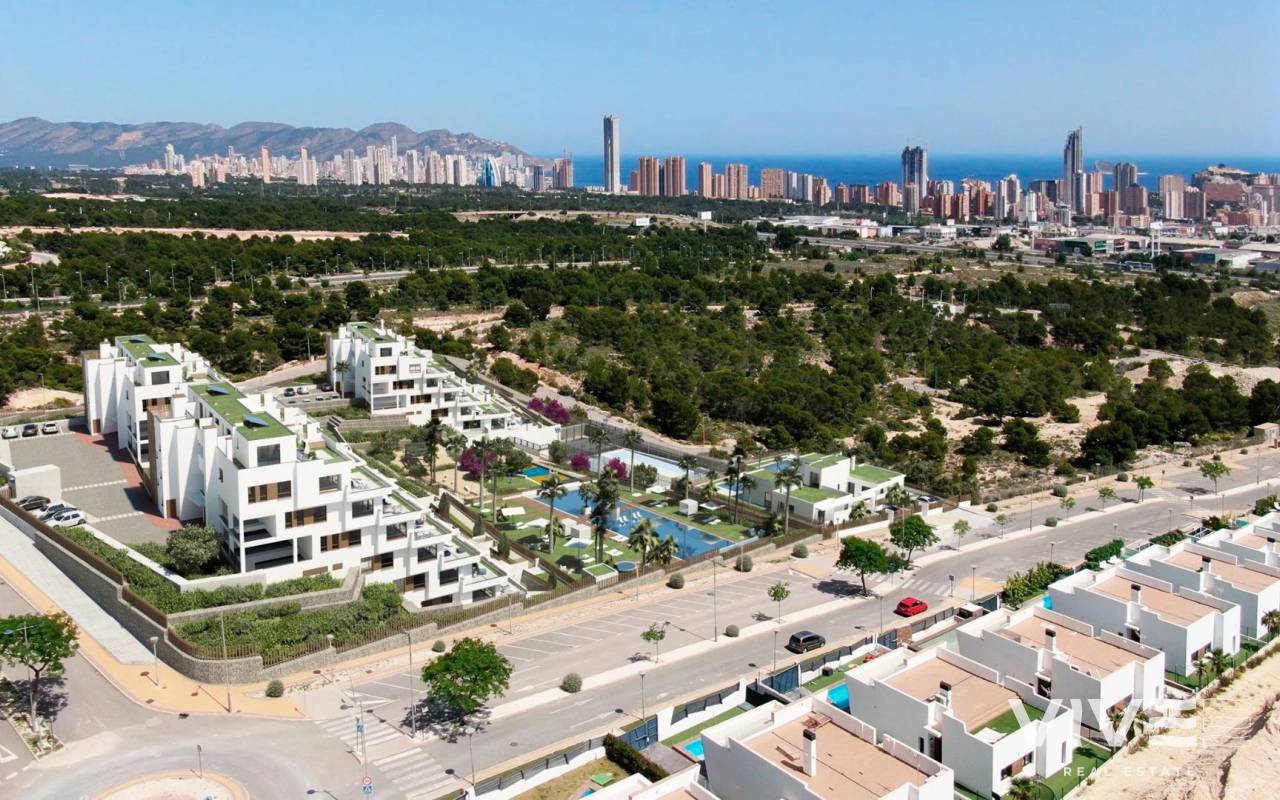 COMPLEJO RESIDENCIAL DE OBRA NUEVA EN FINESTRAT CON VISTAS AL MAR Complejo residencial de lujo de nueva construcción en Finestrat. El complejo consta de dúplex, apartamentos, áticos y villas independientes. El complejo consta de 3 bloques: 2 bloques de 7 plantas y 1 de 5. Villas individuales con piscina privada. Hermosos apartamentos de planta baja con 2 y 3 dormitorios, 2 baños, cocina abierta con el salón, armarios empotrados, sótano y jardín privado. Cada propiedad viene con plaza de aparcamiento subterráneo y trastero. Complejo cerrado de lujo con zonas comunes, vistas al mar y al skyline de Benidorm situado a pocos kilómetros de la bulliciosa vida de playa, centro comercial y playas de arena. La entrega del complejo es en abril de 2025. El complejo consta de: Piscina comunitaria de 200 m² Piscina cubierta climatizada Zona de juegos Zona deportiva Pádel Aparcamiento subterráneo Trastero Ascensor Finestrat se encuentra en la comarca de la Marina Baixa de la Costa Blanca, cerca de la vecina Benidorm y a unos 40 kilómetros de la ciudad de Alicante y del aeropuerto internacional. El pueblo está situado en la ladera del Puig Campana y ofrece hermosas vistas de las montañas, la costa y el mar Mediterráneo. Benidorm está a sólo cinco minutos en coche de las propiedades y ofrece todos los servicios que pueda necesitar, incluyendo tiendas, bares, restaurantes, supermercados, bancos, farmacias y varias escuelas privadas internacionales. Cerca de las playas de Levante, Poniente y Cala de Finestrat, con más de 6km de longitud que se encuentran entre las mejores de Europa galardonadas por la Unión Europea con Banderas Azules. Todos los servicios de ocio como los parques temáticos de Aqua Natura, Terra Mítica, Terra Natura, Aqualandia y Mundomar, los campos de Golf Sierra Cortina y Villaitana, el senderismo y la escalada en el Puig Campana un marco natural incomparable o el disfrute de los deportes náuticos.
