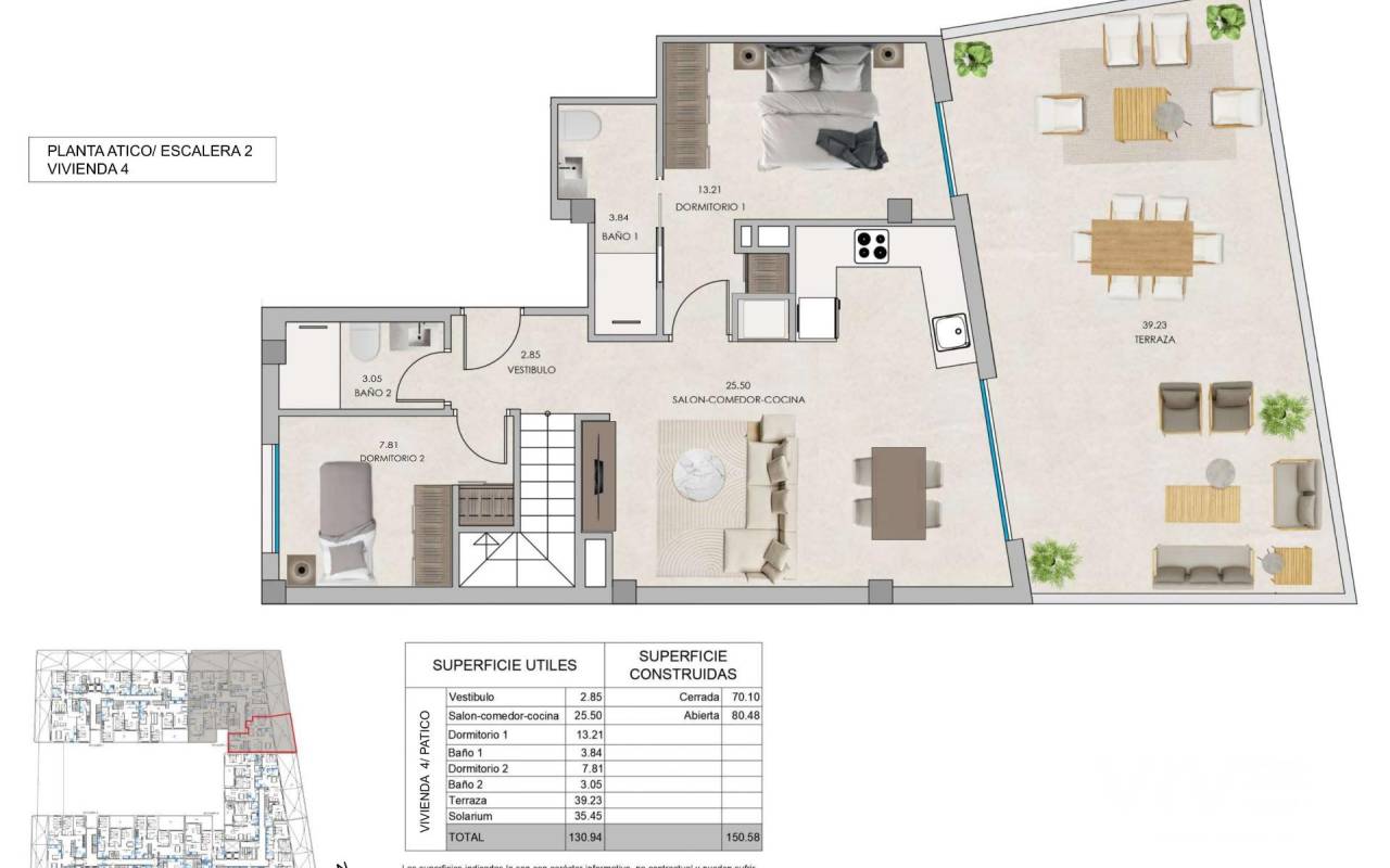 COMPLEJO RESIDENCIAL DE OBRA NUEVA EN SANTA POLA Moderno residencial cerrado compuesto por viviendas de 1, 2 y 3 dormitorios y 2 baños completos. El complejo está formado por 4 escaleras de apartamentos con amplias zonas comunes ajardinadas, que incluyen piscina, zona de relax y gimnasio. Las viviendas han sido cuidadosamente diseñadas para brindarte una experiencia de vida excepcional, con acabados de alta calidad y un estilo moderno. Disfruta de sus amplias terrazas, donde podrás relajarte, organizar cenas al aire libre y contemplar los atardeceres más espectaculares. La ubicación es simplemente inmejorable: junto al centro de Santa Pola y el palmeral, y a tan sólo unos minutos del paseo marítimo, estarás cerca de una amplia oferta de restaurantes, bares y supermercados. Excelente conexión con la carretera nacional 332, que comunica toda la Costa Blanca sur, y con el aeropuerto en tan sólo 15 minutos.