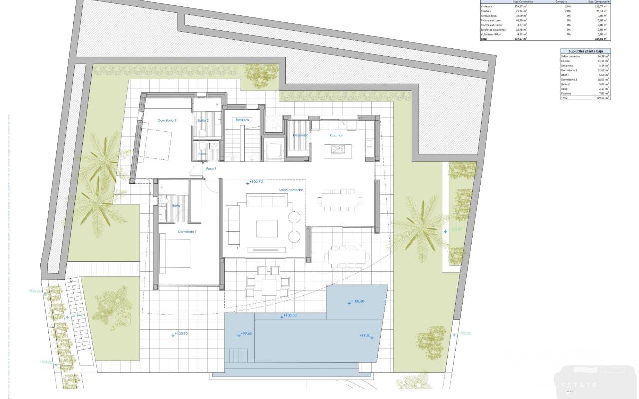 Lujosa Villa con Vistas al Mar en Calpe - Elegancia Moderna con Impresionantes Vistas Ubicación privilegiada en Calpe, Alicante - Zona tranquila y establecida Esta lujosa villa está situada en Calpe, Alicante, en una zona tranquila y consolidada conocida por su encanto y su proximidad a algunas de las mejores atracciones de la zona. A sólo 5,4 km del centro de Calpe, esta villa ofrece un cómodo acceso al centro de la ciudad y a las impresionantes playas de Calpe, que cuentan con aguas cristalinas y arenas suaves. Conocida por su belleza paisajística, Calpe está rodeada de parques naturales y del emblemático Peñón de Ifach, un hito que añade un carácter único al paisaje. Puntos de interés cercanos: Centro de Calpe y Playas: A sólo 5,4 km, lo que permite un fácil acceso a las tiendas locales, restaurantes y playas. Aeropuerto de Alicante: 78 km, por lo que es conveniente para los viajes internacionales y nacionales. Campos de Golf: Varios campos de golf de renombre se encuentran en un radio de 15 km, perfecto para los entusiastas del golf. Centros Comerciales: El popular Centro Comercial La Marina de Benidorm está a unos 25 km, ofreciendo una variedad de opciones de compras y restaurantes. Puerto de Calpe: Aproximadamente a 6 km, ideal para los amantes de los yates y los deportes acuáticos. Impresionante villa con vistas al mar y 3 plantas de moderno confort Esta villa ofrece 335 m² de lujoso espacio habitable en una generosa parcela de 1.042 m², con espectaculares vistas al mar, al Peñón de Ifach y al pueblo de Calpe. Con tres plantas cuidadosamente diseñadas y conectadas por una escalera interior y un ascensor, esta villa ofrece estilo y comodidad en todos los niveles. Planta semisótano: Aparcamiento, lavandería y bodega Entrando desde la calle a través de puertas automáticas, se llega directamente a la entrada del garaje, situado en la planta semisótano. El espacioso garaje de 52 m² tiene capacidad para varios vehículos e incluye una zona de lavandería y una bodega, lo que añade un toque de lujo y funcionalidad. Planta principal: Sala de estar abierta y acceso a la piscina En la planta principal, a la que se accede por escalera o ascensor, encontrará una amplia zona de estar y comedor que conduce a un porche de 25 m² y a una impresionante terraza junto a la piscina de 78 m². La cocina abierta, totalmente equipada con electrodomésticos Siemens, se integra perfectamente en el salón. Esta planta también incluye dos dormitorios con baños en suite y un aseo de invitados. Planta superior: Dormitorios privados con impresionantes terrazas La planta superior cuenta con dos dormitorios dobles adicionales, cada uno con baño en-suite y acceso a terrazas abiertas que ofrecen vistas panorámicas. Acabados de alta calidad e instalaciones modernas Esta villa cuenta con características de primera categoría, incluyendo carpintería Technal con vidrio de seguridad, iluminación LED, calefacción por suelo radiante, aire acondicionado por conductos, y un sistema aerotérmico para agua caliente y calefacción. Otras comodidades incluyen persianas eléctricas, armarios empotrados, sistemas de alarma interior y exterior, preinstalación de cámaras de seguridad y una piscina infinita de 10x3,3 m con zona de barbacoa. Orientada al sur para una exposición óptima al sol, esta villa es energéticamente eficiente con una calificación A. Experimente una vida de lujo y tranquilidad en Calpe