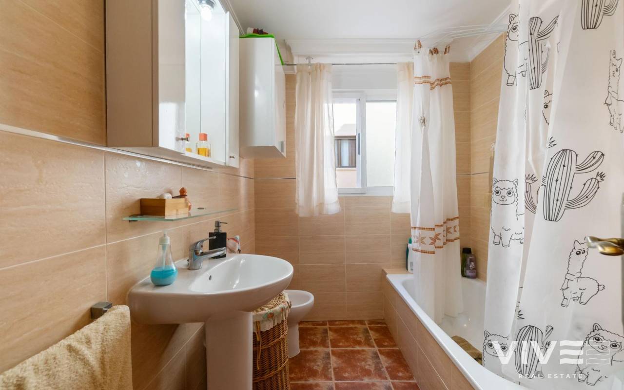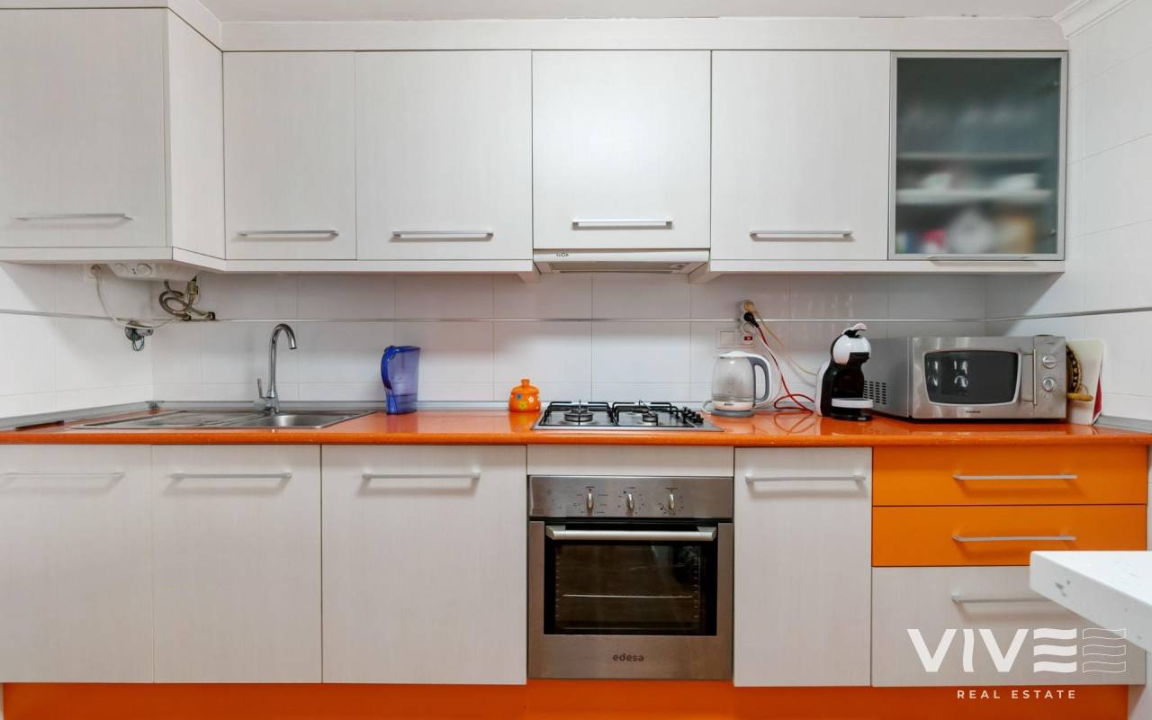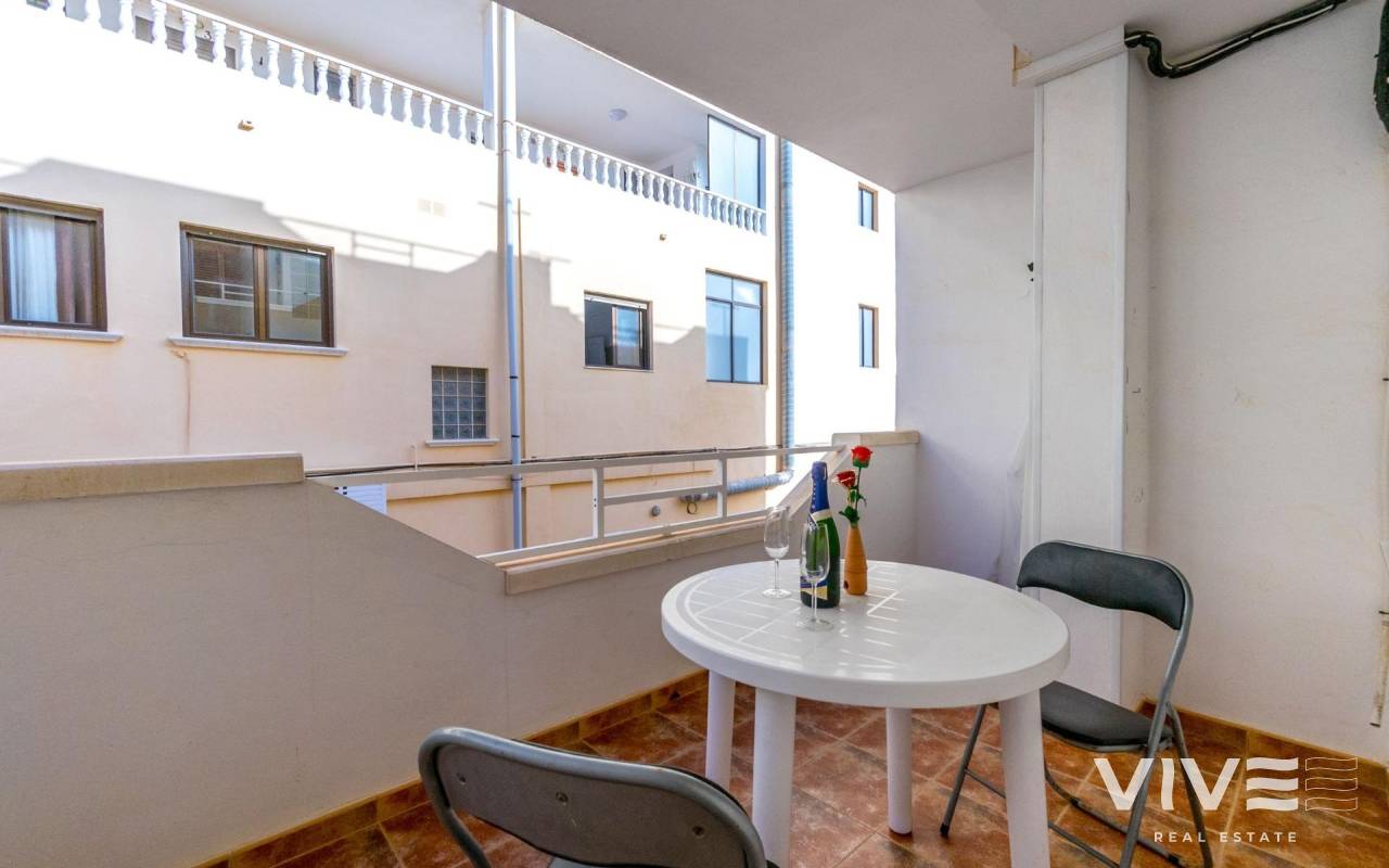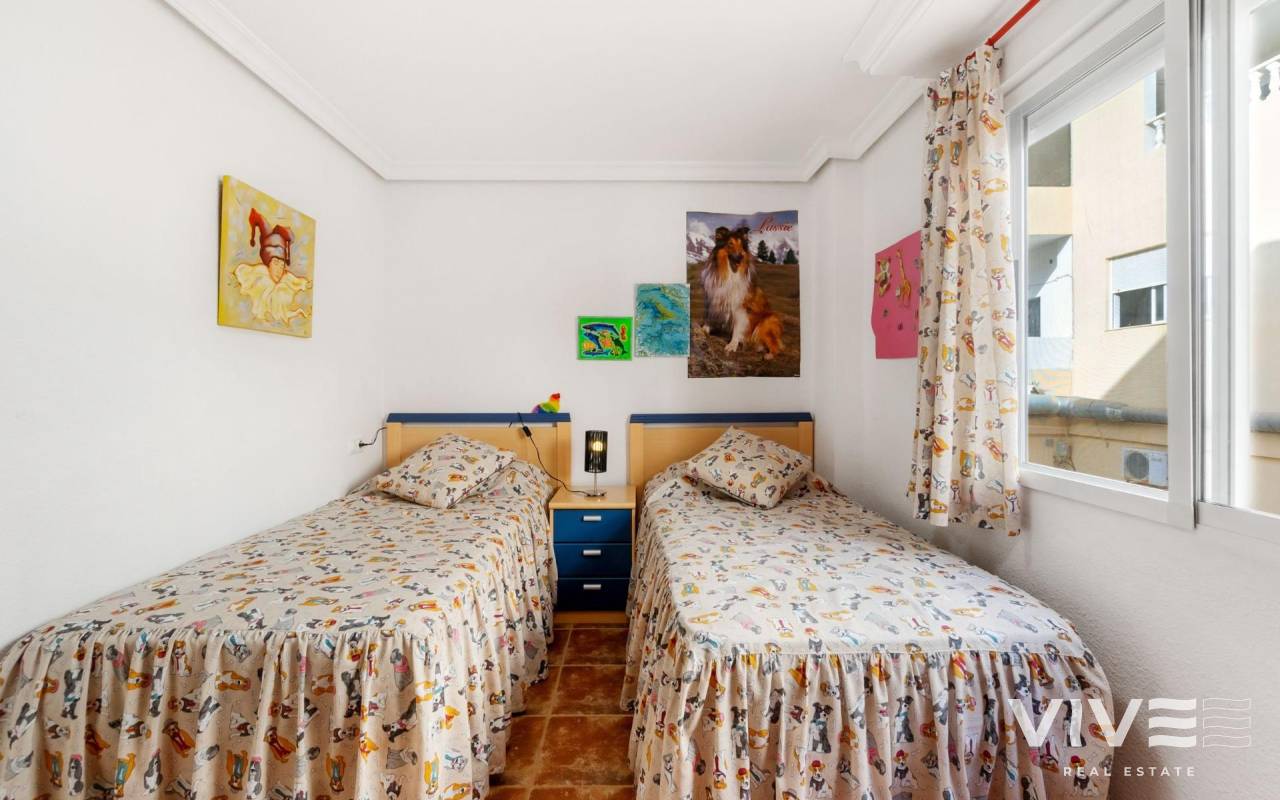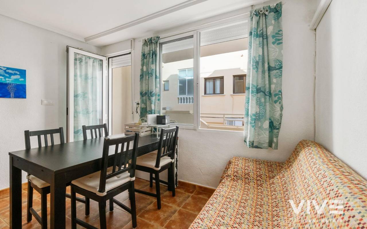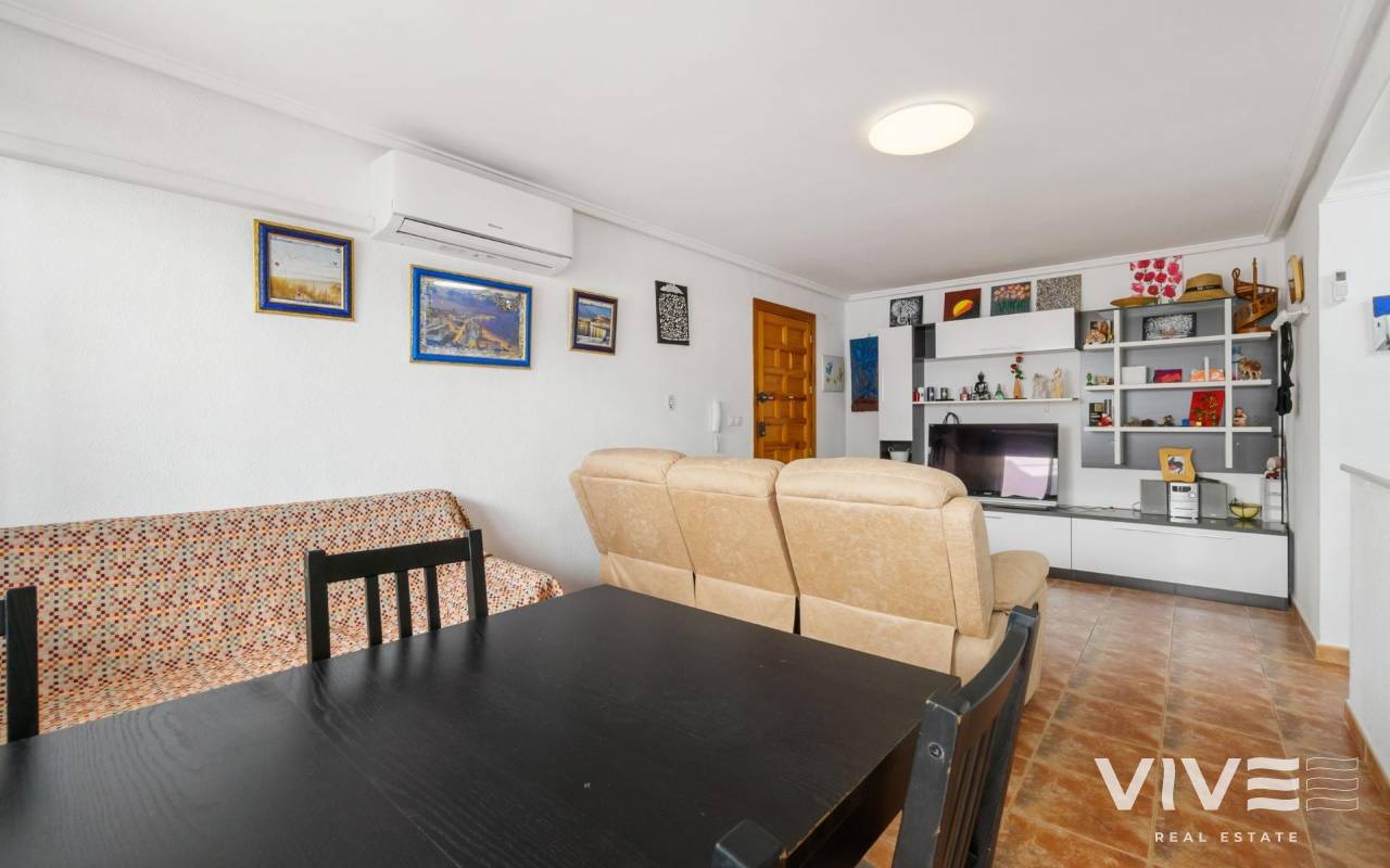Apartamento en La Mata, en una ubicación perfecta, situado solo a 300m de la playa de la Mata. La vivienda en primera planta, con la superficie de 68m2, se distribuye en la siguiente manera: salón-comedor con acceso a la terraza de unos 8m2, amplia cocina americana totalmente equipada, tres dormitorios y un baño completo y amplio, con la bañera. Aire acondicionado instalado en el salón. Se vende amueblado. Solárium comunitario con vistas al mar. El edificio sin ascensor. Muy céntrico, con todos los servicios a pie.