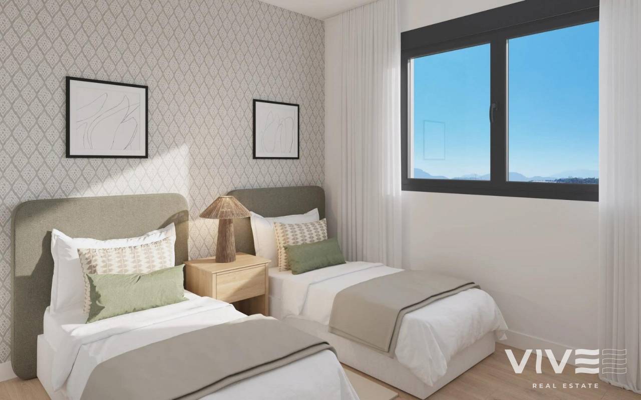 Residencial de nueva construcción en Alicante, con vistas abiertas a la ciudad La casa de sus sueños en una ubicación privilegiada Descubra su nuevo hogar en el codiciado barrio de San Agustín de Alicante, donde la vida moderna se encuentra con paisajes pintorescos. Este exclusivo complejo residencial, situado cerca de Pau II, ofrece 47 apartamentos bellamente diseñados con 2, 3 ó 4 dormitorios. La comunidad cuenta con una piscina comunitaria, exuberantes jardines, e incluye una plaza de garaje y trastero para mayor comodidad. Servicios exclusivos para un estilo de vida confortable Disfrute de una serie de servicios diseñados para mejorar su calidad de vida. Los áticos del complejo cuentan con solariums privados accesibles directamente desde los apartamentos, que ofrecen impresionantes vistas de Alicante. Entre las comodidades adicionales se incluye un aparcamiento seguro para bicicletas, que facilita la adopción de un estilo de vida activo. Su nuevo hogar dispone de calefacción centralizada por aerotermia para una mayor eficiencia energética y confort durante todo el año, con aire acondicionado integrado (frío/calor) distribuido por conductos. La carpintería de PVC o aluminio de alta calidad con aislamiento térmico y acústico garantiza un entorno tranquilo y climáticamente eficiente. Convenientemente conectado con todo lo que necesitas Situada entre Gran Vía y Vía Parque, la promoción ofrece una excelente conectividad con el centro de la ciudad y las principales vías de comunicación como la autopista A7. La céntrica ubicación es ideal para familias y profesionales, con nueve instituciones educativas de todos los niveles muy cerca. Para las necesidades diarias, encontrará cerca cuatro grandes supermercados y el Centro Comercial Isla de Corfú, que ofrece gimnasios, restaurantes y una gran variedad de tiendas. Todo lo que necesita está a poca distancia, lo que le permite dejar su coche en casa. Un barrio rico en accesibilidad y belleza natural El barrio de San Agustín se asienta sobre una suave colina, ofreciendo vistas panorámicas del perfil de la ciudad, el Monte Benacantil y las montañas circundantes. El clima mediterráneo de Alicante hace que la vida al aire libre sea un placer durante todo el año, con un montón de espacios verdes y opciones de ocio cerca. Distancias clave: Centro de Alicante: 2 km Aeropuerto Alicante-Elche: 14 km Playa de San Juan: 6 km Campo de golf de Alicante: 7 km Puerto de Alicante: 5 km Experimente lo mejor de la vida alicantina El excepcional clima de Alicante, su vibrante cultura y sus excelentes infraestructuras la convierten en una de las ciudades españolas más deseadas para vivir. Esta nueva promoción residencial en San Agustín combina un diseño elegante con una ubicación inmejorable, lo que la convierte en el lugar ideal para su próxima etapa. Póngase en contacto con nosotros hoy mismo para concertar una visita y hacer suya esta casa de ensueño.