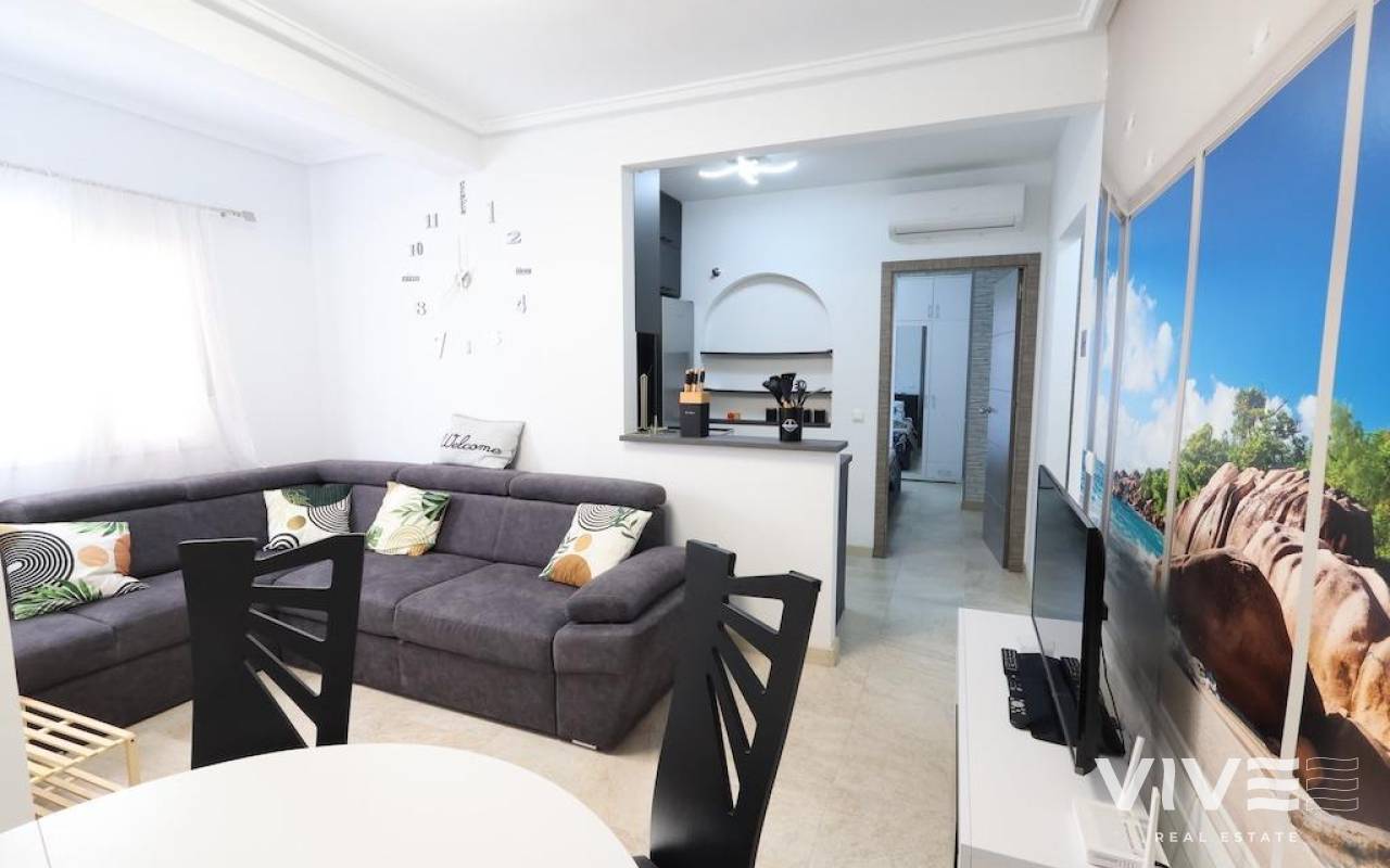 Zona Acequión, Torrevieja – Apartamento reformado a 300 metros de la playa. . Magnífico apartamento en planta baja totalmente reformado, ubicado en la tranquila zona del Acequión, a tan solo 300 metros del mar. Con una superficie de 65 m², la vivienda se distribuye en 3 dormitorios, 1 baño completo, cocina americana, y un amplio y luminoso salón-comedor con acceso a una terraza perfecta para disfrutar del clima mediterráneo.. . Se vende completamente amueblado y equipado, con aire acondicionado instalado, y forma parte de un residencial con piscina comunitaria.. . Una excelente opción tanto como vivienda habitual, residencia vacacional o inversión con gran potencial de alquiler.