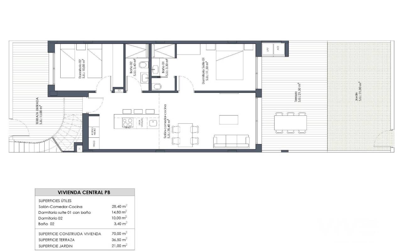 Bungalows de Obra Nueva en San Miguel de Salinas – Naturaleza, Golf y Confort Ubicación Privilegiada en un Entorno Natural Este exclusivo residencial de bungalows de obra nueva se encuentra a menos de 3 km de San Miguel de Salinas, en una zona tranquila rodeada de naturaleza y con impresionantes vistas despejadas. Su excelente ubicación permite disfrutar de la tranquilidad sin renunciar a la proximidad de todos los servicios. A tan solo 7 km se encuentran las playas de Orihuela Costa y la ciudad de Torrevieja, donde podrá disfrutar de una variada oferta de ocio, gastronomía y comercios. Diseño Moderno y Vistas Despejadas Las viviendas están diseñadas con un estilo moderno y cuentan con acabados interiores y exteriores de alta calidad. Puede elegir entre: Plantas bajas con jardín privado, ideales para quienes buscan disfrutar del aire libre. Plantas altas con solárium privado, perfectas para tomar el sol y relajarse con vistas panorámicas. Además, todas las viviendas incluyen plaza de aparcamiento asignada. Espacios Comunes para el Máximo Confort El residencial ofrece una preciosa piscina comunitaria, rodeada de zonas verdes, perfecta para disfrutar del clima mediterráneo. El entorno natural fomenta un estilo de vida saludable, alejado del estrés y la contaminación, en un enclave que se asemeja a un verdadero paraíso. Cercanía a los Mejores Campos de Golf San Miguel de Salinas es un destino ideal para los amantes del golf. A menos de 4 km se encuentran tres de los campos más prestigiosos de la Costa Blanca: Villamartín Golf – 3,5 km. Las Colinas Golf & Country Club – 4 km. Campoamor Golf – 4 km. Conectado con los Principales Puntos de Interés Este residencial se encuentra en una ubicación estratégica con fácil acceso a: San Miguel de Salinas – 3 km. Playas de Orihuela Costa – 7 km. Torrevieja – 7 km. Centro Comercial La Zenia Boulevard – 10 km. Aeropuerto de Alicante – 55 km. Aeropuerto de Murcia (Corvera) – 50 km. Asegure su Vivienda en San Miguel de Salinas Si busca un hogar en la Costa Blanca donde disfrutar de la tranquilidad, la naturaleza y el golf, este residencial es su mejor opción. Contáctenos hoy mismo para más información y para programar una visita.
