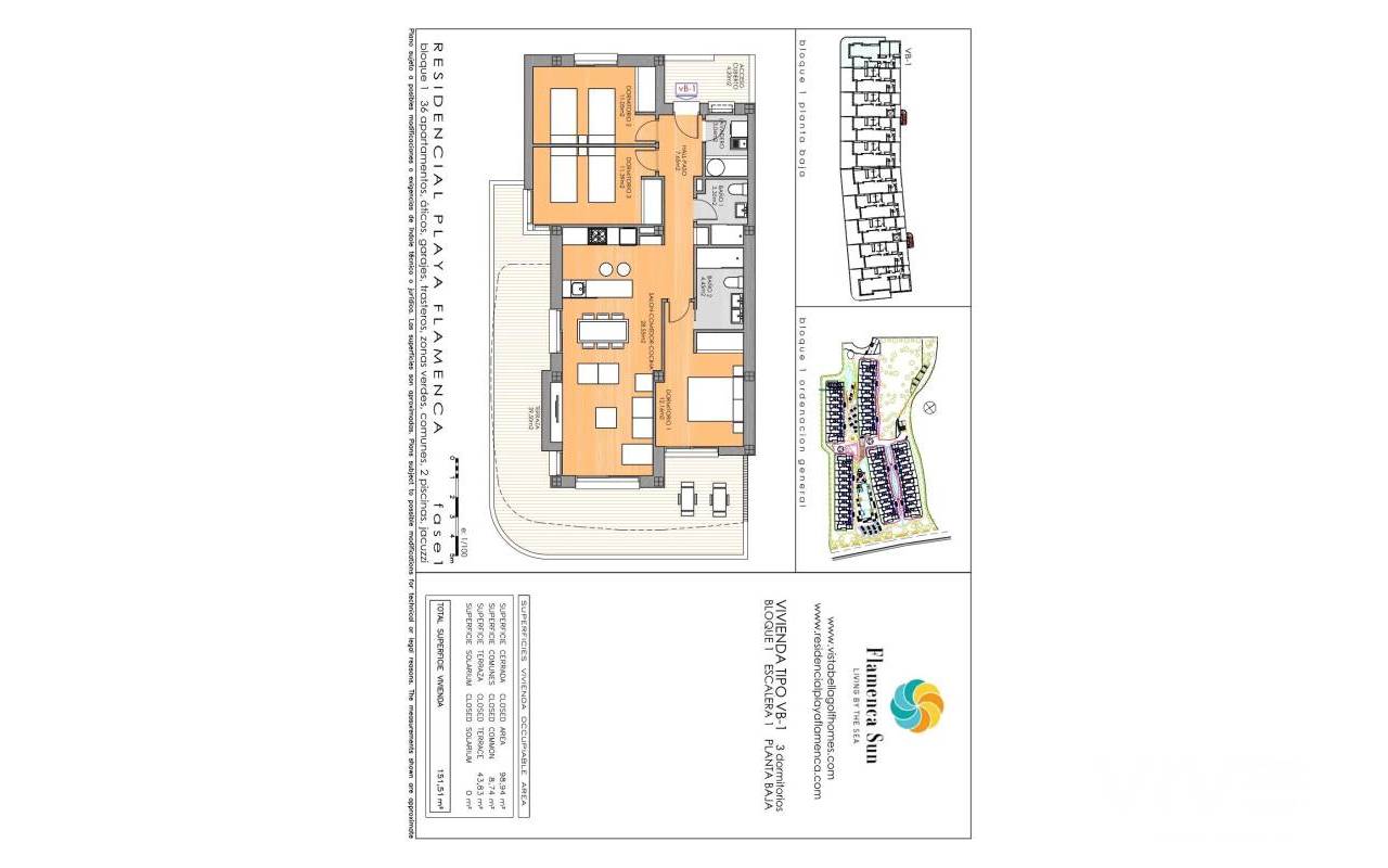 Apartamento Exclusivo en Planta Baja Frente a la Piscina – Obra Nueva en Playa Flamenca, Orihuela Costa. Te presentamos esta fantástica vivienda de obra nueva situada en una de las zonas más demandadas de Orihuela Costa, a tan solo 500 metros del mar. Este apartamento en planta baja destaca por su excelente ubicación dentro del residencial: justo frente a la piscina comunitaria, con dos terrazas privadas —delantera y trasera— ideales para disfrutar del sol durante todo el día.. . Detalles que Marcan la Diferencia:. 98,94 m2 construidos distribuidos en 3 dormitorios dobles y 2 baños completos y lavadero. . Amplia terraza principal de 43,83 m2, perfecta para tus momentos al aire libre.. . Cocina con muebles y electrodomésticos incluidos.. . Las persianas se suben con motor . . Modificada y mejorada: cuenta con aire acondicionado por conductos instalado y mejoras funcionales en la cocina, ademas de haber modificado los puntos de luz para una mejor iluminacion.. . Se entrega sin muebles, lo que te permite decorarla completamente a tu gusto.. . Ventajas de Vivir Aquí:. Obra nueva con acabados modernos y de alta calidad.. . Orientación sur, que proporciona gran luminosidad natural durante todo el día.. . Carpintería exterior en PVC con doble acristalamiento tipo Climalit.. . Garaje y trastero incluidos, para tu comodidad y seguridad.. . Acceso directo y cómodo al ser planta baja.. . Zona ajardinada y varias piscinas comunitarias para relajarte o disfrutar en familia.. . Ubicación Inmejorable:. Vivir en Playa Flamenca significa estar cerca de todo:. . A poca distancia de supermercados, restaurantes, colegios, centros de salud y transporte público.. . A minutos de Zenia Boulevard, campos de golf y múltiples opciones de ocio.. . En una urbanización segura y tranquila, perfecta como residencia habitual o segunda vivienda.. . Una Inversión Inteligente en la Costa Blanca. Ya sea que estés buscando una vivienda para tus vacaciones, para vivir todo el año o como inversión rentable, esta propiedad lo tiene todo: ubicación premium, características exclusivas y precio competitivo.. . ???? Contáctanos hoy mismo y agenda tu visita sin compromiso. Esta oportunidad no estará disponible por mucho tiempo.. .