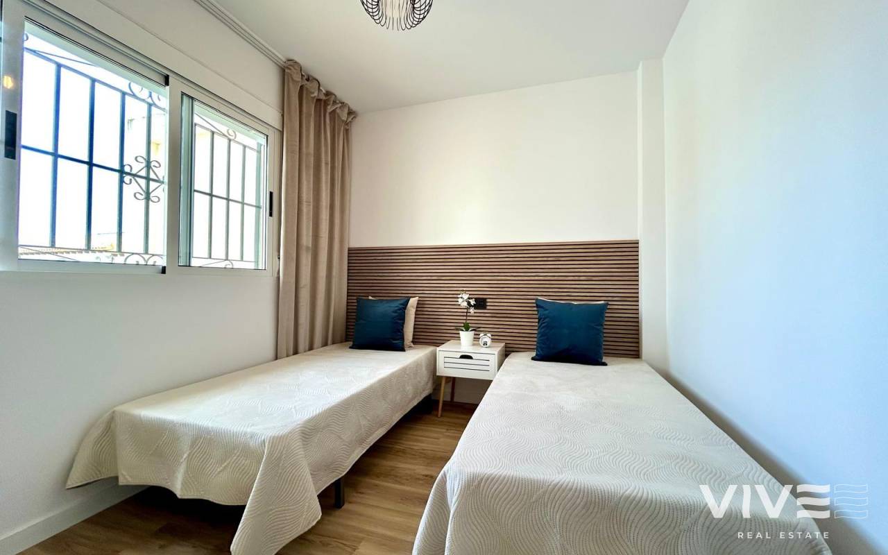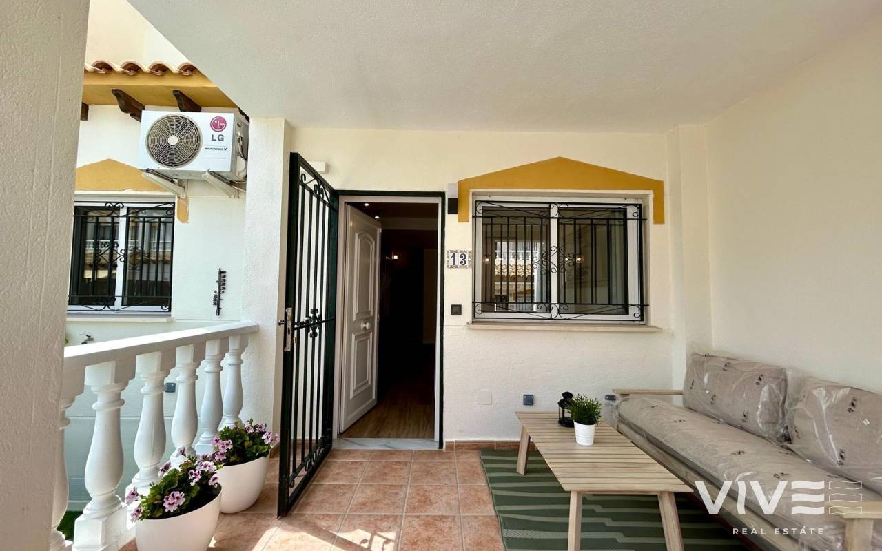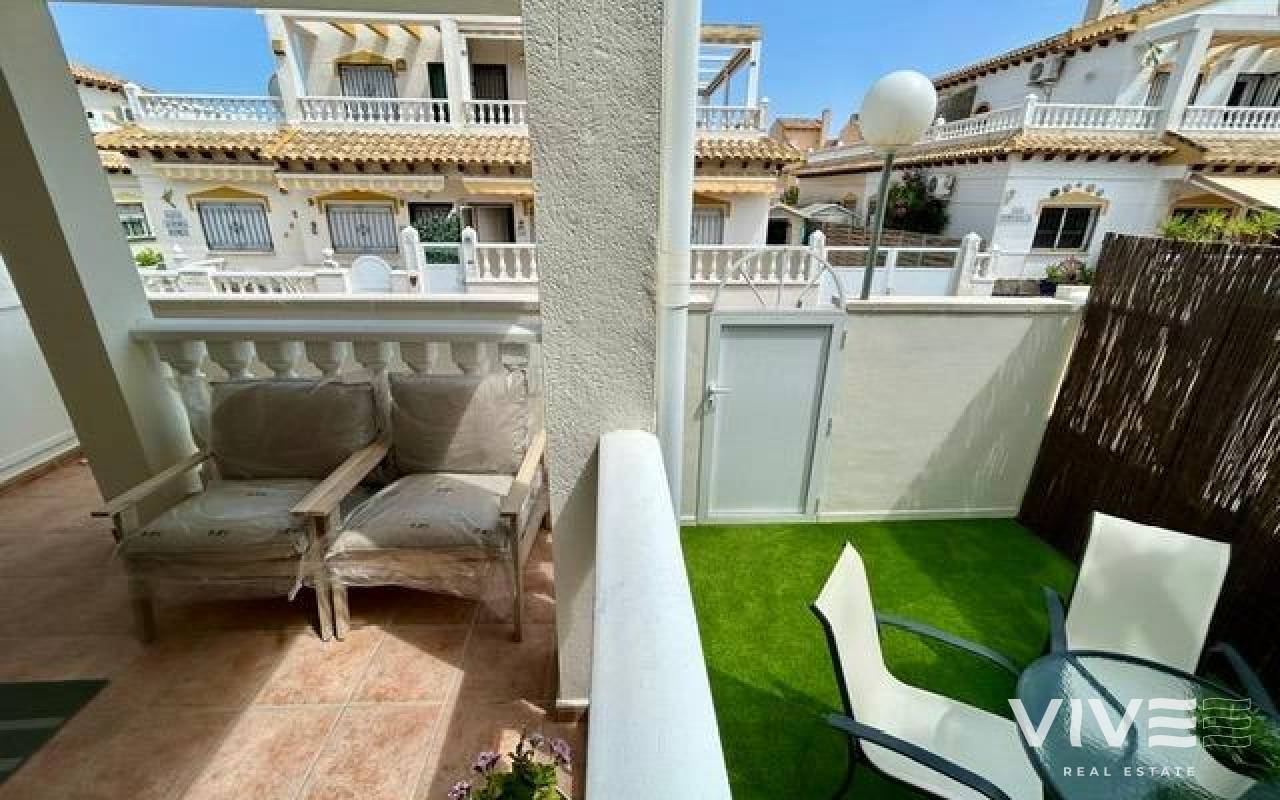 Completamente reformada casa adosada ubicada en la tranquila comunidad de Los Naranjos, en Los Altos. La vivienda ha sido completamente renovada y se encuentra en estado impecable, lista para entrar a vivir. Con la superficie construida de 83m2, consta de tres dormitorios y dos baños completos, salón -comedor, cocina independiente, porche delantero cubierto. La cocina equipada con todos los electrodomésticos modernos, con la zona de lavadero. La vivienda se distribuye en dos plantas y tiene un diseño funcional y moderno. Acceso a la vivienda a través de un jardín privado. En la planta superior se encuentran dos amplios dormitorios dobles, ambos con armarios, y un segundo baño completo con bañera. El dormitorio principal orientado al sur, lo que le proporciona una luz natural durante todo el día. Aire acondicionado instalado en cada estancia. Se vende completamente amueblada, con muebles de calidad y todo lo necesario para entrar a vivir (excepto efectos personales y elementos decorativos). Residencial ofrece una preciosa piscina comunitaria, y la vivienda se sitúa en una calle muy tranquila, con fácil aparcamiento y entorno agradable. A solo 400 metros esta el supermercado Consum, varios restaurantes, a 15 minutos andando del centro comercial Punta Marina. La Playa de Punta Prima esta a 2 km.~~El precio de venta no incluye el impuesto (ITP- tipo vigente según comunidad autónoma)