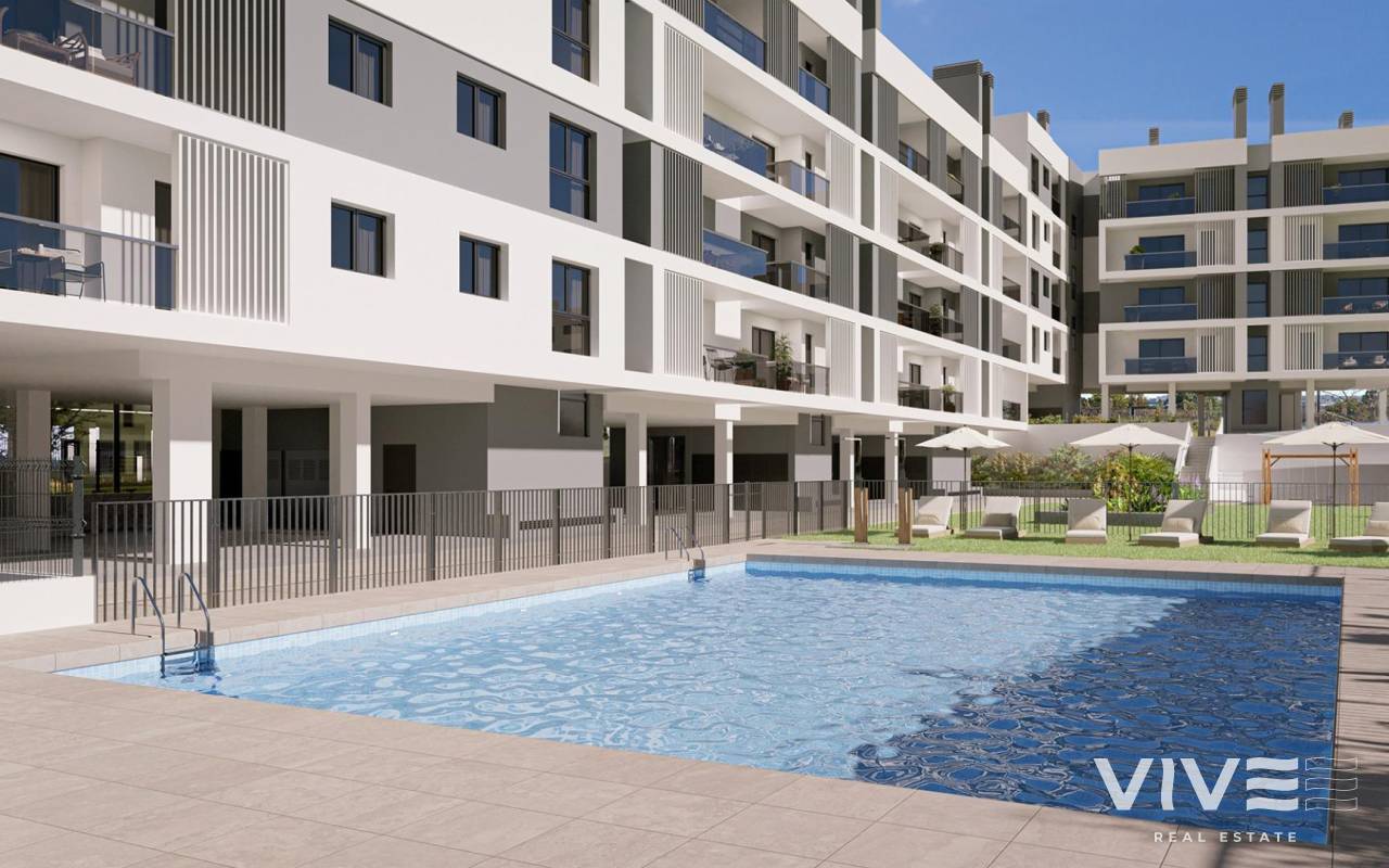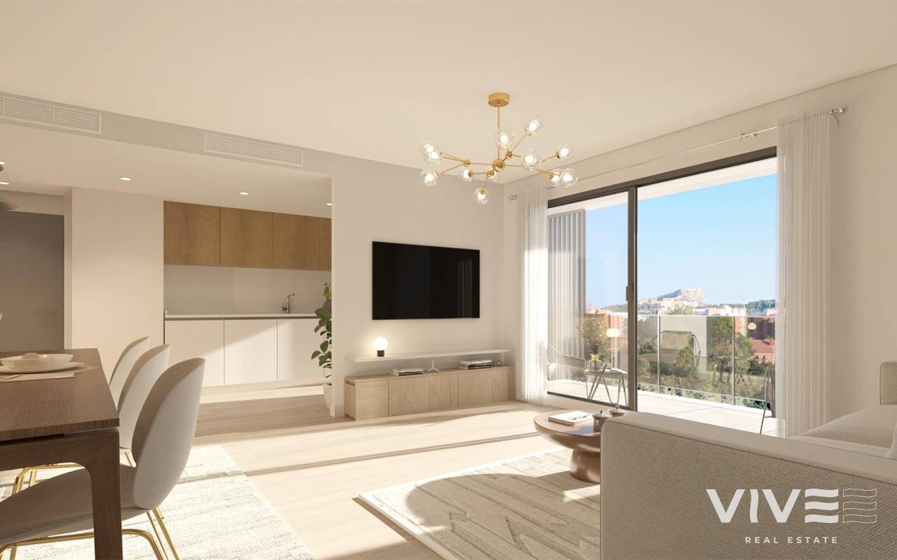 Residencial de nueva construcción en San Agustín, Alicante, con impresionantes vistas a la ciudad La casa de sus sueños en una ubicación privilegiada con vistas panorámicas Descubra su nuevo hogar en el codiciado barrio de San Agustín de Alicante, donde la vida moderna se encuentra con paisajes pintorescos. Este exclusivo complejo residencial, situado cerca de Pau II, ofrece 48 apartamentos bellamente diseñados con 2 ó 3 dormitorios. La comunidad cuenta con una piscina compartida, exuberantes jardines, e incluye una plaza de garaje y trastero para mayor comodidad. Servicios exclusivos para un estilo de vida confortable Disfrute de una serie de servicios diseñados para mejorar su calidad de vida. Nueve áticos del complejo cuentan con solariums privados accesibles directamente desde los apartamentos, que ofrecen impresionantes vistas de Alicante y del emblemático Castillo de Santa Bárbara. Entre las comodidades adicionales se incluye un aparcamiento seguro para bicicletas, que facilita la adopción de un estilo de vida activo. Su nuevo hogar dispone de calefacción centralizada por aerotermia para una mayor eficiencia energética y confort durante todo el año, con aire acondicionado integrado (frío/calor) distribuido por conductos. La carpintería de PVC o aluminio de alta calidad con aislamiento térmico y acústico garantiza un entorno tranquilo y climáticamente eficiente. Convenientemente conectado con todo lo que necesitas Situada entre Gran Vía y Vía Parque, la promoción ofrece una excelente conectividad con el centro de la ciudad y las principales vías de comunicación como la autopista A7. La céntrica ubicación es ideal para familias y profesionales, con nueve instituciones educativas de todos los niveles muy cerca. Para las necesidades diarias, encontrará cerca cuatro grandes supermercados y el Centro Comercial Isla de Corfú, que ofrece gimnasios, restaurantes y una gran variedad de tiendas. Todo lo que necesita está a poca distancia, lo que le permite dejar su coche en casa. Un barrio rico en accesibilidad y belleza natural El barrio de San Agustín se asienta sobre una suave colina, ofreciendo vistas panorámicas del perfil de la ciudad, el Monte Benacantil y las montañas circundantes. El clima mediterráneo de Alicante hace que la vida al aire libre sea un placer durante todo el año, con un montón de espacios verdes y opciones de ocio cerca. Distancias clave: Centro de Alicante: 2 km Aeropuerto Alicante-Elche: 14 km Playa de San Juan: 6 km Campo de golf de Alicante: 7 km Puerto de Alicante: 5 km Experimente lo mejor de la vida alicantina El excepcional clima de Alicante, su vibrante cultura y sus excelentes infraestructuras la convierten en una de las ciudades españolas más deseadas para vivir. Esta nueva promoción residencial en San Agustín combina un diseño elegante con una ubicación inmejorable, lo que la convierte en el lugar ideal para su próxima etapa. Póngase en contacto con nosotros hoy mismo para concertar una visita y hacer suya esta casa de ensueño.