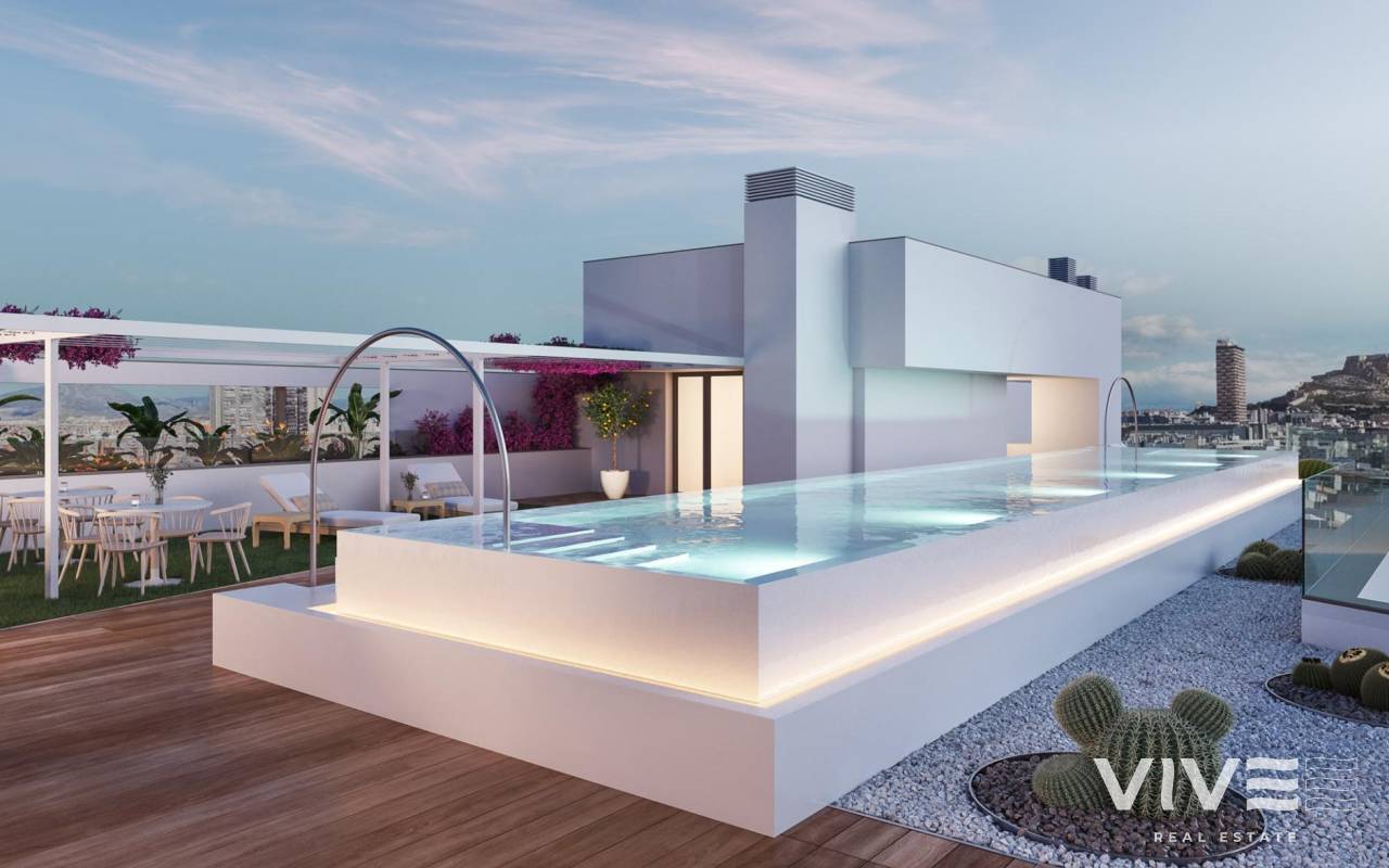 ATICOS DE OBRA NUEVA EN ALICANTE CIUDAD Promoción de 53 apartamentos de obra nueva en Alicante ciudad. Elegantes apartamentos de diseño de 2, 3 y 4 dormitorios con garaje y trastero situados a 10 minutos andando del centro de la ciudad. Todo lo que necesitas a tu alcance. Este edificio cuenta con espectaculares zonas comunes en la azotea, únicas en la ciudad, con increíbles vistas panorámicas sobre el mar Mediterráneo, disfrutarás de piscina, zonas verdes, espacio social , gimnasio y solarium en la azotea con zonas para tomar el sol. Situada en plena Costa Blanca, Alicante es uno de los destinos turísticos más importantes del levante español. Los numerosos campos de golf, junto con las tranquilas aguas del mar Mediterráneo, son parte del atractivo de esta hermosa ciudad portuaria, que se asienta a los pies del Castillo de Santa Bárbara, testigo mudo de las numerosas civilizaciones que se han asentado aquí. El litoral es, sin duda, el lugar de recreo favorito de los alicantinos. El paseo de la Explanada de España, situado frente al puerto, es un animado bulevar salpicado de terrazas y veladores.