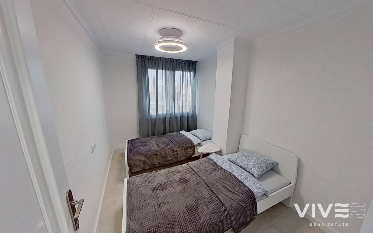 Apartamento Totalmente Reformado con Vistas Laterales al Mar Torrevieja, 235.000 €Descubre este espectacular apartamento de 110 m² construidos en primera línea de la playa de Acequión, con vistas laterales al mar que te harán sentir que cada día es vacaciones. La propiedad se encuentra completamente reformada y lista para entrar a vivir, ofreciendo comodidad y estilo mediterráneo.Características principales de la viviendaSuperficie construida 110 m²Terraza 15 m², ideal para disfrutar del sol y vistas al marDormitorios 3 amplios dormitoriosBaños 2 completosCocina abierta y moderna, integrada con el salón-comedorSalón-comedor luminoso y acogedorPiscina comunitaria para refrescarse en veranoAcceso privado a la playa de Acequión y a 100 metros de la playa de Los NáufragosTotalmente reformado, listo para entrar a vivirUbicación y serviciosA pasos de supermercados, farmacias, restaurantes, bares y centros comercialesFácil acceso al aeropuerto de Alicante (aprox. 40 minutos)Entorno seguro, tranquilo y muy bien comunicadoCalidad de vida en TorreviejaPlayas de aguas cristalinas y bandera azulPaseo Marítimo, puerto deportivo y oferta culturalParque Natural de las Lagunas de La Mata y Torrevieja a pocos minutosClima mediterráneo con más de 300 días de sol al añoCiudad ideal tanto para residir todo el año como para disfrutar de vacacionesEste apartamento combina ubicación privilegiada, diseño moderno y confort. Una oportunidad única para vivir frente al mar con todas las comodidades y servicios a tu alcance.IBI 310 €COMUNIDAD 480 €