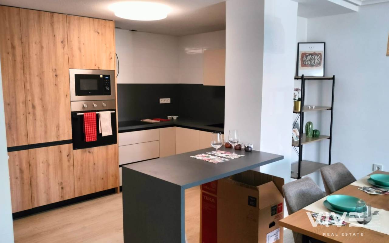 Apartamento en planta baja, totalmente reformado a fondo y listo para estrenar en La Zenia (Orihuela Costa). Dispone de 67,8 m² de vivienda y 12,2 m² de terraza (80 m² totales), 2 dormitorios y 1 baño. Se entrega amueblado, con iluminación, cuadros, toallas y textiles. Residencial tranquilo con 2 piscinas comunitarias y zonas verdes cuidadas.