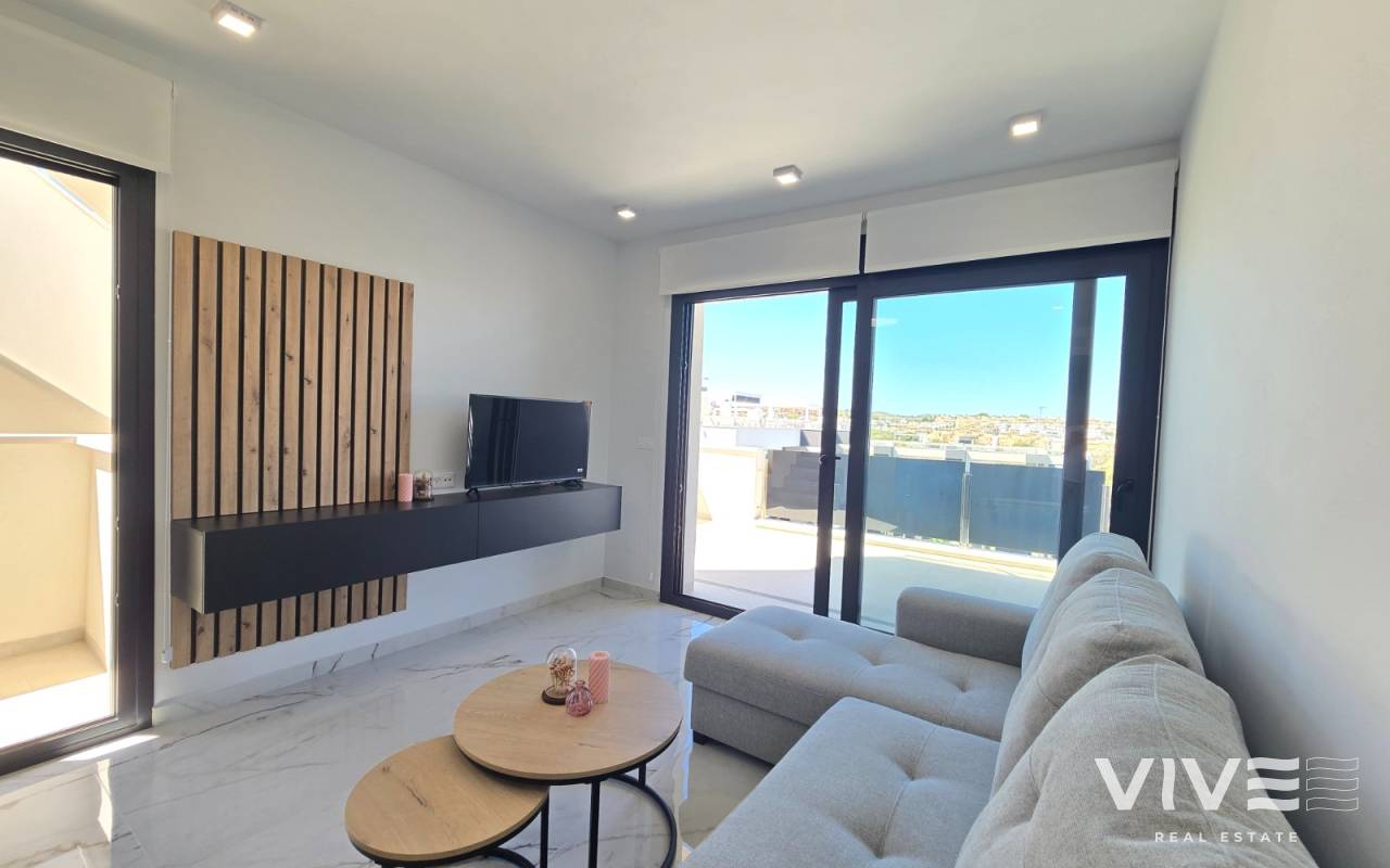 Descubra este exclusivo ático listo para entrar a vivir en la soleada Los Altos, una de las zonas más codiciadas de Orihuela Costa. Este apartamento a estrenar ofrece una combinación perfecta de comodidad, estilo y lujosas comodidades, ideal como residencia permanente, vivienda vacacional o inversión. Distribución y comodidad · 2 amplios dormitorios con armarios empotrados · 2 modernos cuartos de baño con acabados de alta calidad y calefacción por suelo radiante · Totalmente amueblado, decorado con estilo hasta el último detalle · Sala de estar abierta con acceso directo a la terraza Disfrute de un control total de la climatización gracias al sistema de aire acondicionado Air-Zone, que le permite regular cada estancia por separado: ¡siempre el clima interior perfecto! Espacio exterior y extras · Gran terraza privada con magníficas vistas · Solárium privado, ideal para relajarse o disfrutar del sol con total privacidad · Plaza de garaje privada y trastero incluidos Instalaciones residenciales · Piscina comunitaria · Moderno gimnasio (GYM) Este ático está situado en una moderna residencia con una arquitectura contemporánea y acabados de alta calidad, a un paso de tiendas, restaurantes y las hermosas playas de Orihuela Costa. Suma: aún por asignar. Gastos de comunidad: aún por asignar.