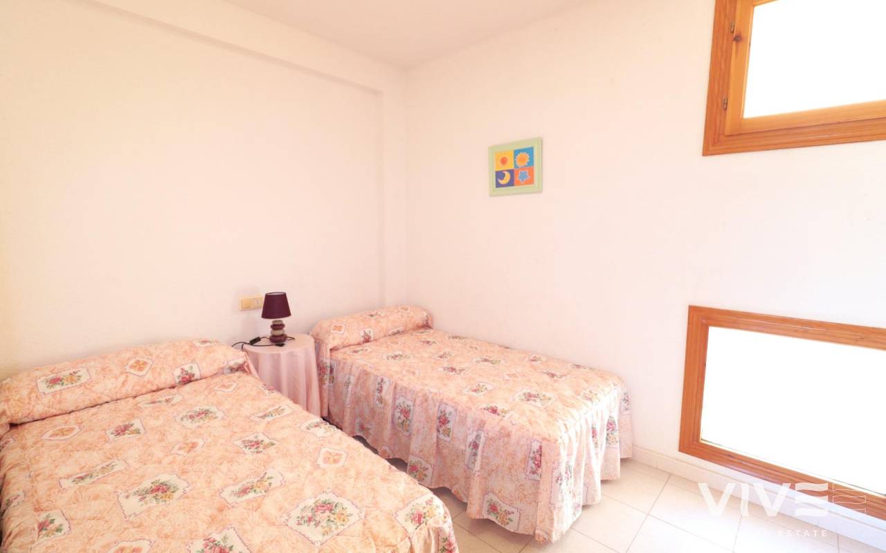 Apartamento en Torrevieja zona Mar Azul, 67 m2 de superficie, a 150 m. de la playa, 2 dormitorios dobles, un baño, propiedad en Buen estado, cocina equipada. Piscina comunitaria.~Extras: armarios empotrados, ascensor, balcón, jardín, muebles, terraza, autobuses, centros comerciales, colegios, costa, supermercados, urbanización, vistas al mar, vistas despejadas~
