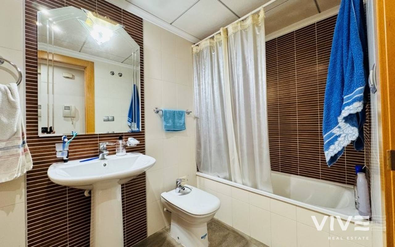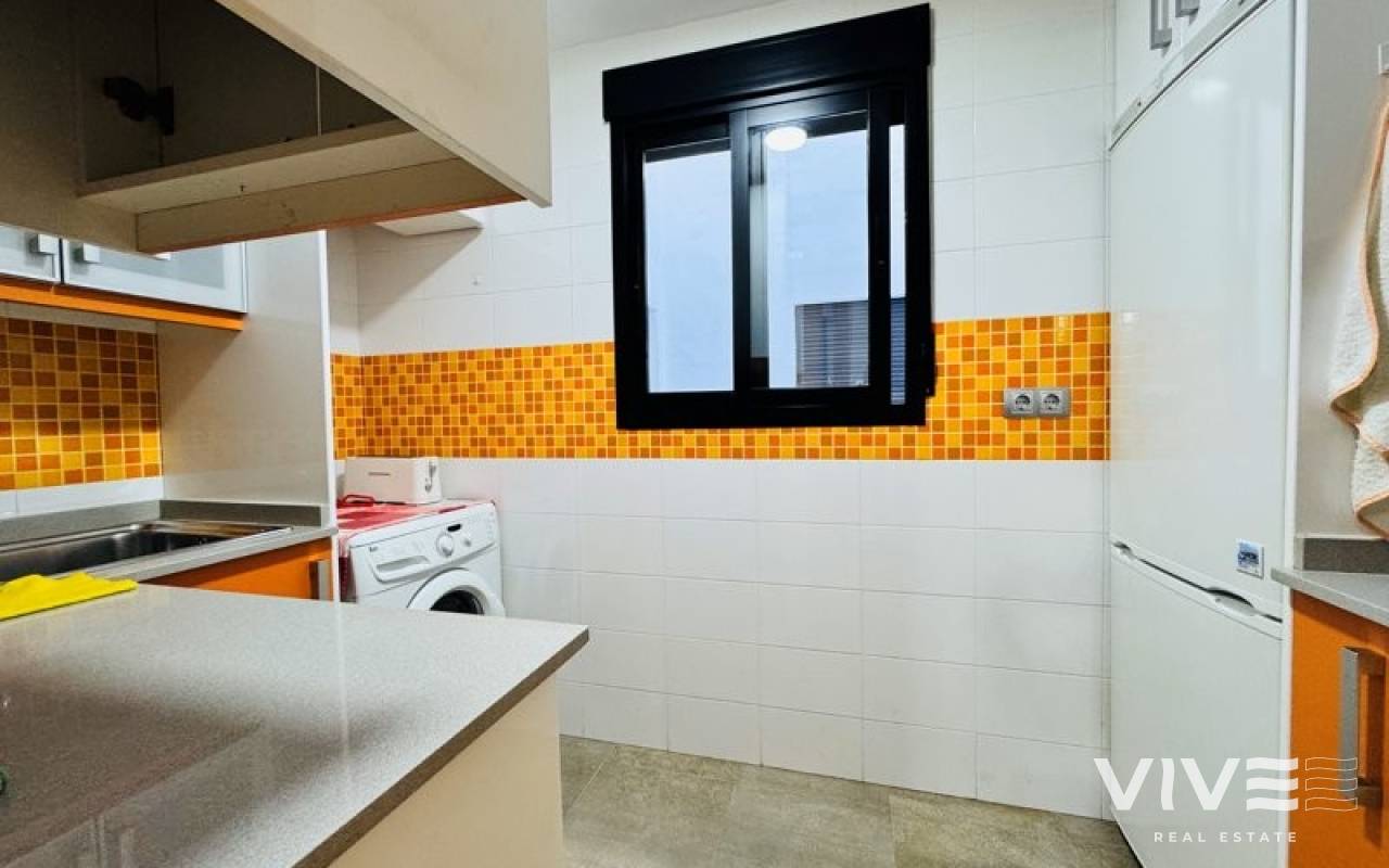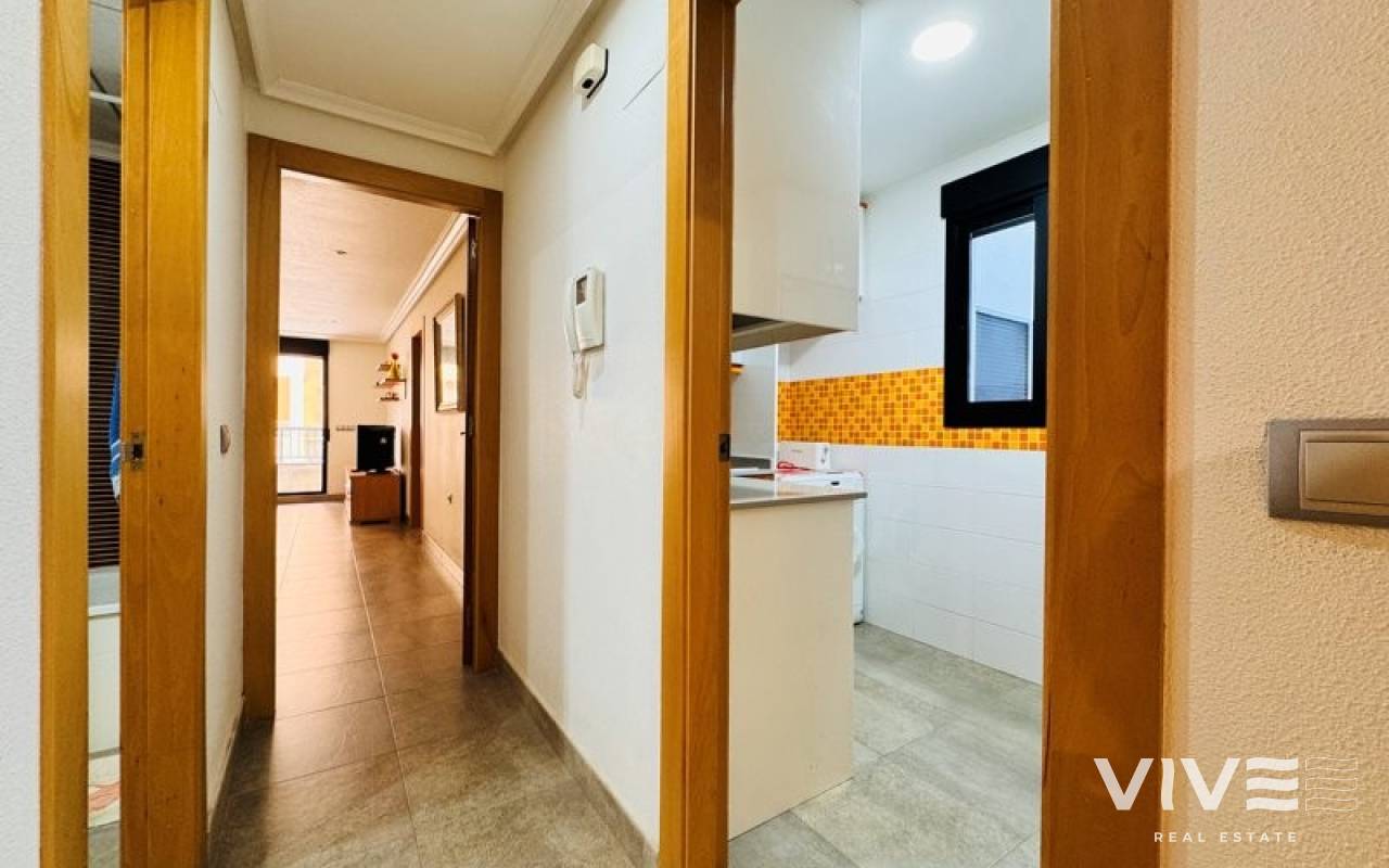 Es un apartamento situado en el centro de La Mata, junto a todos los servicios y a tan solo 100 m de la playa. Tiene una superficie de 58 m2 distribuidos en cocina independiente, salón comedor, 2 dormitorios y un baño. Terraza con orientación SUR de 8 m2 y vistas laterales al mar. Es una 1ª planta con ascensor y se vende semi-amueblado. Edificio del año 2007 Comunidad: 300 € al año IBI: 218 €
