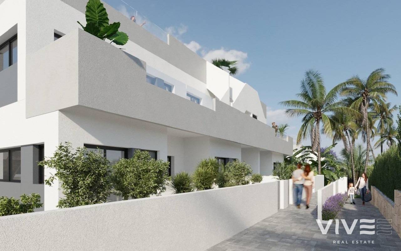Complejo residencial de nueva construcción en Los Balcones, Torrevieja Viviendas modernas en una ubicación privilegiada Esta exclusiva promoción nueva en Los Balcones, Torrevieja, consta de 20 modernos bungalós, perfectamente diseñados para ofrecer comodidad y estilo. Situado a solo 4 km de las playas de Torrevieja y cerca de tiendas, restaurantes y servicios esenciales, este proyecto ofrece un entorno ideal tanto para vivir de forma permanente como para pasar las vacaciones en la Costa Blanca. Los Balcones es una de las zonas residenciales más cotizadas de Torrevieja, que ofrece un ambiente tranquilo a solo unos minutos en coche del animado centro de la ciudad. La zona cuenta con supermercados, servicios locales y el hospital público, con conexiones regulares de autobús a la ciudad. Distribuciones de las propiedades que se adaptan a su estilo de vida Bungalows en planta baja: 3 dormitorios y 3 baños, incluyendo un dormitorio principal con baño en suite en la planta principal, salón-comedor diáfano con cocina, aseo de invitados y amplia terraza. Una escalera conduce a la planta baja, con 2 dormitorios adicionales, 2 baños, lavadero y patio. Bungalows en la planta superior: 2 dormitorios, 2 baños, cocina abierta con amplia zona de estar, terraza y solárium privado, perfecto para disfrutar del sol del Mediterráneo. Todas las viviendas incluyen plazas de aparcamiento privadas. Acabados de alta calidad y características de confort Todos los bungalows han sido diseñados con las mejores especificaciones para garantizar el máximo confort: Puerta de entrada blindada y persianas motorizadas de aluminio Ventanas de doble acristalamiento con control solar Aire acondicionado por conductos totalmente instalado Sistema de agua caliente aerotérmico Cocina equipada con electrodomésticos Iluminación LED interior y exterior Baños con muebles, espejos y mamparas de ducha Sistema de alarma con detectores y unidad central Servicios comunitarios exclusivos El complejo residencial cuenta con hermosos jardines, una piscina comunitaria de dos niveles y un gimnasio totalmente equipado, creando el entorno perfecto para relajarse y socializar. Excelente conectividad en la Costa Blanca La urbanización goza de excelentes conexiones de transporte: Playas: 4 km Aeropuerto de Alicante: 55 km (40 minutos) Aeropuerto de Murcia: 65 km (1 hora) Campo de golf Villamartín: 9 km Puerto deportivo de Torrevieja: 5 km Su nueva casa en Torrevieja le espera Con su diseño moderno, acabados de alta calidad y ubicación privilegiada, este complejo residencial en Los Balcones es la elección perfecta para una nueva vida junto al Mediterráneo. Póngase en contacto con nosotros hoy mismo para concertar una visita y asegurarse la propiedad de sus sueños en Torrevieja. El aeropuerto de Alicante se encuentra a 40 minutos y el de Murcia a una hora.
