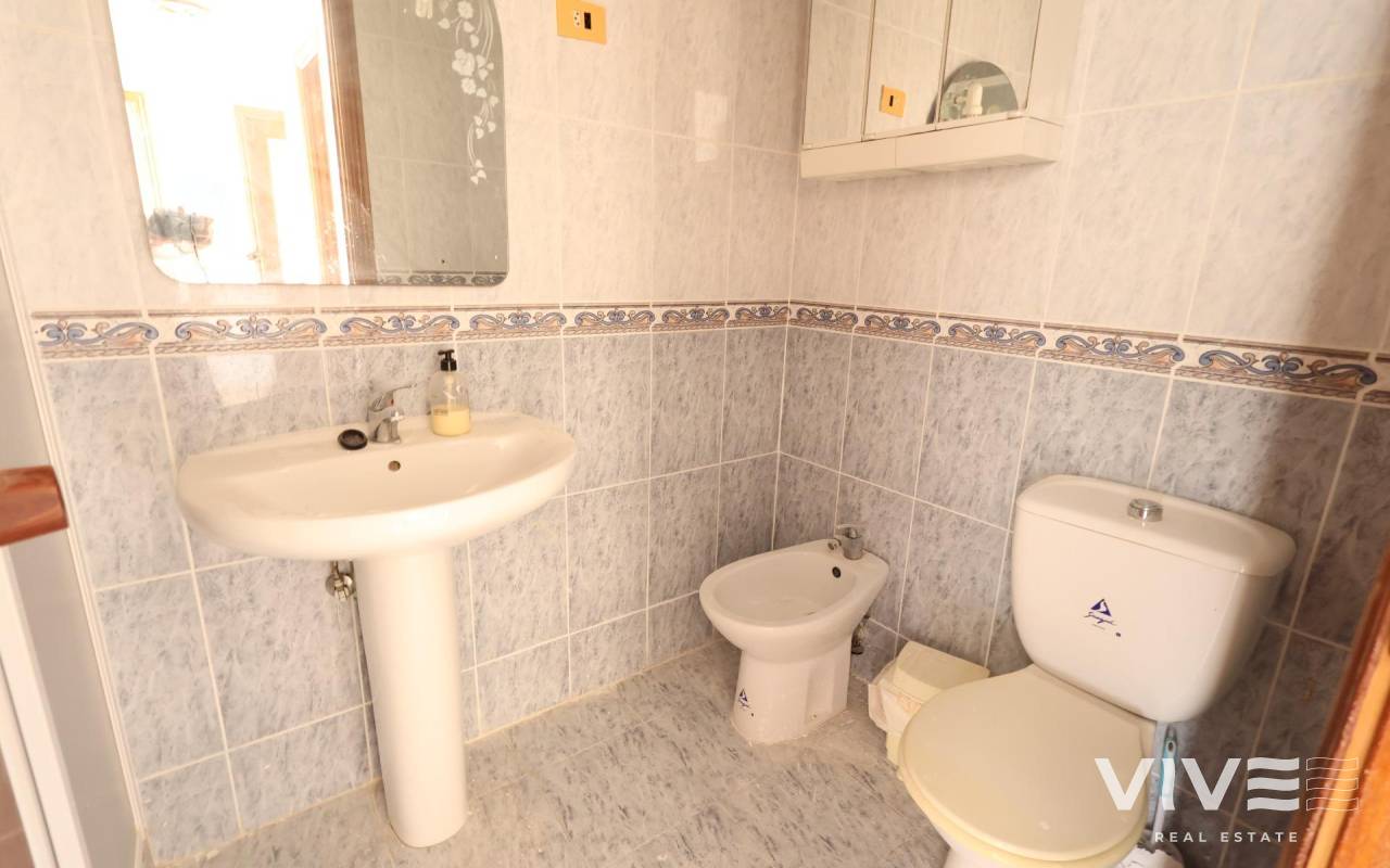Punta Prima Apartamento en cuarta planta con ascensor, orientado al sur y ubicado frente a la piscina comunitaria, a tan solo 300 metros de la playa.. . Con una superficie de aproximadamente 70 m2, esta vivienda es ideal tanto para inversores como para quienes desean reformar y personalizar su hogar a su gusto. Dispone de 2 dormitorios con acceso directo a la terraza, un baño completo, un aseo, cocina americana y un luminoso salón-comedor también con salida a la terraza.. . Además, incluye plaza de garaje en el mismo edificio. Una excelente oportunidad en una de las zonas más demandadas de la costa.