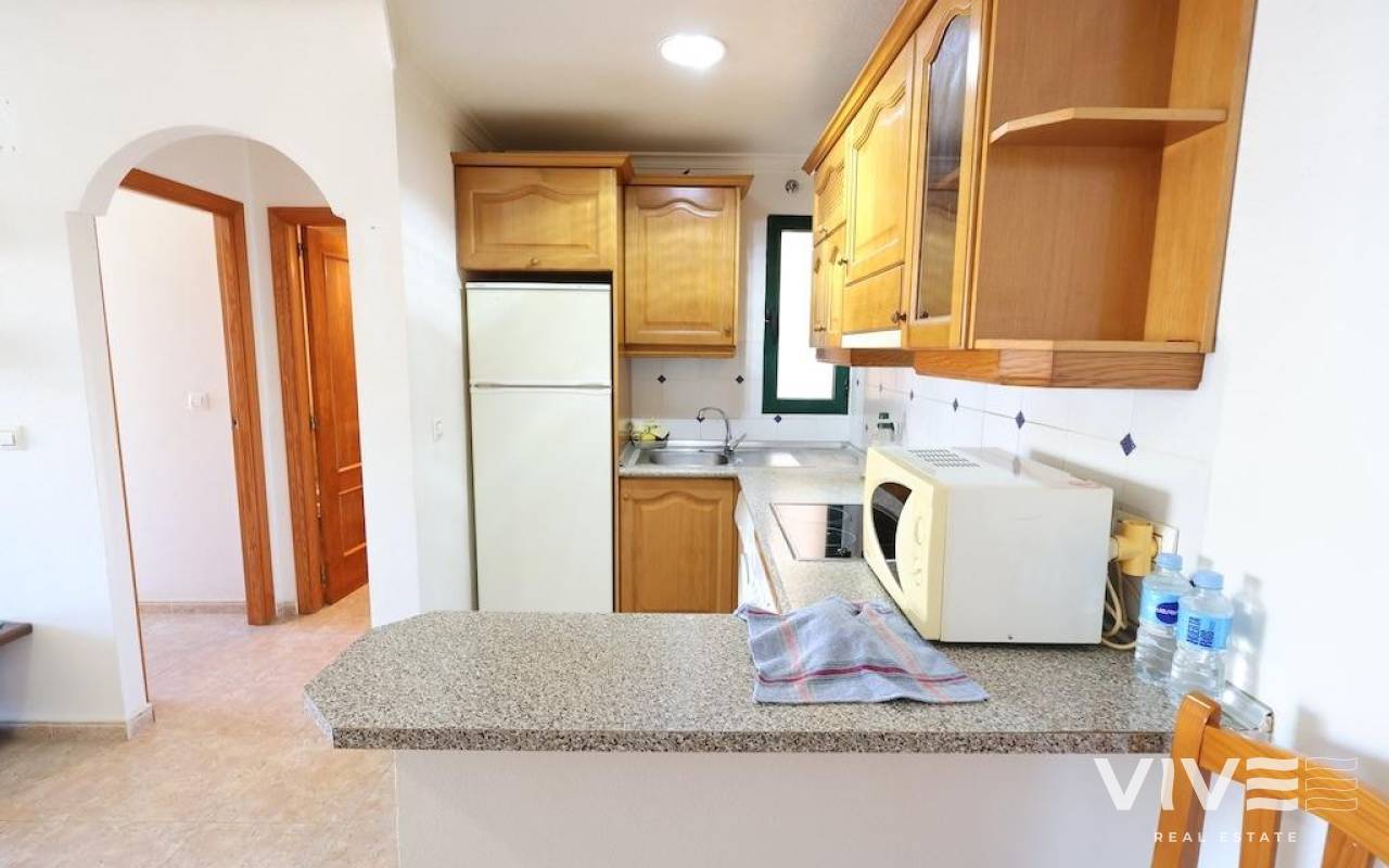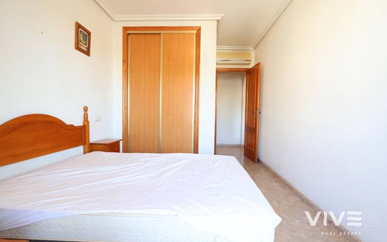 Residencial Aguamarina Apartamento en planta 2ª con garaje. . Acogedor apartamento en segunda planta con una superficie de 56 m2, ubicado en el exclusivo Residencial Aguamarina. La vivienda dispone de 2 dormitorios, un baño completo, cocina americana y un luminoso salón-comedor con acceso a una amplia terraza, a la que también se accede desde el dormitorio principal.. . Se vende amueblado, equipado con aire acondicionado, e incluye plaza de garaje subterráneo. Perfecto tanto como residencia vacacional como para vivir todo el año, en una zona muy demandada de la costa.