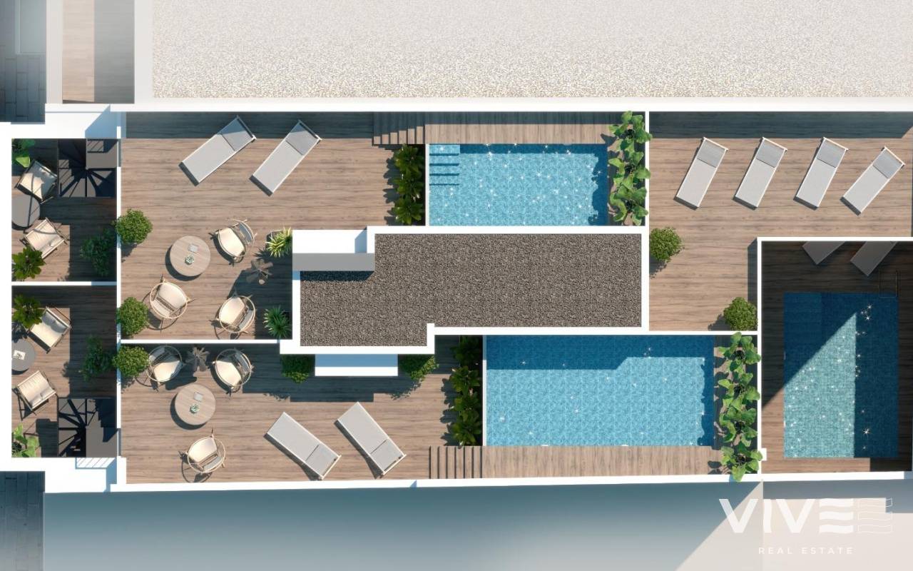 Apartamentos de nueva construcción en el corazón de Torrevieja A tan solo 150 m de las piscinas naturales y el paseo marítimo y a 500 m de la Playa del Cura Ubicación privilegiada en el centro de Torrevieja Este nuevo edificio residencial goza de una ubicación inmejorable en el centro de Torrevieja, a solo 150 m del mar. Rodeado de tiendas, supermercados, restaurantes y servicios cotidianos, ofrece todo lo necesario a poca distancia. La zona también cuenta con parques, zonas de ocio y áreas verdes, creando un equilibrio perfecto entre las comodidades urbanas y los momentos de relax. Viviendas modernas de 1 y 2 dormitorios La promoción ofrece una selección de apartamentos de 1 y 2 dormitorios con 1 o 2 baños, incluyendo 2 áticos con solarium, barbacoa y piscina privada. Cada vivienda está diseñada con un estilo contemporáneo, con distribuciones diáfanas, terrazas y cocinas integradas de estilo americano. Los baños están totalmente equipados con muebles, mamparas de ducha y calefacción por suelo radiante. Iluminación incluida. Las cocinas incluyen electrodomésticos y cada apartamento cuenta con preinstalación para aire acondicionado por conductos. Zonas comunes La planta baja cuenta con una piscina comunitaria y una sauna. En la azotea hay un solarium comunitario para poder tomar el sol. Vivir en un entorno natural y costero único Torrevieja es conocida por su cálido clima mediterráneo, con una temperatura media anual de 20 ºC, lo que la convierte en un lugar perfecto para vivir durante todo el año. La ciudad es famosa por sus lagunas salinas naturales y el Parque Natural protegido de La Mata y Torrevieja, situado a solo 4 km de la urbanización. Sus lagos rosados y verdes, sus pintorescas rutas de senderismo y su rica biodiversidad ofrecen un estilo de vida saludable e inspirador. Distancias a puntos de interés clave Puerto deportivo de Torrevieja 1 km Parque Natural de La Mata 4 km Villamartin Golf 8 km Aeropuerto de Alicante 45 km Aeropuerto de Murcia 60 km Experimente el estilo de vida mediterráneo No pierda la oportunidad de adquirir una vivienda moderna en una de las ciudades costeras más deseadas de la Costa Blanca. Póngase en contacto con nosotros hoy mismo para concertar una visita y asegurarse su lugar en esta excepcional nueva promoción.