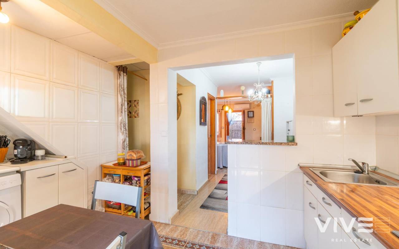Descubre este acogedor adosado ubicado en la deseada zona de Los Balcones en Torrevieja. Con una superficie construida de unos 60 m2 incluyendo la ampliación de la cocina, esta propiedad es perfecta para disfrutar del sol y el confort mediterráneo gracias a su orientación sur.. . Ofrece una amplia terraza privada de 30 m2, ideal para relajarte o compartir momentos inolvidables con amigos y familiares.. . En la planta baja encontrarás un luminoso salón comedor perfecto para tus reuniones sociales, junto a una cocina funcional y aseo adicional.. . En la primera planta se sitúan dos dormitorios, cada uno cuenta con acceso a su propia terraza donde podrás contemplar las vistas al entorno natural que rodea tu nuevo hogar.. . Además, dispone de piscina comunitaria y podrás aparcar tu coche dentro de la parcela si lo deseas.. . Ubicada estratégicamente cerca del mar (solo a 1500 metros) así como servicios esenciales como colegios, hospitales y centros comerciales, esta vivienda te ofrece tanto tranquilidad como comodidad diaria.. . Viene completamente amueblada lista para entrar a vivir: solo trae tus maletas!. No pierdas la oportunidad única de adquirir este encantador refugio costero.