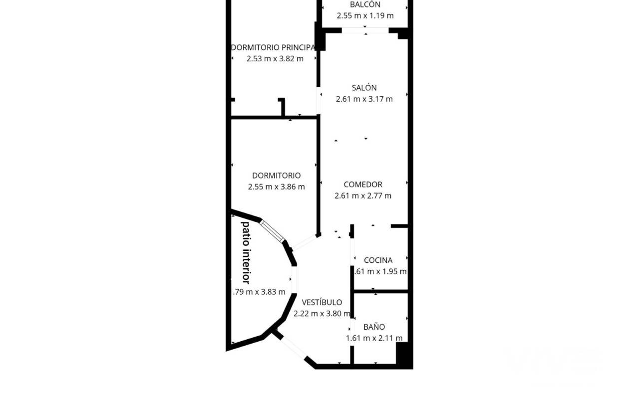 El apartamento cuenta con una superficie construida de 49,3 m². A esta superficie se suman un patio interior de más de 6 m² y un balcón de aproximadamente 3 m², espacios exteriores ideales para disfrutar del clima mediterráneo durante todo el año.