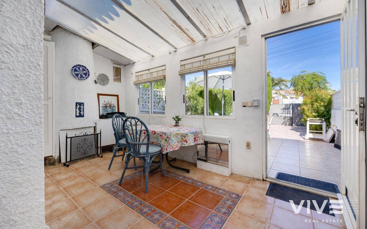 Se vende encantadora vivienda adosada con 200 m² de parcela y 60 m² construidos, situada en una zona tranquila y muy cercana a la playa y a todos los servicios.La vivienda cuenta con una excelente distribución, aprovechando al máximo cada espacio. Dispone de 2 amplias habitaciones, 1 baño completo, un luminoso salón-comedor y una cocina funcional y bien equipada.En el exterior, podrás disfrutar de una acogedora parcela delantera, ideal para relajarse o disfrutar de agradables veladas al aire libre. Además, la propiedad incluye un solárium privado, perfecto para tomar el sol y contemplar las vistas.La casa se encuentra en muy buenas condiciones, lista para entrar a vivir y disfrutar de un entorno tranquilo, soleado y con fácil acceso a la playa y a todas las comodidades que ofrece la zona.✨ Una oportunidad perfecta tanto como residencia habitual como para disfrutar de tus vacaciones junto al mar.