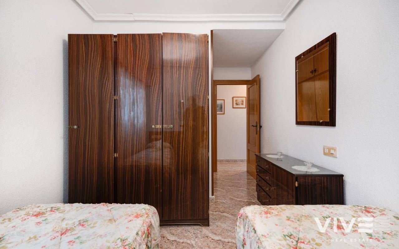 Este maravilloso apartamento a la venta se encuentra en el centro de Guardamar del Segura, una localidad costera muy conocida por sus playas de arena dorada y su ambiente tranquilo y acogedor. La propiedad goza de una ubicación inmejorable, a tan solo 750 metros del mar, lo que te permitirá disfrutar de un agradable paseo hasta la playa en pocos minutos. Además, está rodeado de todos los servicios esenciales, como supermercados, tiendas, restaurantes, colegios y centros médicos, lo que convierte a este apartamento en una opción ideal para vivir todo el año o para disfrutar de unas vacaciones relajadas.Con una distribución funcional y moderna, el apartamento cuenta con un total de 4 amplias habitaciones, lo que lo convierte en una opción perfecta para familias. Las habitaciones están diseñadas para ofrecer confort y privacidad, y cada una de ellas disfruta de una excelente luminosidad. Los 2 baños, completos y bien equipados, están en perfectas condiciones, con acabados de calidad que aseguran funcionalidad y confort. Además, los baños cuentan con ventilación e iluminación natural, creando un ambiente fresco y agradable, y están adaptados para personas con movilidad reducida, garantizando accesibilidad y comodidad para todos los usuarios.Este apartamento dispone de aire acondicionado, lo que te permitirá mantener una temperatura agradable durante todo el año, tanto en invierno como en verano. La vivienda también cuenta con un sistema de alarma instalado para tu mayor seguridad y tranquilidad.El edificio tiene ascensor, lo que facilita el acceso a la vivienda sin importar el piso en el que se encuentre. Además, incluye una plaza de garaje y un trastero, dos comodidades muy apreciadas que aseguran que siempre tengas espacio adicional para almacenamiento y para estacionar tu vehículo con comodidad.La orientación este-oeste del apartamento es otro de sus puntos fuertes, ya que permite aprovechar tanto la luz del sol de la mañana como los atardeceres por la tarde. Esto, junto con la ventilación natural que proporciona la distribución, asegura un ambiente fresco y luminoso durante todo el día.En resumen, este apartamento es una excelente opción para quienes buscan una vivienda espaciosa y cómoda en una ubicación privilegiada, cerca del mar y rodeada de todos los servicios que Guardamar del Segura tiene para ofrecer. No dejes pasar la oportunidad de vivir en este encantador lugar y disfrutar de una vida tranquila y cómoda a tan solo unos pasos de la playa. Además, cuenta con puerta blindada, armarios a medida, y todo lo necesario para convertirlo en tu hogar ideal.