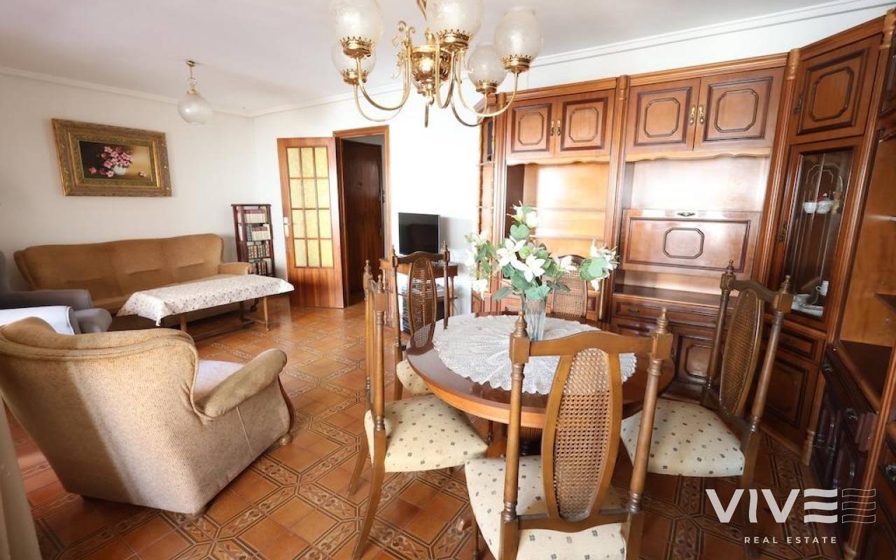 Torrevieja Centro, Calle Azorin apartamento en planta tercera (con ascensor) y orientación Sur, vivienda de 117 m2 con 3 dormitorios, 2 baños, cocina amplia independiente, salón comedor, terraza, la vivienda se vende amueblada y equipada y con aire acondicionado, vistas laterales al mar.. . Posibilidad de comprar un garaje cerca de la vivienda !!