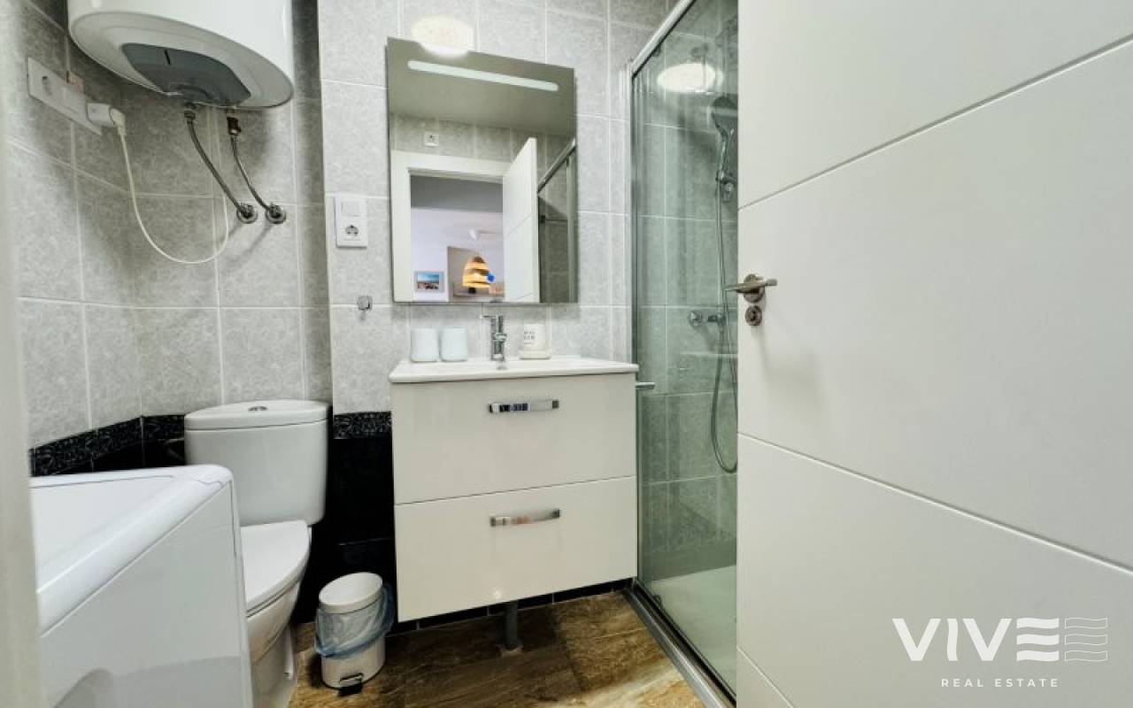Es una vivienda situada en primera línea de playa, con terraza orientada al sur y vistas al mar. Residencial tranquilo, ideal para vivir o venir de vacaciones. Está situada en la urbanización de Puerto Romano, La Mata. Tiene una superficie de unos 56 metros cuadrados, distribuidos en salón comedor, cocina americana, 2 dormitorios, 1 baño completo, terraza y patio interior. La vivienda está situada en la planta baja del edificio. Renovada y en perfecto estado. LICENCIA TURÍSTICA Comunidad: 320 € al año IBI: 175 €
