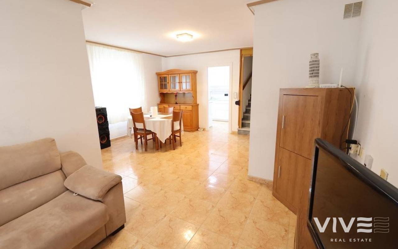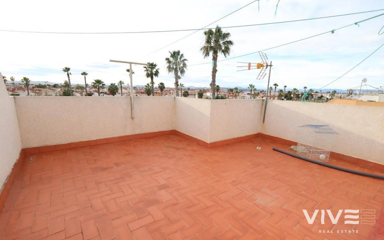 Altos del Limonar Adosado en esquina orientación Sur, con entrada para varios coches, la vivienda dispone de 90 m2 en dos plantas mas solarium de 26 m2, cuenta con 3 dormitorios (todos en la planta de arriba), 2 baños, cocina independiente y un amplio salñon comedor, desde el solarium se ve la piscina comunitaria y las zonas verdes, la vivienda se vende amueblada y con aire acondicionado.