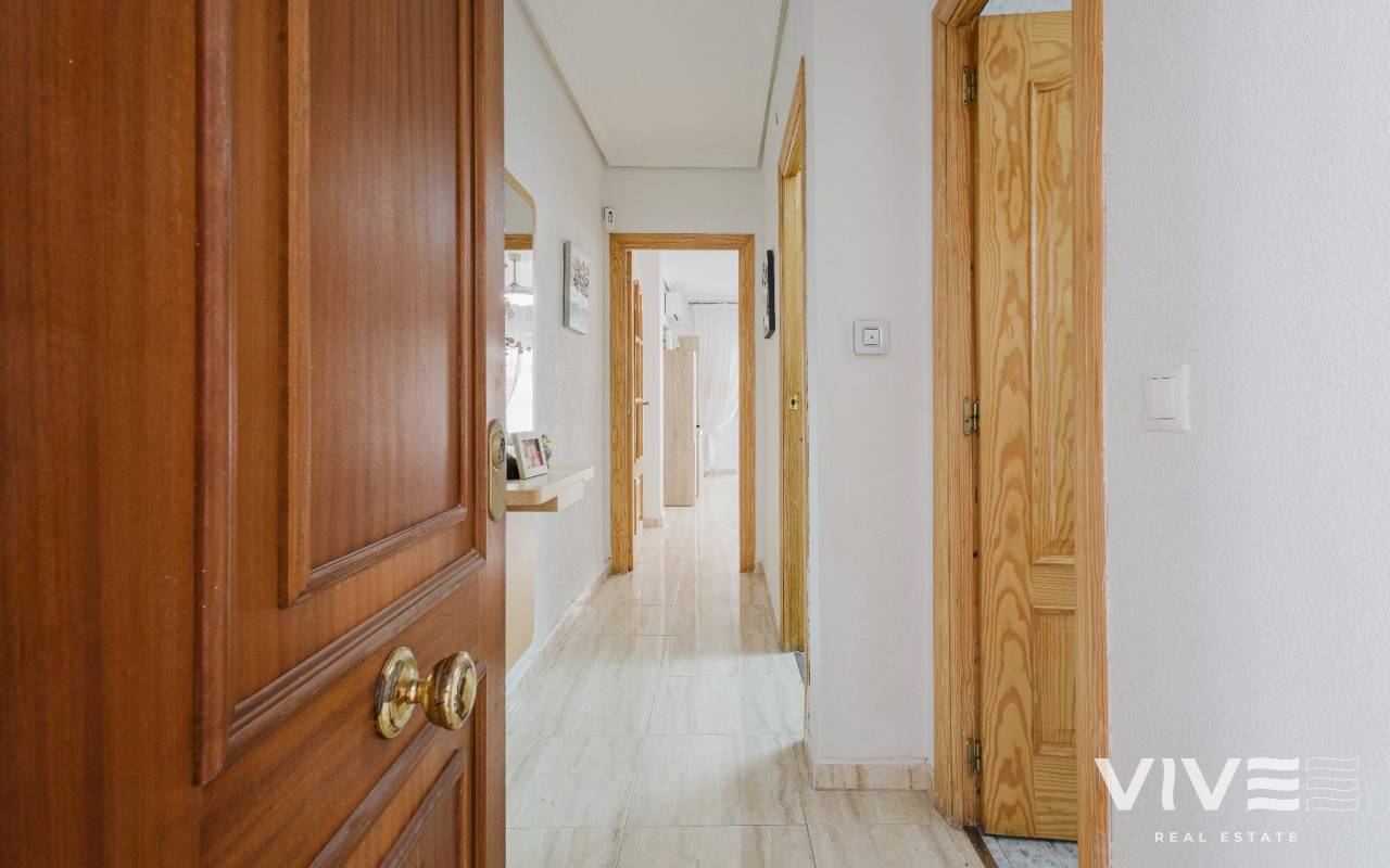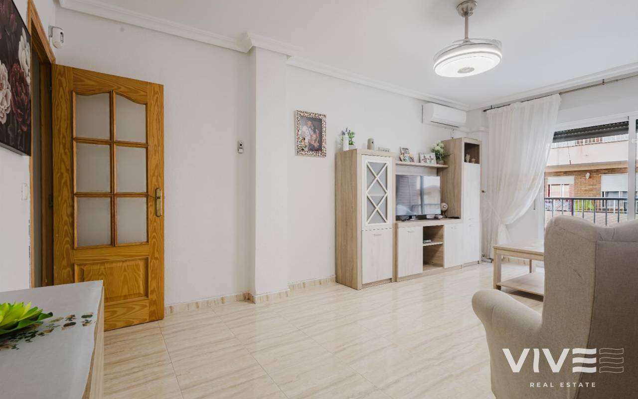 Vivir frente al mar es una forma de entender la vida, y este apartamento en Torrevieja, ofrece justo eso calma, luz natural y una ubicación privilegiada. Una vivienda ideal tanto como residencia habitual, segunda vivienda o inversión en la costa.La propiedad cuenta con 70 m² construidos, se encuentra en buen estado y fue construida en 1982. Gracias a su orientación sur, disfruta de una excelente luminosidad durante todo el día, creando un ambiente cálido y acogedor. Las vistas al mar aportan un valor añadido que marca la diferencia y revaloriza la inversión.Características principales de la viviendaApartamento de 70 m²2 habitaciones1 baño completoCocina independienteTerraza de 7 m²SoláriumOrientación surVistas al marSe vende amueblado y con electrodomésticosUbicada a pocos pasos de supermercados, bares, restaurantes, farmacias y centros comerciales, con todos los servicios a mano. El aeropuerto se encuentra aproximadamente a 45 km, facilitando las conexiones nacionales e internacionales.Precio 159.990 €.IBI anual de 209 €comunidad de 79,03 € trimestralesContáctanos hoy y agenda tu visita. Tu vida junto al mar empieza aquí.