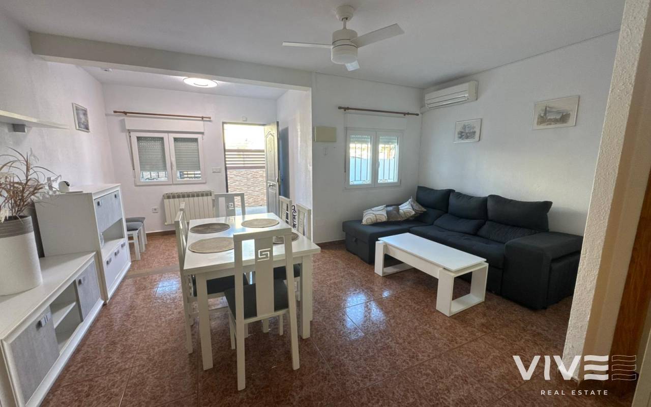 Descubre tu nuevo hogar en Torrevieja, en una zona residencial tranquila y bien conectada, perfecta tanto para vivir todo el año como para disfrutar de tus vacaciones en la costa. Este adosado semireformado combina comodidad, luz natural y el encanto del auténtico estilo de vida mediterráneo.En la parte superior, un agradable solárium privado ofrece vistas despejadas al lago, convirtiéndose en el lugar ideal para relajarte al final del día. Características principales de la vivienda 73 m² construidos distribuidos en dos plantas 2 habitaciones luminosas y bien ventiladas 2 baños completos y funcionales 18 m2 Terraza Solárium privado con vistas al lago Urbanización con piscina y zonas infantilesAdemás, su ubicación estratégica permite un acceso cómodo a los principales puntos de interés de la ciudad y se encuentra a aproximadamente 45 km del Aeropuerto de Alicante. En el entorno inmediato encontrarás restaurantes, bares, farmacias, centros comerciales, supermercadosUna oportunidad ideal para quienes buscan tranquilidad, servicios cercanos y una vivienda lista para disfrutar desde el primer día. Contacta ahora y ven a conocer tu próximo hogar en Torrevieja.