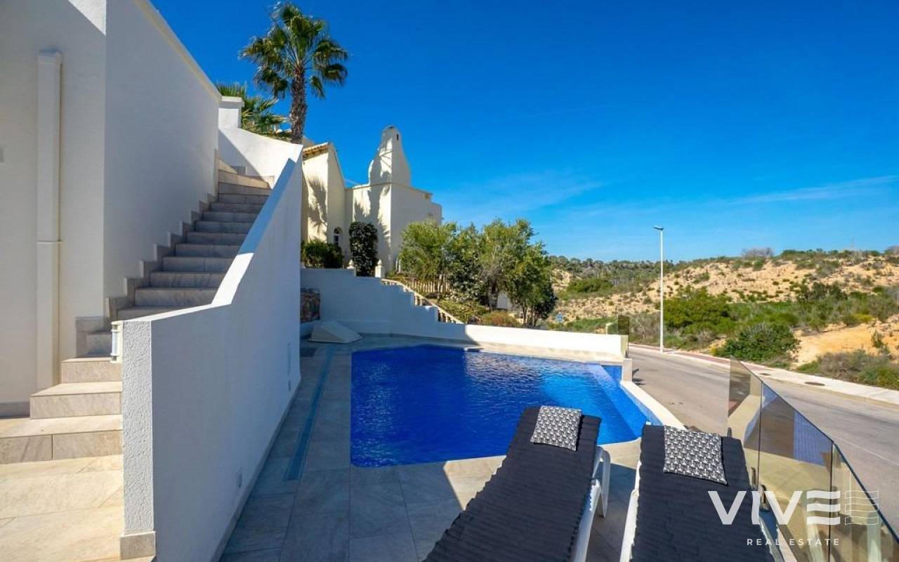 Descubre esta exclusiva villa independiente con piscina infinity, ubicada en la prestigiosa zona de Las Ramblas Golf. Esta espectacular propiedad es perfecta para quienes buscan un hogar donde combinar lujo y tranquilidad. Con sus cuatro amplios dormitorios y tres baños, cada rincón ha sido diseñado pensando en el confort y la funcionalidad. La gran cocina se integra al comedor y salón mediante un concepto abierto que ofrece vistas despejadas al mar, perfecto para disfrutar momentos inolvidables junto a tus seres queridos. El exterior te sorprenderá con una impresionante piscina privada infinita rodeada por exuberante naturaleza; ideal para relajarte mientras contemplas los hermosos paisajes del entorno natural que lo envuelven todo. Además cuenta con dos grandes terrazas: una encantadora terraza situada en planta baja perfecta para reuniones familiares o simplemente tomar el sol, así como otra amplia terraza orientada hacia el sur en la primera planta diseñada especialmente para aprovechar los rayos solares durante todo el año... ¡Y no olvidemos incluir tu barbacoa personal! Se vende completamente amueblada lista para entrar a vivir o como inversión.