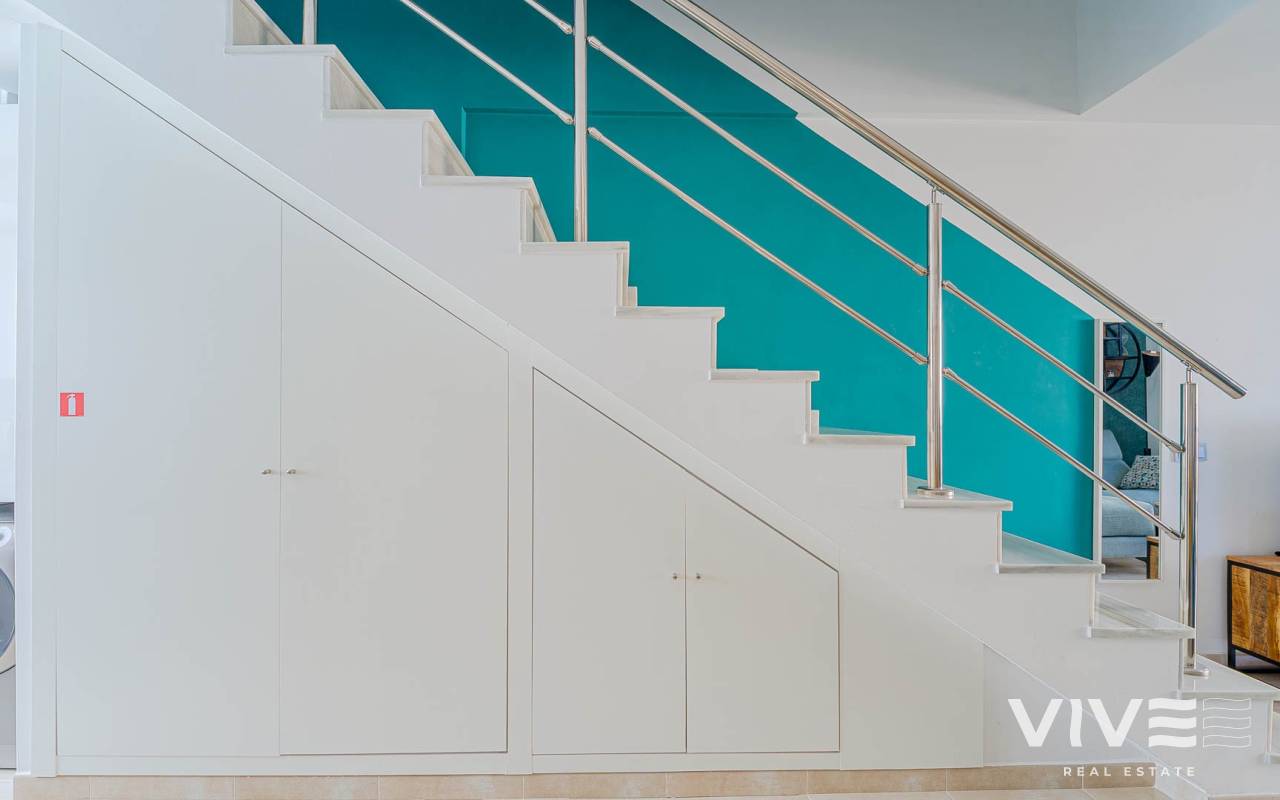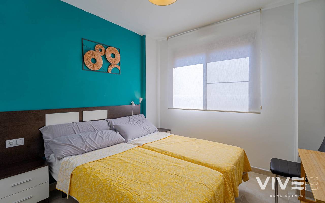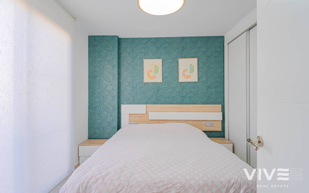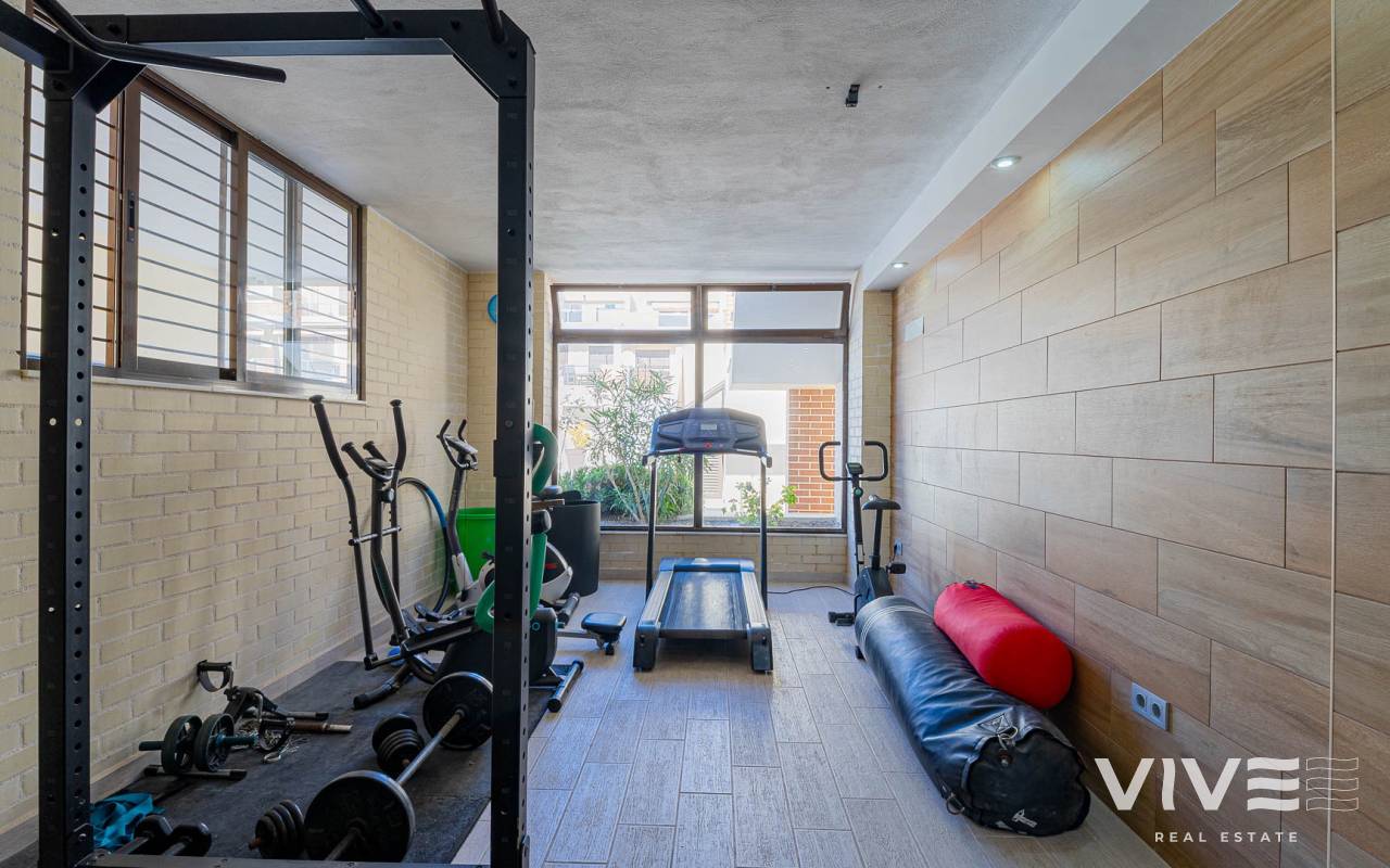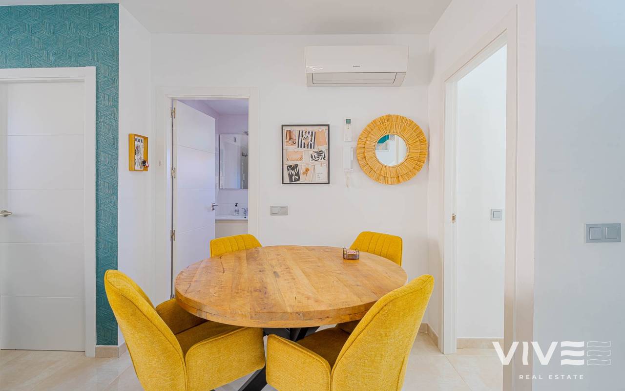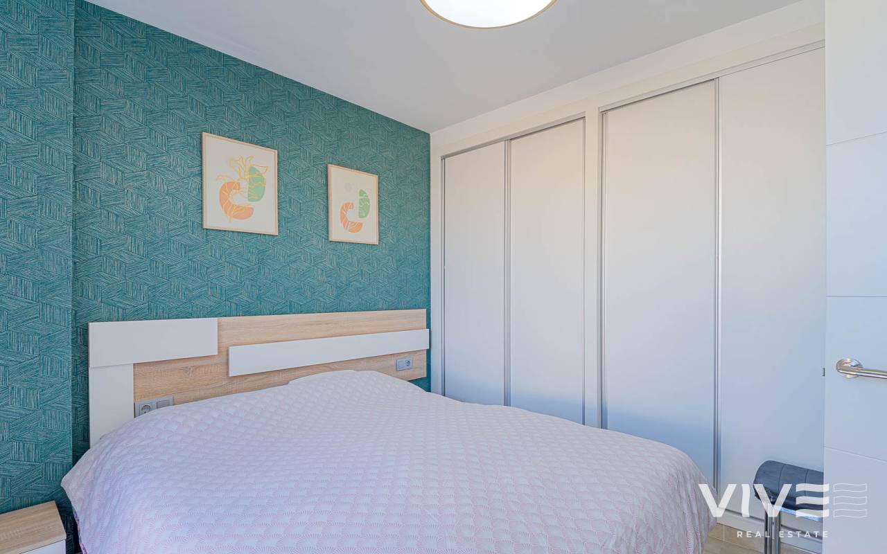 Presentamos este moderno dúplex en venta en Lomas de Cabo Roig, Orihuela Costa (Costa Blanca Sur) — una excelente opción tanto para residencia habitual como para vivienda vacacional o inversión para alquiler. La vivienda cuenta con 81,50 m² construidos más aprox. 50 m² de terrazas, incluyendo una amplia terraza principal y un solárium privado. Situada en la segunda y última planta de un residencial moderno construido en 2015, es considerada una de las mejores ubicaciones dentro del complejo ,es considerada una de las mejores ubicaciones dentro del complejo por su orientación soleada y vistas abiertas. Distribución y Características Planta principal: Luminoso salón-comedor con acceso directo a una amplia terraza (sol de mañana y tarde)Cocina totalmente equipada2 dormitorios1 baño con duchaSistema de alarmaMosquiteras en todas las ventanas Planta superior: Amplio dormitorio principal tipo suite con armarios empotradosSegundo baño con duchaAcceso directo a un solárium privado con sol todo el día y vistas abiertas. El solárium es un espacio ideal para zona chill-out, barbacoa o disfrutar del clima mediterráneo con total privacidad. Zonas Comunes del Residencial Gran piscina comunitariaGimnasioSaunaJacuzziZona spaPlaza de garaje subterránea incluida Ubicación – Cabo Roig, Orihuela Costa Ubicado en una de las zonas más demandadas de la Costa Blanca Sur: A 550 metros de un moderno centro comercial con restaurantes, supermercado y rooftop lounge barMuy cerca de La Zenia BoulevardPlayas de Cabo Roig y Campoamor a unos 15 minutos en bicicletaVarios campos de golf a pocos minutos en cocheTodos los servicios diarios a poca distancia