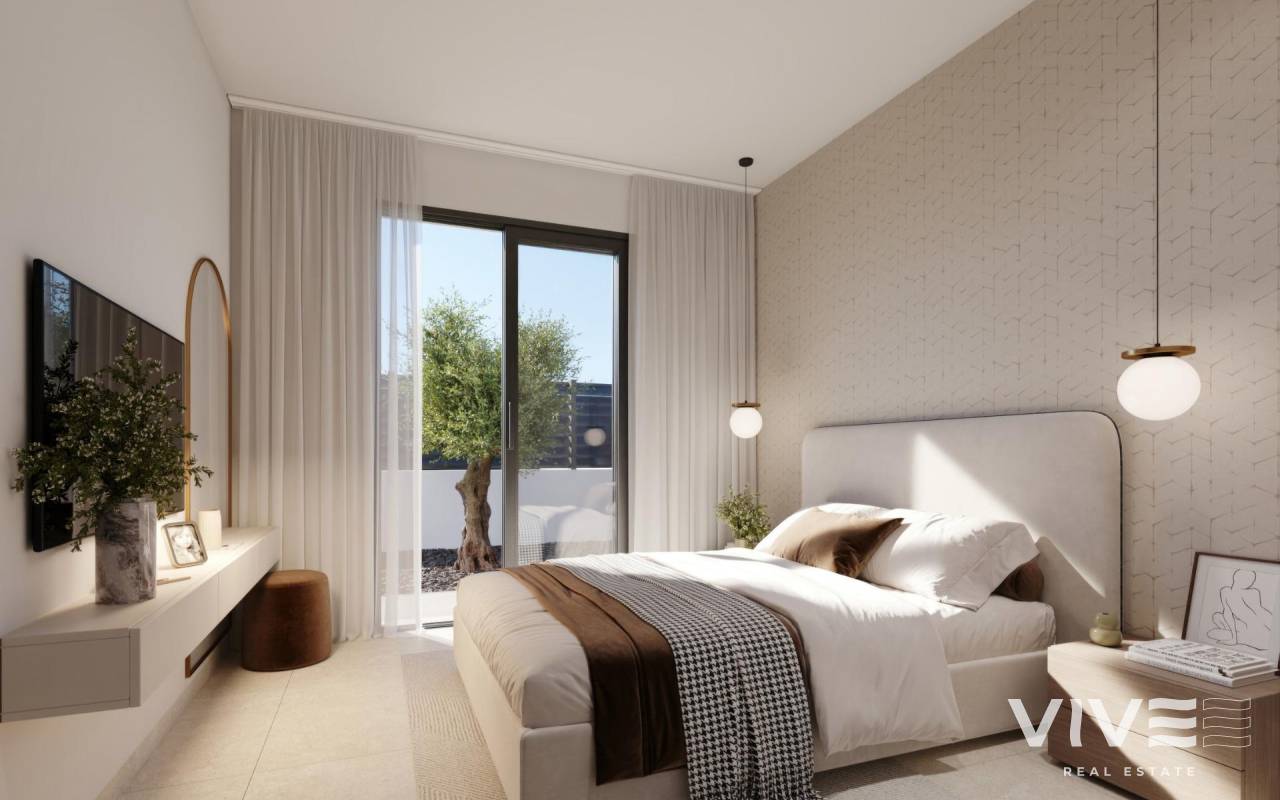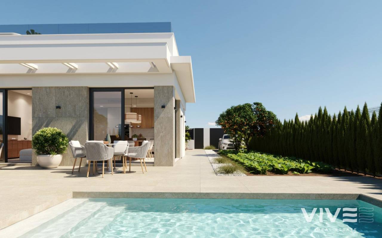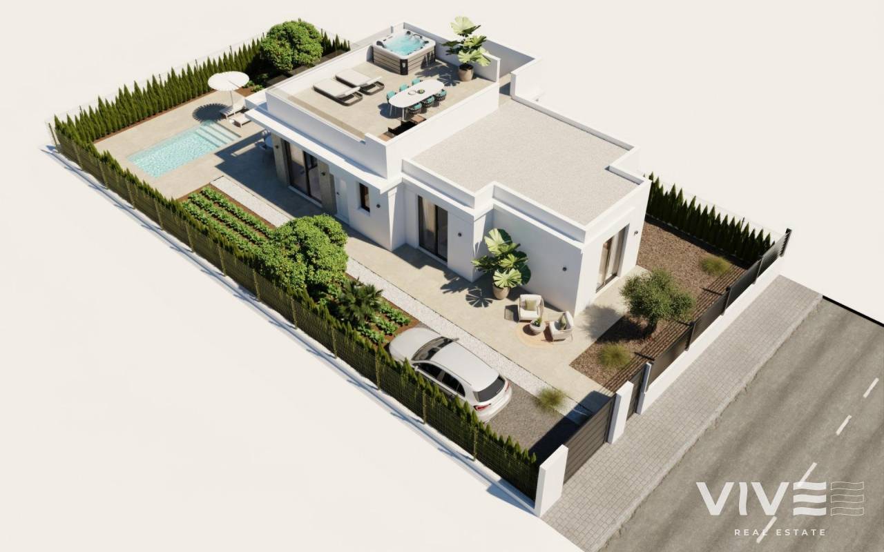 Villas de Obra Nueva en Hacienda del Álamo Golf Resort, Murcia Viviendas Modernas en un Entorno Natural y Exclusivo Descubre estas fantásticas villas de obra nueva en el prestigioso Hacienda del Álamo Golf Resort, una urbanización cerrada en la región de Murcia que combina tranquilidad, seguridad y una completa oferta de servicios. Rodeado de naturaleza y con un clima privilegiado, este complejo es ideal para quienes buscan un estilo de vida relajado sin renunciar al confort. Villas de 2 o 3 Dormitorios en una planta con solarium privado El residencial está compuesto por 17 villas en parcelas a partir de 300 m2. Podrá elegir entre viviendas con 2 o 3 dormitorios y 2 baños completos en una sola planta, además de una zona de terraza con piscina privada de 6x2.4 y un solarium privado en la azotea. Acabados de Alta Calidad y Confort Garantizado Las viviendas están diseñadas con materiales de alta calidad y pensadas para ofrecer eficiencia energética y bienestar: Carpintería exterior con rotura de puente térmico Agua caliente mediante sistema de aerotermia Preinstalación de aire acondicionado por conductos Piscina privada Instalación independiente de agua de riego con depósito acumulador y grupo de presión individual. Puerta de acceso de vehículos motorizada. Persianas motorizadas en dormitorios Puerta de entrada acorazada Un Resort con Servicios Completos y Campo de Golf Hacienda del Álamo es uno de los complejos más completos de la Costa Cálida. Cuenta con: Campo de golf profesional de 18 hoyos Hotel con spa Supermercado Restaurantes y bares Pistas deportivas y zonas verdes Seguridad 24 horas La urbanización recrea el ambiente de un tradicional pueblo mediterráneo, con calles tranquilas y un diseño cuidado. Ubicación Estratégica Cerca de Todo Aeropuerto Internacional de Murcia (Corvera): 20 km Campos de golf adicionales: menos de 10 km Cartagena: 35 km Playas del Mar Menor: 30 km Centro comercial Espacio Mediterráneo: 28 km Puerto de Mazarrón: 40 km Vive con Estilo en la Costa Cálida Estas villas representan una excelente oportunidad para vivir o invertir en una de las zonas con mayor proyección de Murcia. Contáctanos ahora y descubre tu próximo hogar en Hacienda del Álamo Golf Resort.