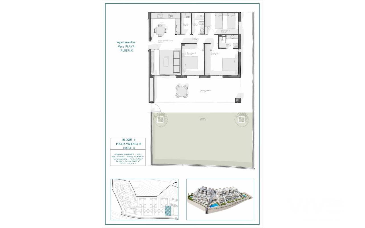 Apartamentos de nueva construcción en Vera Playa, Almería: viviendas modernas cerca del mar Vida contemporánea en Pueblo Salinas, a solo 2 km de la playa Presentamos una impresionante nueva promoción residencial situada en la codiciada zona de Vera Playa, dentro de la exclusiva urbanización Pueblo Salinas. Este moderno complejo ofrece un estilo de vida privilegiado a solo 2 km de las playas de Vera (Almería), con espectaculares vistas al mar y un tranquilo entorno mediterráneo ideal para vivir todo el año o disfrutar de las vacaciones. Viviendas elegantes con comodidad y estilo modernos Esta nueva promoción consta de 60 apartamentos de alta calidad distribuidos en 5 bloques de baja densidad, con solo dos viviendas por planta. Elija entre distribuciones de 2 o 3 dormitorios diseñadas pensando en la funcionalidad, el confort y el estilo. Las opciones incluyen: Plantas bajas con jardines privados Viviendas en plantas intermedias con amplias terrazas Áticos en la última planta con grandes soláriums que incluyen cocina de verano y pérgola con paneles solares. Todas las viviendas cuentan con: Cocinas abiertas totalmente equipadas con frigorífico integrado, lavavajillas, placa de inducción, horno, microondas y campana extractora Espacios diáfanos y luminosos con iluminación LED en toda la vivienda (excepto en los dormitorios) Persianas motorizadas de aluminio en los dormitorios Baños con acabados modernos, incluyendo calefactores para toallas, platos de ducha con mamparas de cristal y muebles empotrados Preinstalación de aire acondicionado por conductos Sistema aerotérmico para una producción eficiente de agua caliente Puerta de entrada de seguridad Excepcionales servicios comunitarios Los residentes disfrutarán de acceso a una amplia gama de servicios diseñados para mejorar el confort y el ocio, entre los que se incluyen: Dos piscinas al aire libre perfectas para los meses de verano Una piscina cubierta climatizada para uso durante todo el año Plaza de aparcamiento privada y trastero incluidos con cada propiedad Preinstalación para la recarga de vehículos eléctricos en las zonas de aparcamiento Ubicación privilegiada con excelentes conexiones Vera Playa es un popular destino costero conocido por sus amplias playas de arena y su estilo de vida relajado. La ubicación de la urbanización ofrece fácil acceso a los servicios y atracciones esenciales: Playa: 2 km Desert Springs Golf Resort: 8 km Centro de Vera: 5 km Puerto deportivo y restaurantes de Garrucha: 6 km Parque Comercial Mojácar: 10 km Aeropuerto de Almería: 85 km (1 hora en coche) Haga de Vera Playa su nuevo hogar Tanto si busca una residencia permanente, un refugio para las vacaciones o una inversión inteligente, estos apartamentos de nueva construcción ofrecen un valor inigualable en una de las zonas más deseadas de la Costa de Almería. Póngase en contacto con nosotros hoy mismo para obtener más información y programar su visita.