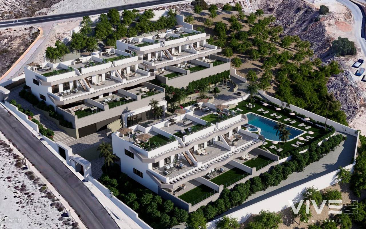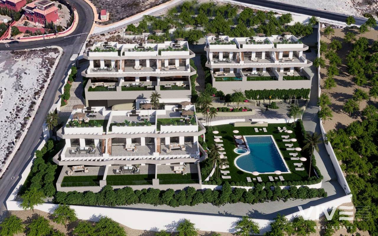 COMPLEJO RESIDENCIAL DE OBRA NUEVA EN FINESTRAT Complejo residencial único y exclusivo de obra nueva y alto standing en Balcón de Finestrat. Este complejo de modernos bungalows de 2 y 3 dormitorios, todos con 2 baños, cocina americana con el salón y comedor. Bungalows en planta alta con solarium privado y bungalows en planta baja con jardín privado y posibilidad de piscina privada con coste adicional. Las viviendas tienen mucha luz natural e isla de diseño en la cocina. Ascensor en todas las viviendas. Construcción sostenible con certificado energético A. Cada vivienda dispone de parking privado. Gimnasio cubierto. Zona biosaludable para practicar deporte. Piscina comunitaria. Pack de iluminación LED interior y exterior. Materiales y marcas de alta calidad. Las viviendas tienen acceso a una gran piscina y disfrutan de una de las mejores ubicaciones de la Costa Blanca. Es una gran oportunidad y privilegio poder vivir con este entorno de golf y playa, cerca de todas las comodidades de todos los servicios considerado uno de los mejores lugares para invertir. Finestrat situado en la comarca de la Marina Baixa de la Costa Blanca. Benidorm está a sólo cinco minutos en coche de las propiedades y ofrece todos los servicios que pueda necesitar, incluyendo tiendas, bares, restaurantes, supermercados, bancos, farmacias y varias escuelas privadas internacionales. Cerca de las playas de Levante, Poniente y Cala de Finestrat, con más de 6km de longitud que se encuentran entre las mejores de Europa galardonadas por la Unión Europea con Banderas Azules. Todos los servicios de ocio como los parques temáticos de Aqua Natura, Terra Mítica, Terra Natura, Aqualandia y Mundomar, los campos de Golf Sierra Cortina y Villaitana, senderismo y escalada en el Puig Campana un marco natural incomparable o disfrutar de los deportes náuticos. Distancia al mar 4 km, al aeropuerto 26 km y al golf 1km. Complejo situado a 40 minutos del aeropuerto de Alicante.