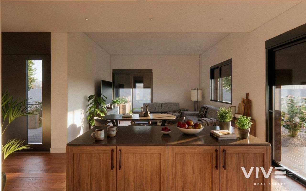 Villa de nueva construcción con piscina privada en Vistabella, Jacarilla Exclusiva villa de nueva construcción en un entorno natural y de golf Esta villa de nueva construcción, bajo régimen de autopromoción, se encuentra en la tranquila zona de Vistabella, dentro del municipio de Jacarilla. Situada en un entorno natural entre el campo de golf de Vistabella y el embalse de La Pedrera, esta propiedad ofrece privacidad, vistas abiertas y un relajado estilo de vida mediterráneo. La zona es ideal para quienes buscan tranquilidad sin alejarse de la costa, los campos de golf y los servicios cotidianos. Vistabella es una conocida zona residencial muy popular entre los compradores internacionales gracias a su campo de golf, sus restaurantes locales y su proximidad a Orihuela Costa y Torrevieja. Jacarilla conserva su encanto tradicional español y ofrece tiendas locales, servicios y un ambiente acogedor durante todo el año. Moderna distribución en una sola planta con amplias zonas exteriores La villa se distribuye en una sola planta y ha sido diseñada para combinar comodidad, funcionalidad y luz natural. Ofrece 3 dormitorios y 2 baños, incluido un dormitorio principal con baño en suite. La sala de estar y el comedor de planta abierta conectan a la perfección con la moderna cocina, creando un espacio luminoso y acogedor. Una terraza cubierta de 22 m² proporciona acceso directo al jardín privado, donde una piscina privada y zonas ajardinadas invitan a disfrutar del estilo de vida al aire libre. La generosa parcela de 750 m² también incluye una plaza de aparcamiento para dos vehículos. Solárium privado con vistas abiertas Uno de los aspectos más destacados de esta villa es el impresionante solárium privado de 120 m², al que se accede a través de una escalera exterior. Desde aquí se puede disfrutar de vistas panorámicas abiertas del campo circundante, perfectas para tomar el sol, entretenerse o relajarse durante todo el año. Especificaciones de calidad y características de eficiencia energética La villa está construida con materiales de calidad y especificaciones modernas para garantizar el confort y la eficiencia. Entre sus características se incluyen una puerta de entrada de seguridad reforzada, un sistema aerotérmico para el agua caliente sanitaria, persianas eléctricas en el salón y los dormitorios, y preinstalación de aire acondicionado por conductos. Estos elementos proporcionan una base ideal para una vivienda cómoda y energéticamente eficiente. Excelente ubicación cerca del golf, la naturaleza y la costa Vistabella Golf se encuentra a unos 2 km, mientras que el embalse de La Pedrera está a solo 1,5 km de la propiedad, ideal para los amantes de la naturaleza y las actividades al aire libre. Las playas de Orihuela Costa están a unos 15 km. El aeropuerto internacional de Alicante está a unos 55 km, lo que ofrece fáciles conexiones con los principales destinos europeos. En un radio de 10 a 15 km se pueden encontrar varios campos de golf y zonas comerciales adicionales. Una oportunidad única en la Costa Blanca Esta villa de nueva construcción en Vistabella es perfecta como residencia permanente, casa de vacaciones o oportunidad de inversión en una ubicación muy solicitada. Póngase en contacto con nosotros hoy mismo para recibir más información y asegurarse su nueva vivienda en el corazón de la Costa Blanca.