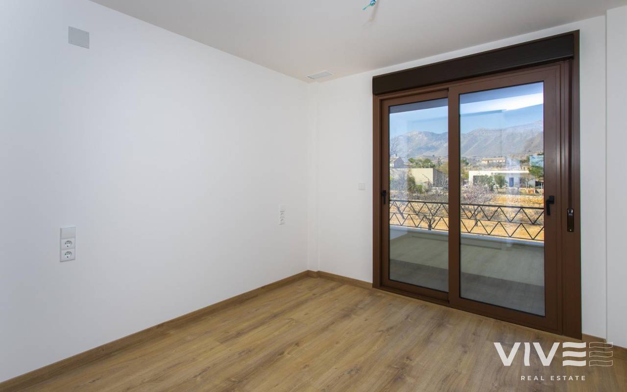 BUNGALOWS DE OBRA NUEVA EN HONDON DE LAS NIEVES 4 bungalows de obra nueva situados en Hondón de las Nieves (Alicante) Todos los bungalows disponen de 3 dormitorios con armarios empotrados, 2 baños, amplio salón comedor, cocina amueblada y terraza. Las viviendas están disponibles en planta baja con terraza/jardín delantero y trasero y en planta alta con terraza y solarium privado. Las viviendas de la primera planta disponen de placas fotovoltaicas en el tejado para ahorro energético. Las cocinas están totalmente amuebladas y acabadas con encimeras de granito o aglomerado sintético (silestone o simular). Los baños están acabados con sanitarios de alta calidad y grifería con cisterna empotrada. Estas viviendas cuentan con preinstalación de aire acondicionado por conductos con bomba de calor, ventilación forzada con recuperador de calor, sistema de aerotermia para agua caliente sanitaria, los más modernos aislamientos térmicos y acústicos, carpintería exterior de aluminio con rotura de puente térmico y persianas. Hondón de las Nieves es un municipio de la Comunidad Valenciana, España. Está situado al suroeste de la provincia de Alicante, en la comarca del Vinalopó Medio. Las playas y el aeropuerto de Alicante están muy cerca, a sólo 30 minutos en coche.