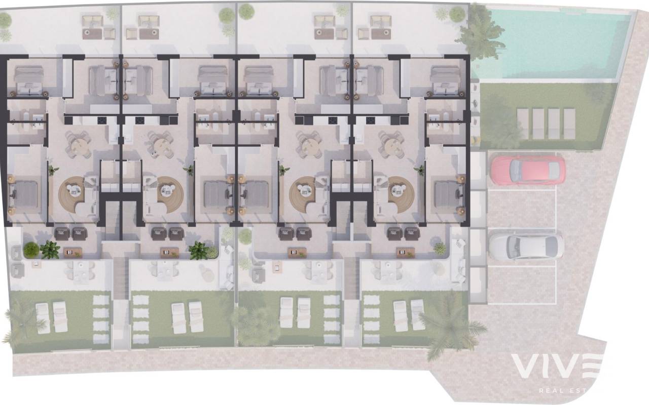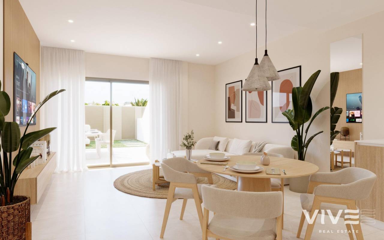 Bungalows de obra nueva en San Pedro del Pinatar - Vida moderna junto al mar Exclusivo Complejo Residencial con Modernos Bungalows Descubra este nuevo complejo residencial de 8 modernos bungalows en San Pedro del Pinatar, una de las localidades más deseadas de la Costa Cálida. Estas viviendas contemporáneas ofrecen 3 dormitorios, 2 baños, una cocina americana con una amplia zona de estar, armarios empotrados y una terraza privada. Puede elegir entre: Bungalows en planta baja con jardín privado y aparcamiento en parcela. Bungalows en planta alta con solarium privado, perfectos para disfrutar del clima mediterráneo. Características de alta calidad en cada vivienda Cada bungalow incluye acabados de primera calidad y modernas características para el máximo confort: Unidad de aire acondicionado incluida. Sistema aerotérmico para la producción de agua caliente de bajo consumo. Cocina totalmente equipada con electrodomésticos BOSCH. Baños totalmente equipados con muebles, espejos, mamparas de ducha y suelo radiante eléctrico. Persianas eléctricas en todas las ventanas. Iluminación LED en todo el interior y exterior de la vivienda. Características adicionales para los bungalows de la planta superior: Pérgola de aluminio para sombra y estilo. Cocina de verano exterior, perfecta para el entretenimiento. Plaza de aparcamiento privada y trastero para bicicletas. Servicios comunitarios Los residentes de este exclusivo complejo disfrutarán de: Una zona comunitaria bellamente ajardinada. Una piscina comunitaria para relajarse y refrescarse. Ubicación privilegiada en San Pedro del Pinatar San Pedro del Pinatar es una ciudad costera privilegiada, situada entre el Mar Menor y el Mar Mediterráneo. Es conocida por sus playas, baños naturales de barro y excelentes instalaciones náuticas, incluyendo puertos deportivos y clubes náuticos. La zona es un paraíso para los amantes de los deportes náuticos y ofrece un relajado estilo de vida mediterráneo con todos los servicios esenciales cerca. San Pedro del Pinatar cuenta con una comunidad establecida durante todo el año, con acceso a instalaciones deportivas, una piscina cubierta y una vibrante escena social, gracias al suave clima invernal de la región. La famosa zona de Lo Pagán ha crecido significativamente, ofreciendo una amplia gama de servicios, tiendas, restaurantes y opciones de entretenimiento. Distancias a los principales puntos de interés Centro Comercial Dos Mares - 5 minutos. Playas del Mar Menor - 10 minutos. Aeropuerto Murcia-Corvera - 30 minutos. Aeropuerto de Alicante - 1 hora. Invierta en Calidad y Estilo de Vida Estos modernos bungalows ofrecen una oportunidad excepcional de poseer una vivienda en una de las zonas más codiciadas de la Costa Cálida. Ya sea como retiro vacacional, inversión o residencia permanente, esta es su oportunidad de abrazar el estilo de vida mediterráneo. Póngase en contacto con nosotros hoy mismo para concertar una visita y asegurarse la casa de sus sueños en San Pedro del Pinatar.