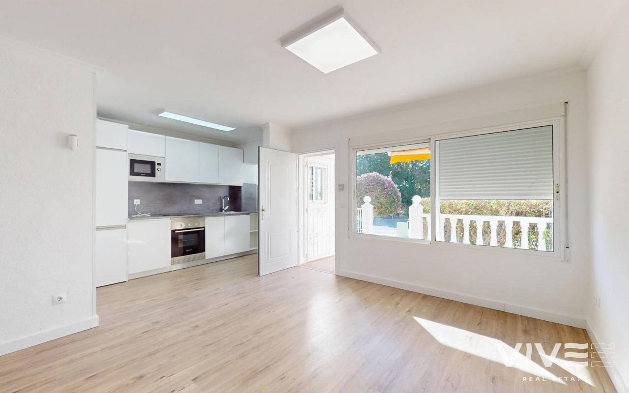 Bungalow en Villamartin, con 85 m² construidos, 2 dormitorios, 1 baños, reformado, 1 terraza(s), 25 m² de terraza, cocina equipadaBungalow reformado en Villamartín listo para entrar a vivir Te presentamos esta magnífica vivienda con reforma integral recién terminada, donde cada detalle ha sido cuidado para ofrecer confort, estilo y funcionalidad.El interior destaca por su suelo laminado imitación madera, que aporta calidez a toda la casa, y un salón-comedor amplio y muy luminoso, perfecto para disfrutar en familia o con amigos.Dispone de 2 dormitorios con armarios empotrados, ideales para optimizar el espacio, y un baño moderno con ducha y mampara de diseño actual. La cocina es completamente nueva y está equipada, incluyendo lavadora y lavavajillas, lista para el día a día. Además, cuenta con un práctico armario trastero exterior. Exteriores para disfrutar todo el añoLa vivienda ofrece un acogedor porche con toldo y una gran terraza trasera, perfecta para relajarse o aprovechar el buen clima. Todo ello dentro de una urbanización con jardines comunitarios cuidados durante todo el año. Ubicación inmejorable todo a pie de casa A solo 2 minutos del C.C. La Rioja (restaurantes, banco, peluquerías, etc.) A 5 minutos del supermercado Dialprix Campos de golf muy cercanos A 6 minutos en coche de Zenia Boulevard y de las playas de La Zenia Gastos muy ajustadosIBI 200€/añoComunidad 180€/trimestre Una vivienda muy luminosa, ubicada en una comunidad tranquila, ideal tanto como residencia habitual como para disfrutar de vacaciones.