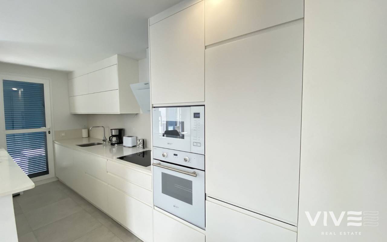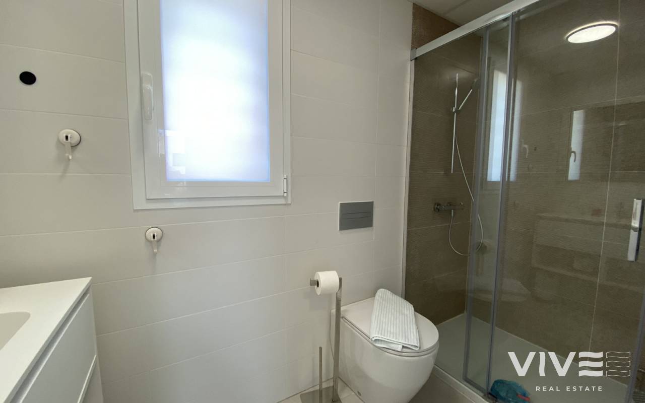 Mieszkanie zlokalizowane na pierwszym piętrze nie pozostawi Cię obojętnym, przestronne, nowoczesne i bardzo jasne, będziesz cieszyć się słońcem przez cały dzień, całkowicie na zewnątrz. Sklada się z  dużego salonu z bezpośrednim dostępem na taras, kuchni, dużej sypialni głównej z łazienką, dwuosobową sypialnią z wbudowaną szafą oraz w pełni wyposażoną łazienką.